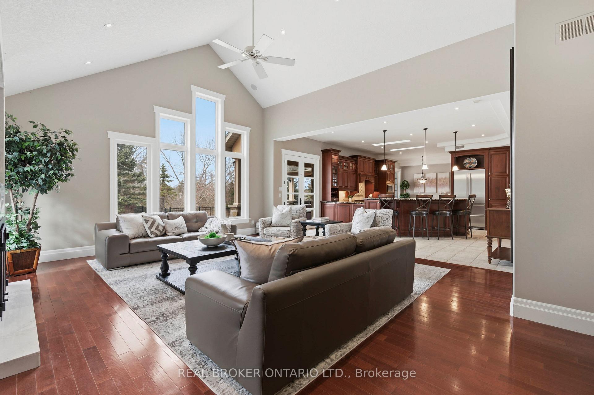 Set within the gated community of Irish Creek Estates on Puslinch Lake, this is one of just 20 custom-built residences, in a setting where homes are rarely offered and standards are already established.Just under 7,000 square feet of finished living space, wrapped in a full stone exterior that gives the home a presence the moment you arrive. Vaulted ceilings and natural light carry throughout.The kitchen is exactly what you expect at this level. A Wolf 6-burner range, Liebherr refrigeration, and granite surfaces that are meant to be used, not admired. It connects naturally to the main living spaces, where three fireplaces anchor the home.A main floor primary suite offers a layout that simply works, with direct access outside and an ensuite that feels complete. Upstairs, three bedrooms are set apart for family or guests, while the walk-out lower level opens up entirely with 9-foot ceilings, a bar, home theatre, games room, workout space, and room to gather.Outdoors, the property is finished with intention. A multi-level deck, stone patio, inground pool, and hot tub, set within a private, landscaped setting. Across the street, a private tennis and pickleball court, along with shared lake access to Puslinch Lake, extends the lifestyle beyond the property itself.Just minutes from Guelph, Cambridge, and the 401, with a level of privacy and setting that speaks for itself.
