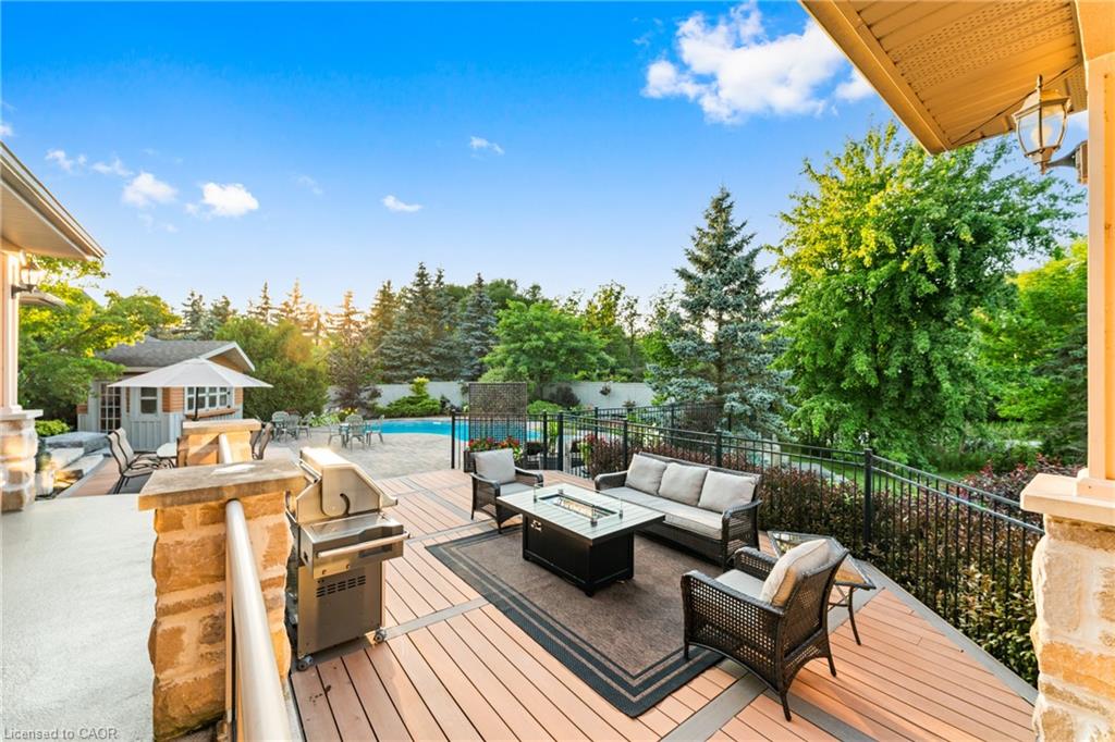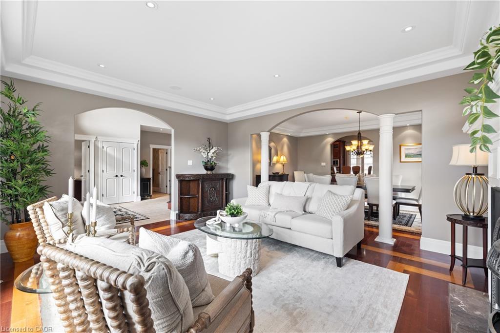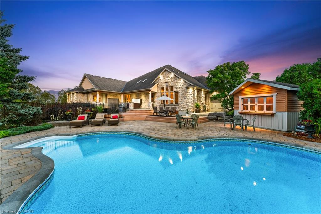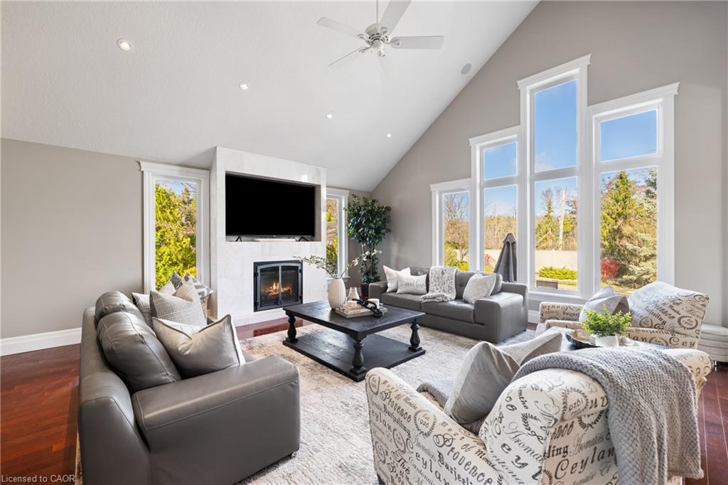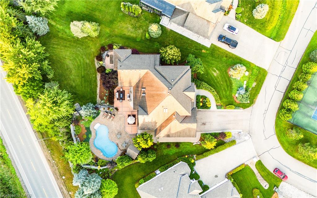 Nestled in an exclusive gated enclave of only twenty homes on the serene shores of Puslinch Lake, this luxurious executive estate offers an unmatched blend of elegance and lifestyle amenities. Designed for both relaxation and entertaining, the property features spacious, high-end interiors, along with access to a community tennis/pickleball court, and boat ramp. The over 6100 square foot home features spacious and natural light filled principal rooms, including a Chef’s kitchen, family room with fire place and vaulted ceiling, home office and main floor principal suite with walk-out to a patio with hot tub. Three additional spacious bedrooms and a full bath can be found on the upper level. The fully finished basement, with 9-foot ceilings and walk-out to the poolside patio, boasts a games room with full bar, a custom home theatre, and exercise room. The private backyard offers a multi-level deck and patio, with hot tub and in-ground pool. Located within minutes to HW401 access facilitates the commute in and out of the region and offers quick access to local airports. Enjoy the tranquility of this secluded retreat while being only minutes from city conveniences, making it a perfect haven for those seeking both prestige and privacy.
