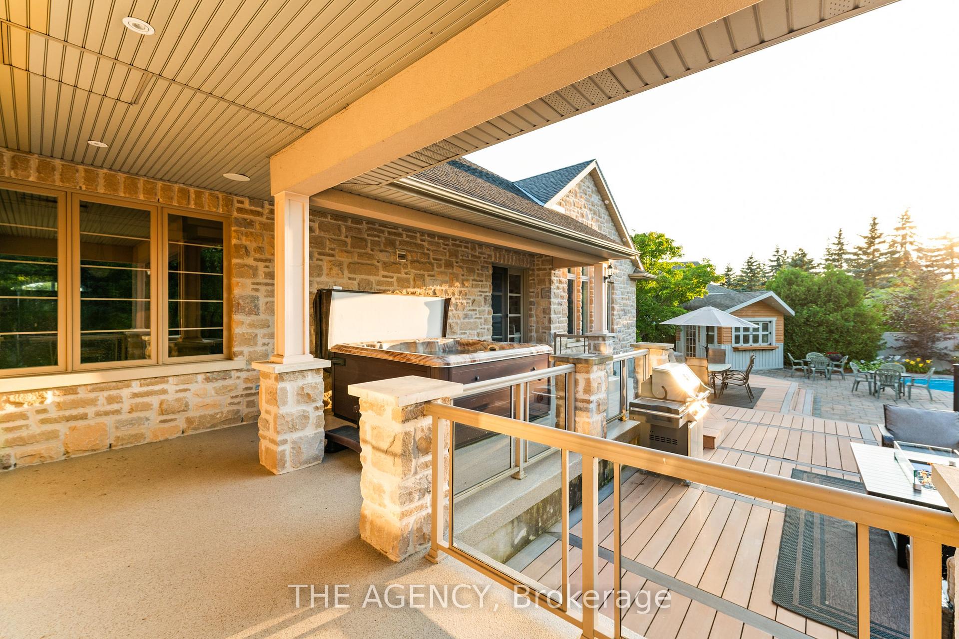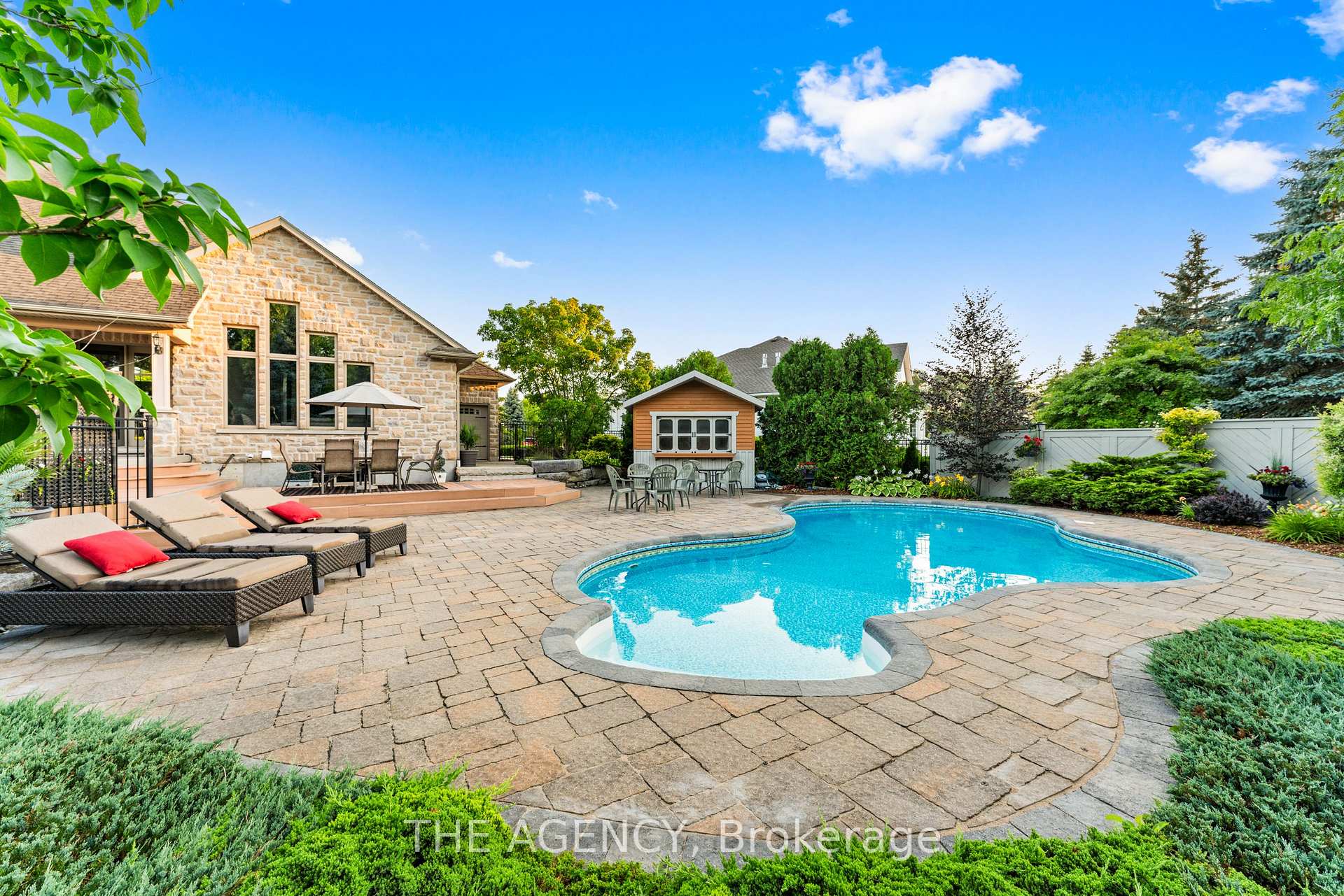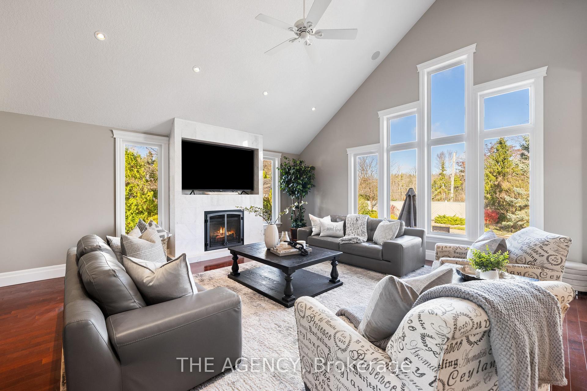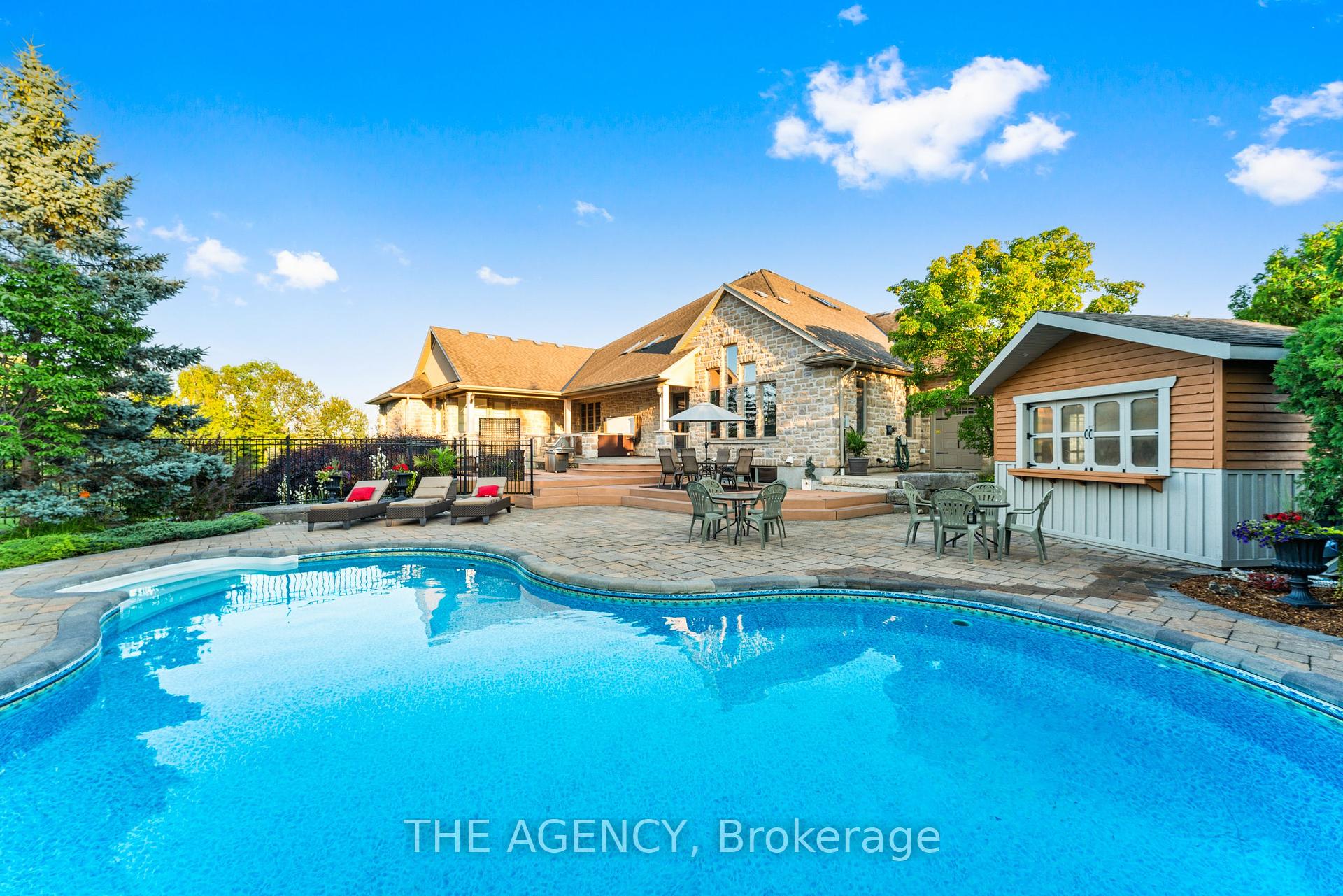 Nestled in an exclusive gated enclave of only twenty homes on the serene shores of Puslinch Lake, this luxurious executive estate offers an unmatched blend of elegance and lifestyle amenities. Designed for both relaxation and entertaining, the property features spacious, high-end interiors, along with access to a community tennis/pickleball court, and boat ramp. The over 6100 square foot home features spacious and natural light filled principal rooms, including a Chef’s kitchen, family room with fire place and vaulted ceiling, home office and main floor principal suite with walk-out to a patio with hot tub. Three additional spacious bedrooms and a full bath can be found on the upper level. The fully finished basement, with 9-foot ceilings and walk-out to the poolside patio, boasts a games room with full bar, a custom home theatre, and exercise room. The private backyard offers a multi-level deck and patio, with hot tub and in-ground pool. Located within minutes to HW401 access facilitates the commute in and out of the region and offers quick access to local airports. Enjoy the tranquility of this secluded retreat while being only minutes from city conveniences, making it a perfect haven for those seeking both prestige and privacy.
