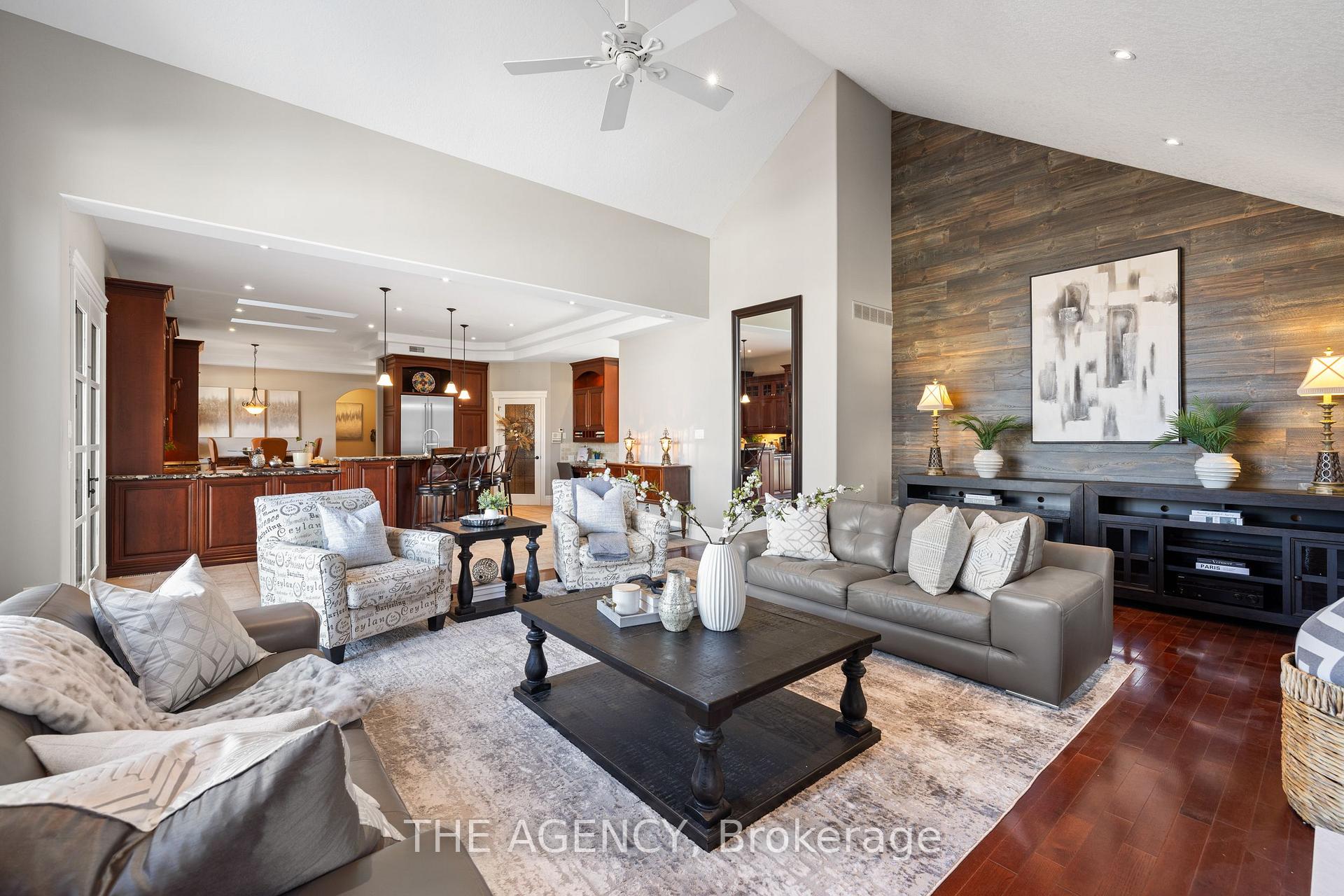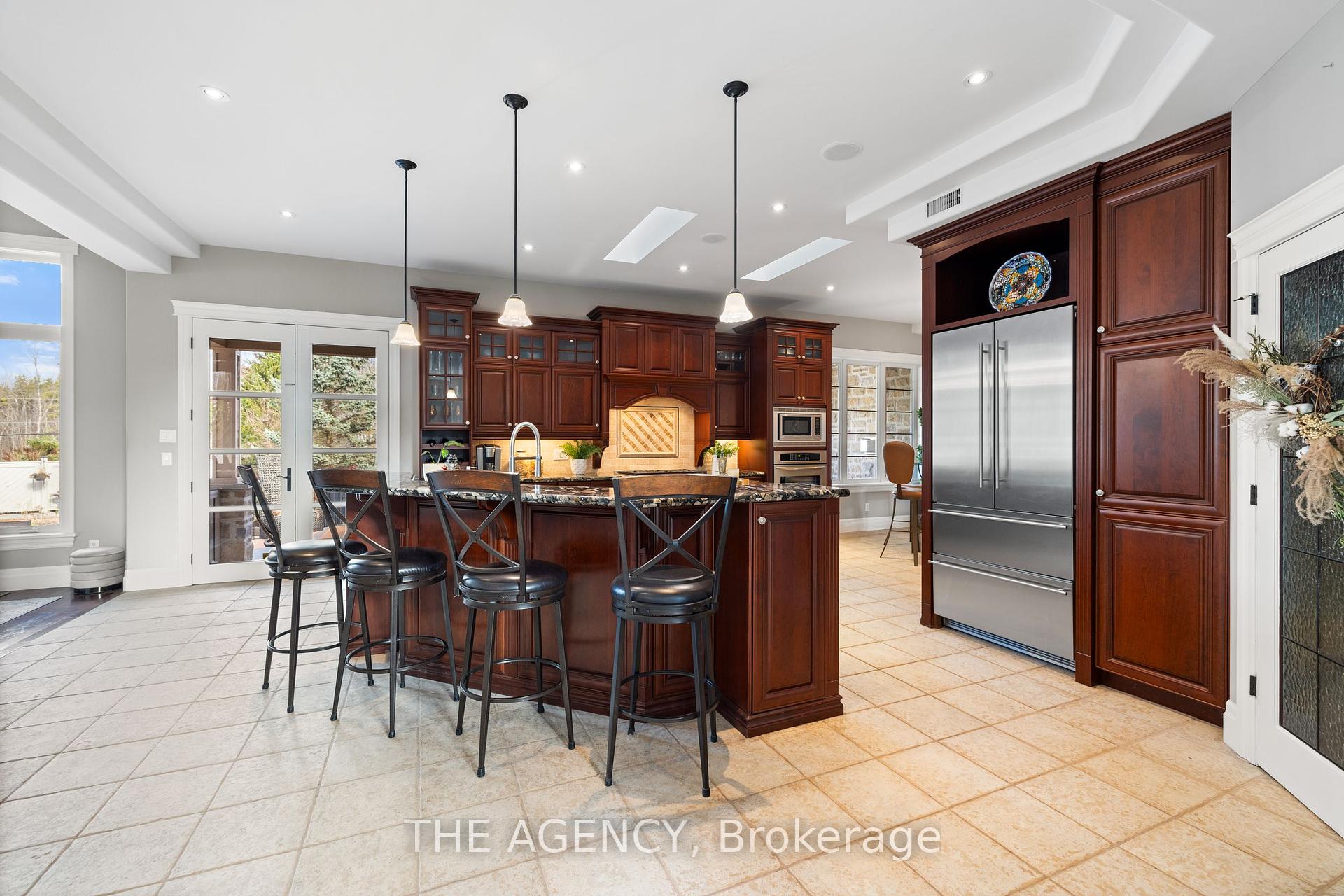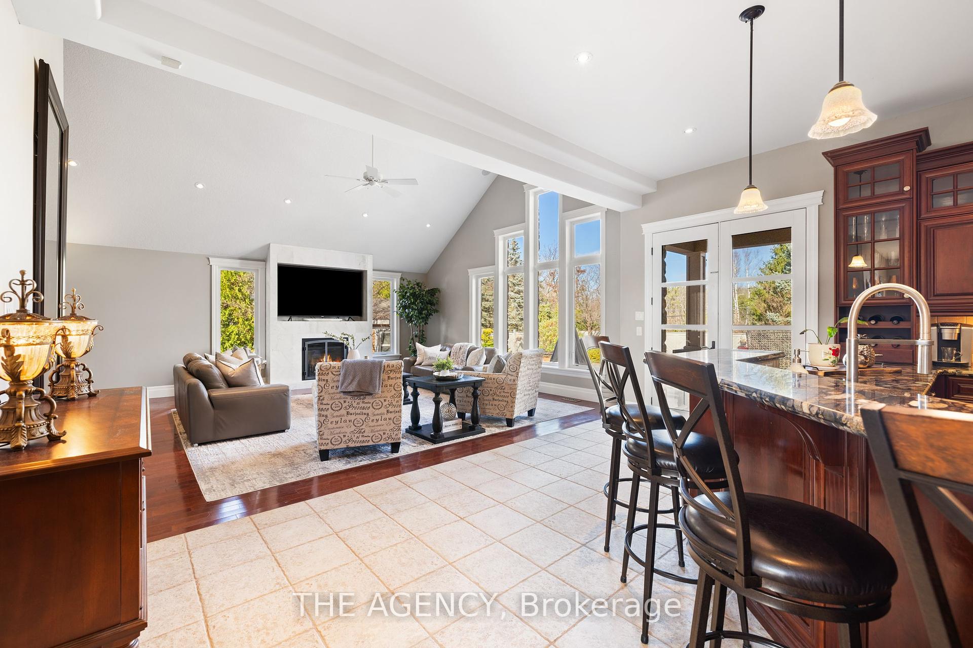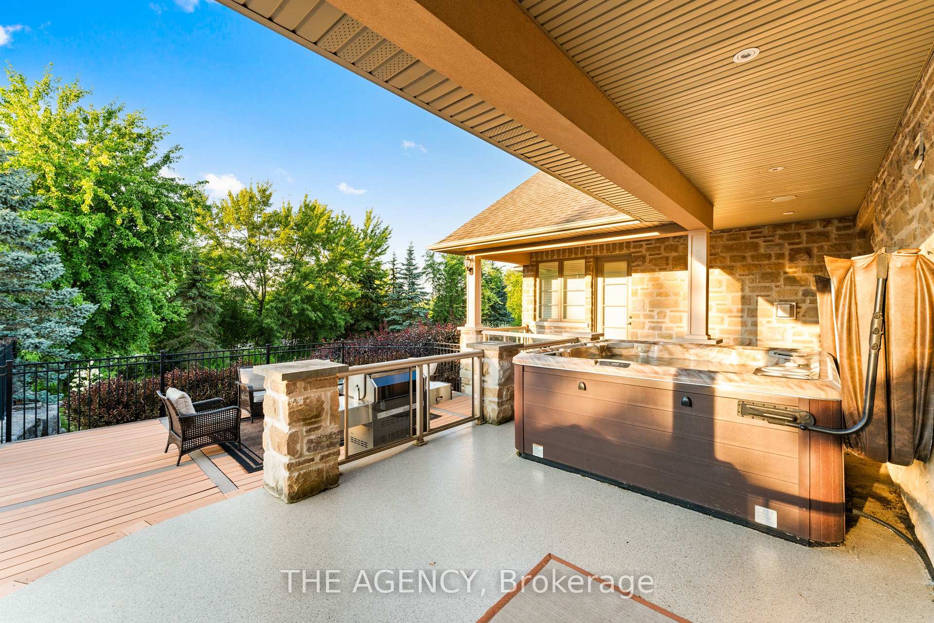 Nestled in an exclusive gated enclave of only twenty homes on the serene shores of Puslinch Lake, this luxurious executive estate offers an unmatched blend of elegance and lifestyle amenities. Designed for both relaxation and entertaining, the property features spacious, high-end interiors, along with access to a community tennis/pickleball court, and boat ramp. The over 6100 square foot home features spacious and natural light filled principal rooms, including a Chef’s kitchen, family room with fire place and vaulted ceiling, home office and main floor principal suite with walk-out to a patio with hot tub. Three additional spacious bedrooms and a full bath can be found on the upper level. The fully finished basement, with 9-foot ceilings and walk-out to the poolside patio, boasts a games room with full bar, a custom home theatre, and exercise room. The private backyard offers a multi-level deck and patio, with hot tub and in-ground pool. Located within minutes to HW401 access facilitates the commute in and out of the region and offers quick access to local airports. Enjoy the tranquility of this secluded retreat while being only minutes from city conveniences, making it a perfect haven for those seeking both prestige and privacy.