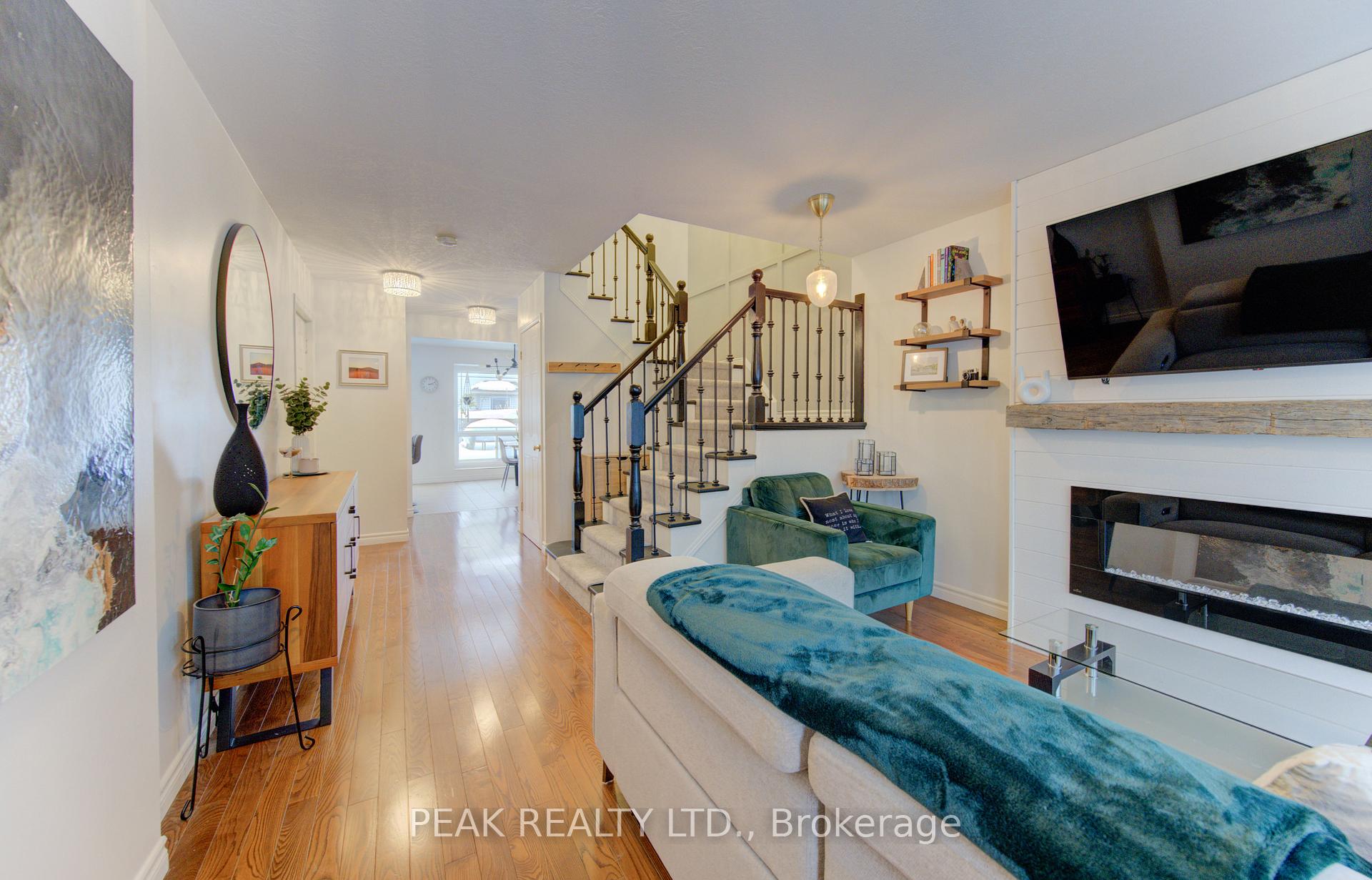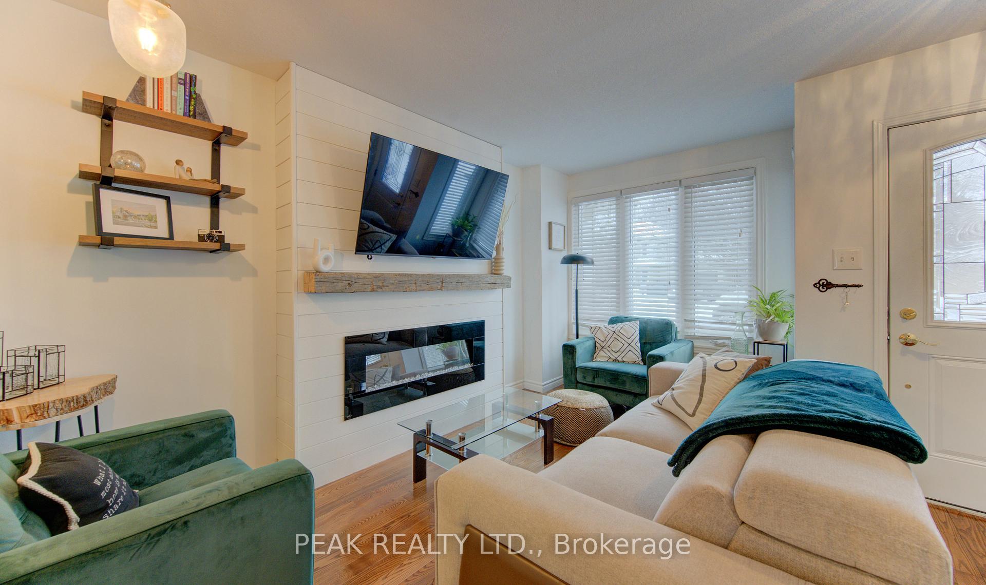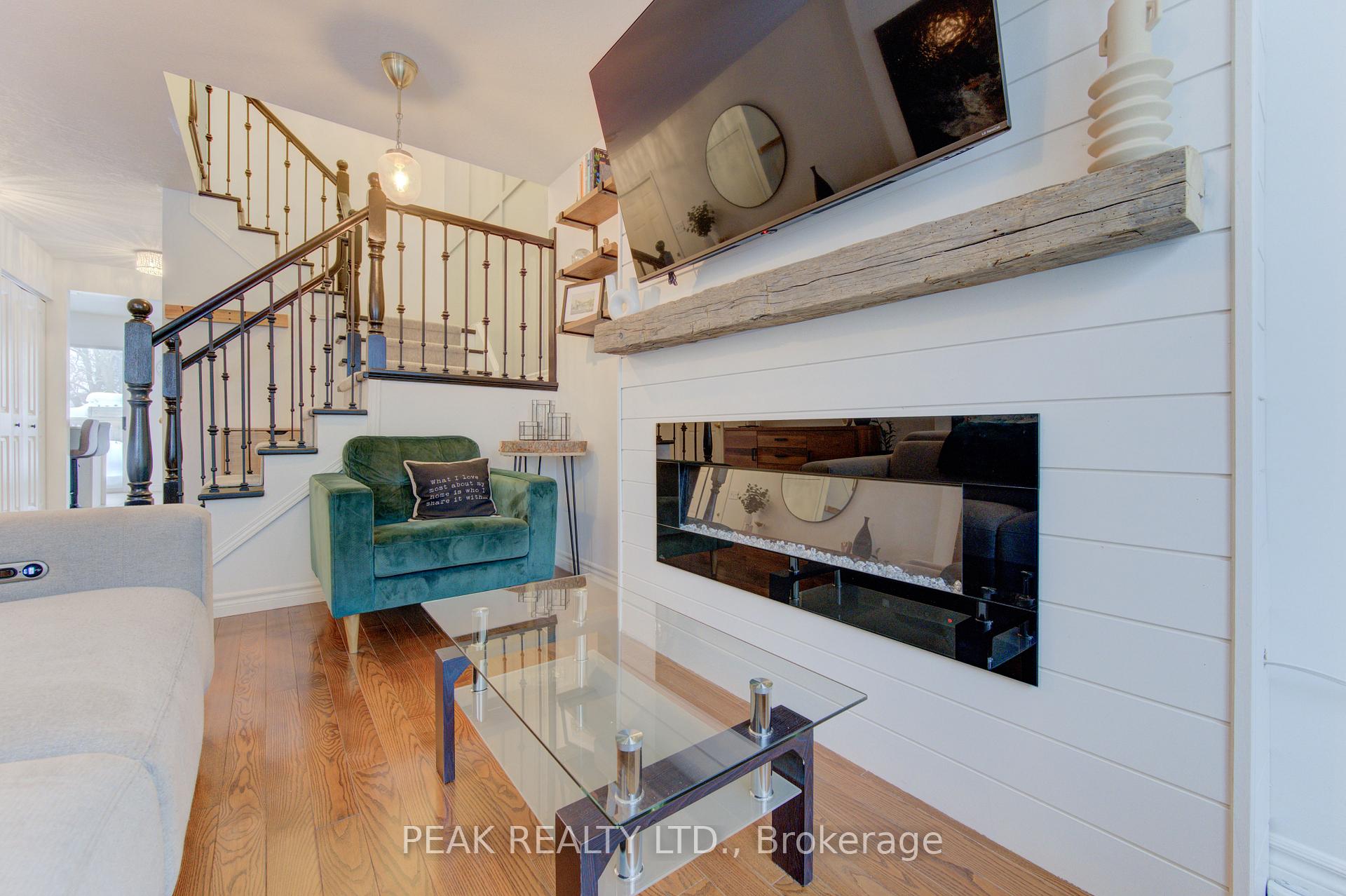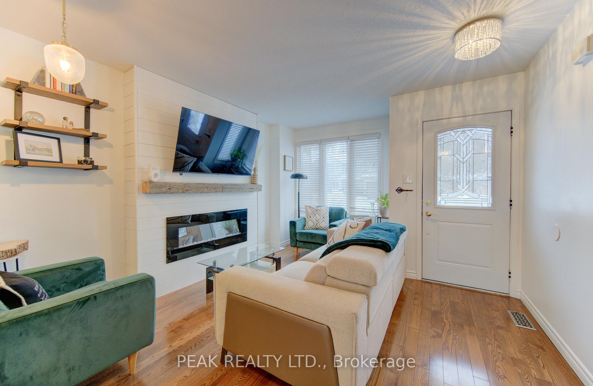 Freehold townhome (no condo fees!!) beautifully finished from top to bottom. Upon entering you will be greeted by a carpet free main floor (hardwood and ceramic). The fireplace in the living room adds to the elegance of the home. The kitchen has been tastefully updated and features a quartz counter top that waterfalls at the end of the island. The marble backsplash compliments the aesthetic. Here you will have stainless steel appliances (fridge, stove, over the range microwave and dishwasher). The sliding door leads to a spacious deck and fenced rear yard. The dining area with window box allows for natural light. The hardwood finished stairs with ornate pickets lead to the second floor. The feature wall from main to second floor is a nice touch. The second floor is free of carpet with luxury vinyl plank flooring. The primary bedroom is spacious and provides ensuite privileges. The remaining two bedrooms allow for room to grow. In the lower level you have a finished rec-room with luxury vinyl flooring , and a stylish 3 piece washroom (’25). The man door from the garage to the rear yard is a sought after feature. The front windows of the home were updated in ’21. The home is conveniently located close to all amenities and provides for quick access to the expressway.