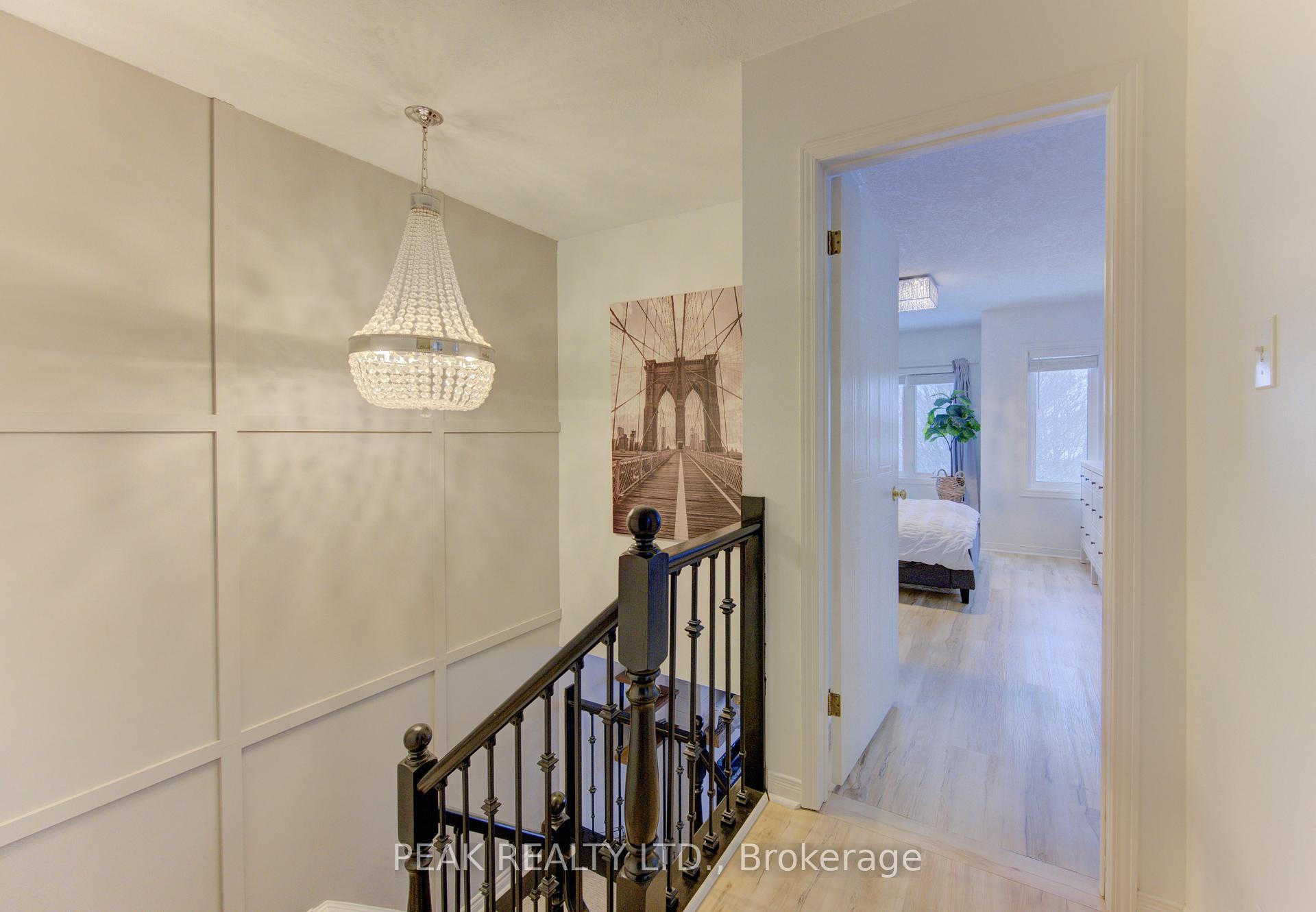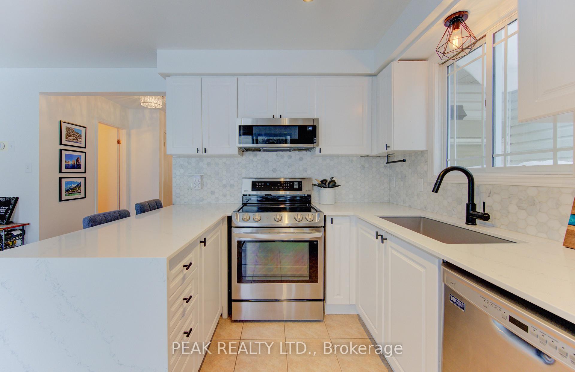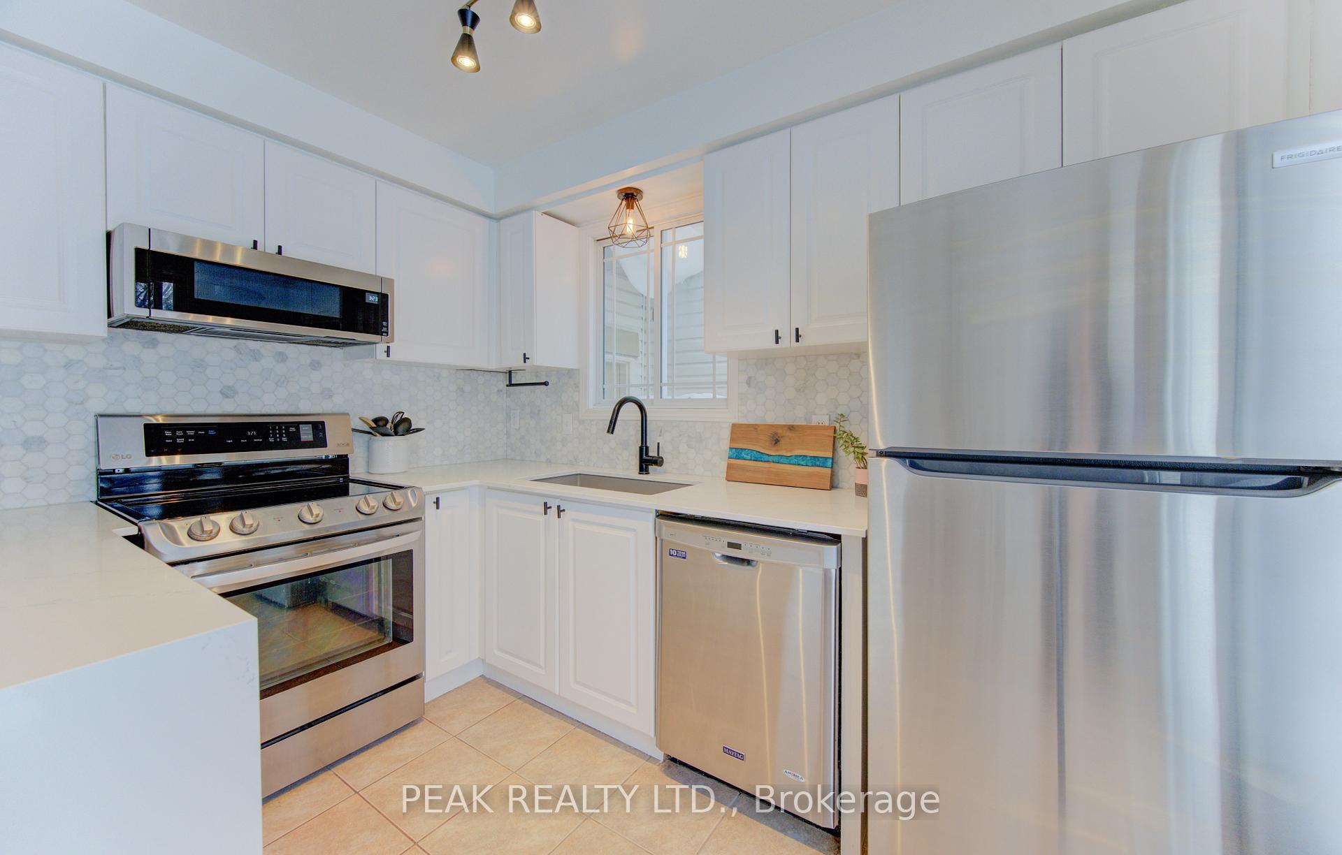 Freehold townhome (no condo fees!!) beautifully finished from top to bottom. Upon entering you will be greeted by a carpet free main floor (hardwood and ceramic). The fireplace in the living room adds to the elegance of the home. The kitchen has been tastefully updated and features a quartz counter top that waterfalls at the end of the island. The marble backsplash compliments the aesthetic. Here you will have stainless steel appliances (fridge, stove, over the range microwave and dishwasher). The sliding door leads to a spacious deck and fenced rear yard. The dining area with window box allows for natural light. The hardwood finished stairs with ornate pickets lead to the second floor. The feature wall from main to second floor is a nice touch. The second floor is free of carpet with luxury vinyl plank flooring. The primary bedroom is spacious and provides ensuite privileges. The remaining two bedrooms allow for room to grow. In the lower level you have a finished rec-room with luxury vinyl flooring , and a stylish 3 piece washroom (’25). The man door from the garage to the rear yard is a sought after feature. The front windows of the home were updated in ’21. The home is conveniently located close to all amenities and provides for quick access to the expressway.