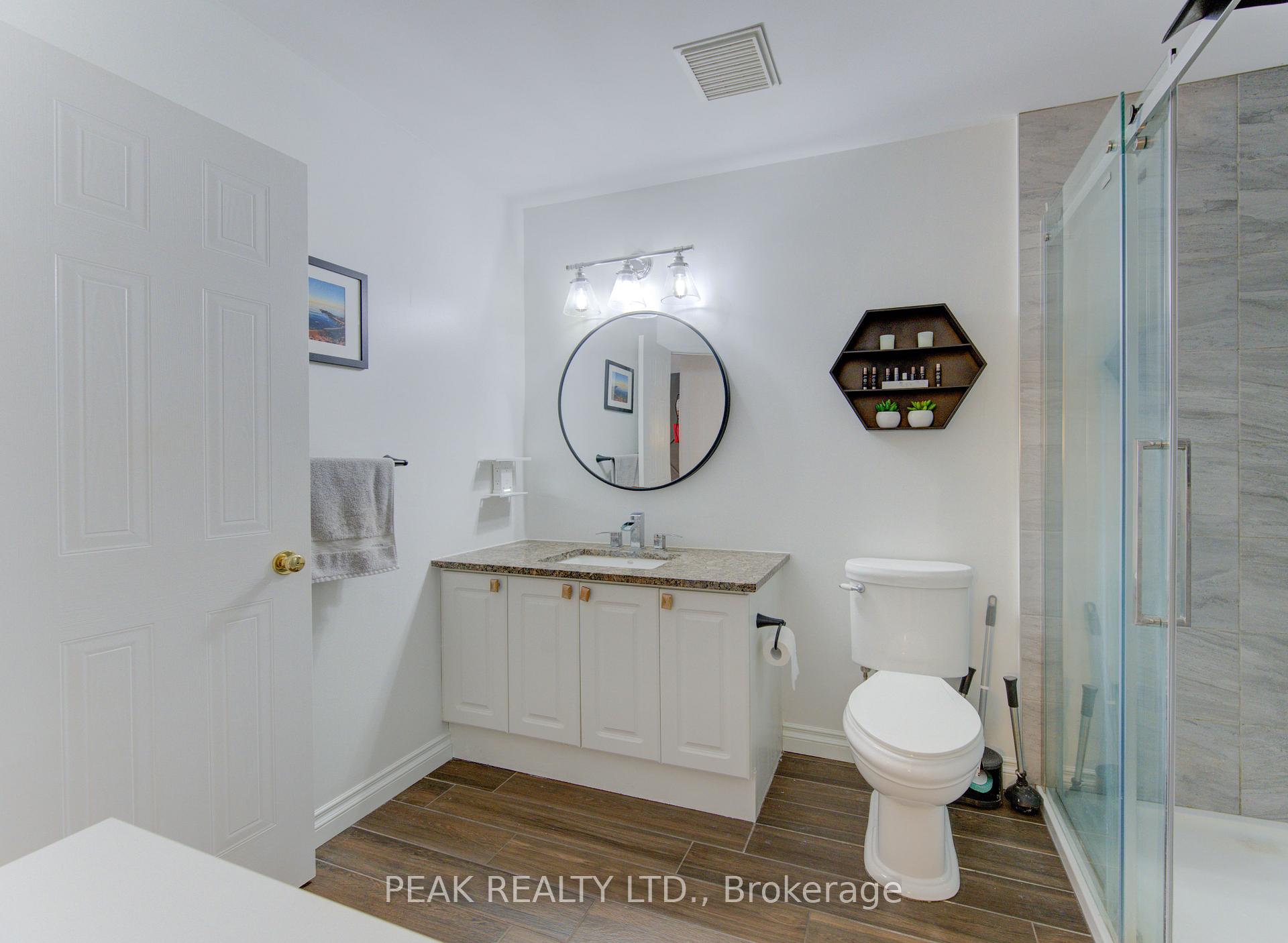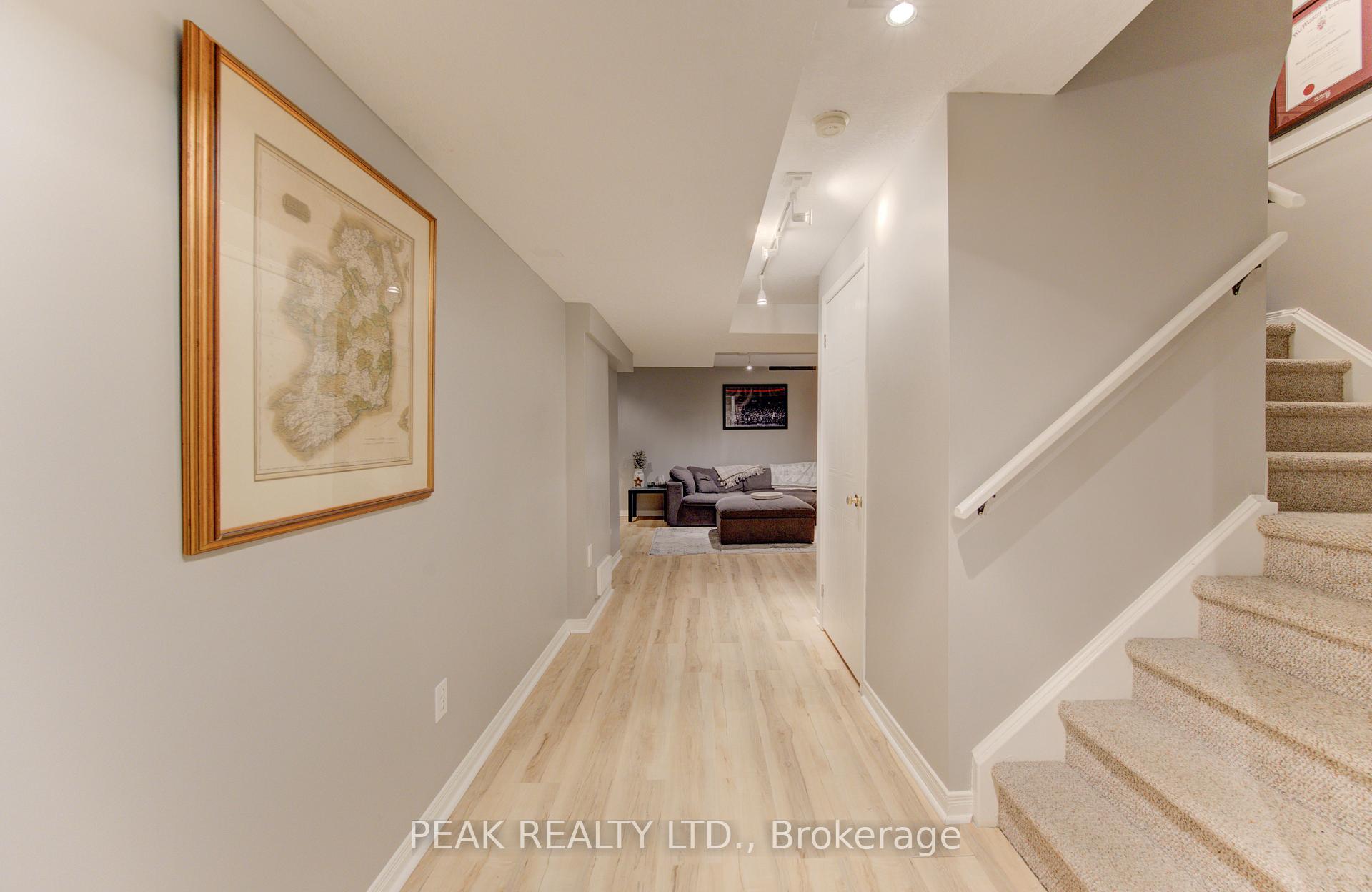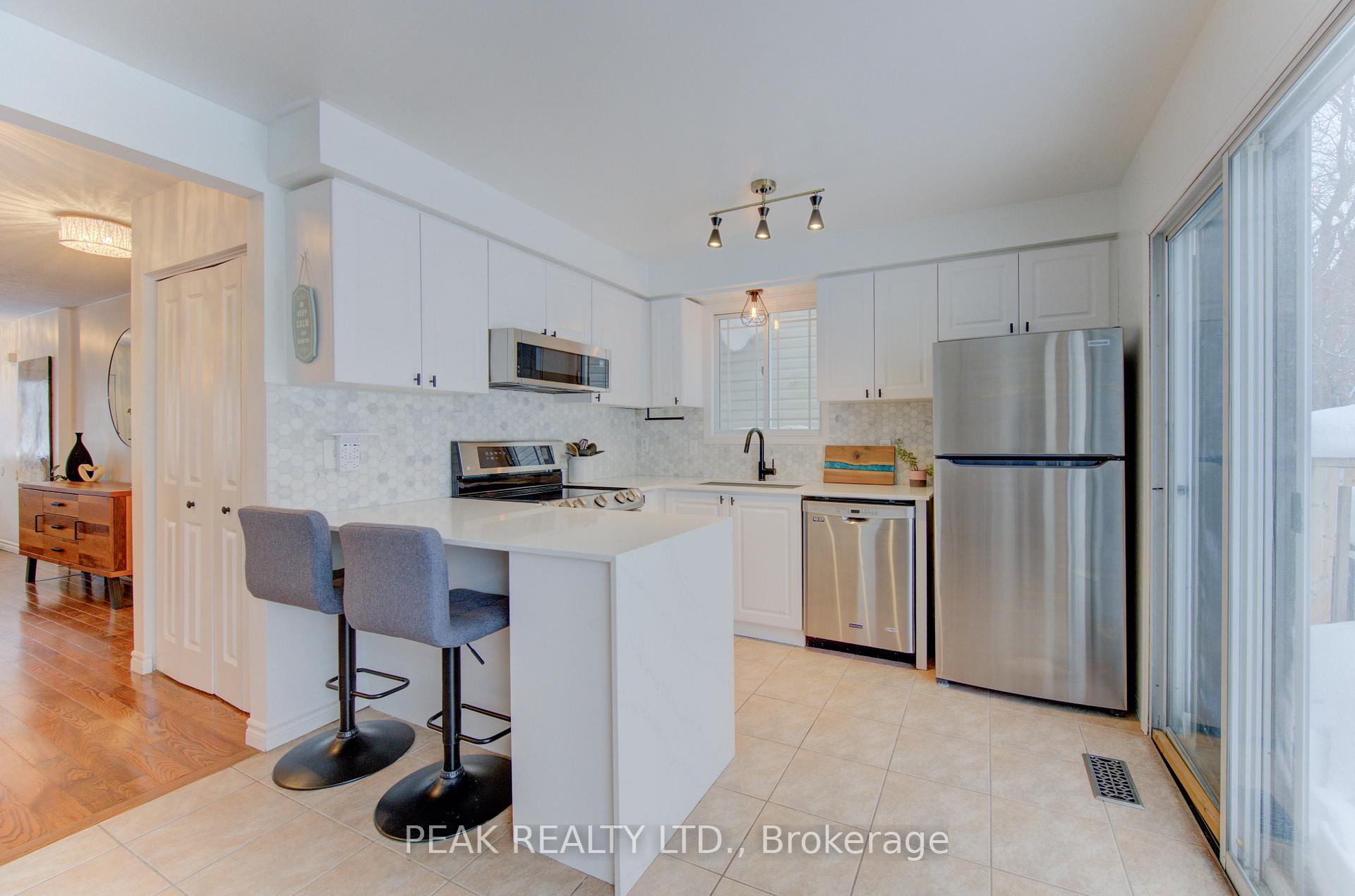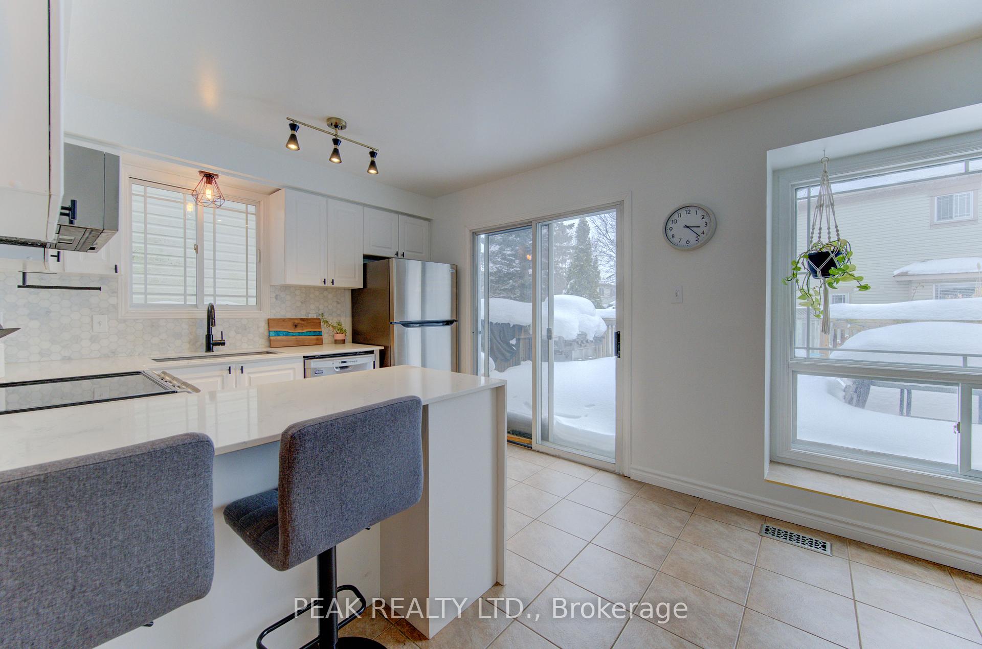 Freehold townhome (no condo fees!!) beautifully finished from top to bottom. Upon entering you will be greeted by a carpet free main floor (hardwood and ceramic). The fireplace in the living room adds to the elegance of the home. The kitchen has been tastefully updated and features a quartz counter top that waterfalls at the end of the island. The marble backsplash compliments the aesthetic. Here you will have stainless steel appliances (fridge, stove, over the range microwave and dishwasher). The sliding door leads to a spacious deck and fenced rear yard. The dining area with window box allows for natural light. The hardwood finished stairs with ornate pickets lead to the second floor. The feature wall from main to second floor is a nice touch. The second floor is free of carpet with luxury vinyl plank flooring. The primary bedroom is spacious and provides ensuite privileges. The remaining two bedrooms allow for room to grow. In the lower level you have a finished rec-room with luxury vinyl flooring , and a stylish 3 piece washroom (’25). The man door from the garage to the rear yard is a sought after feature. The front windows of the home were updated in ’21. The home is conveniently located close to all amenities and provides for quick access to the expressway.