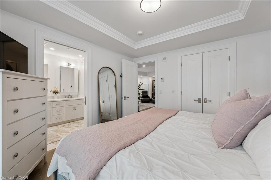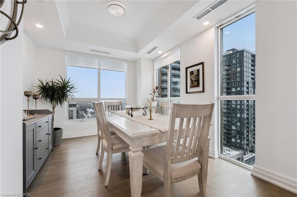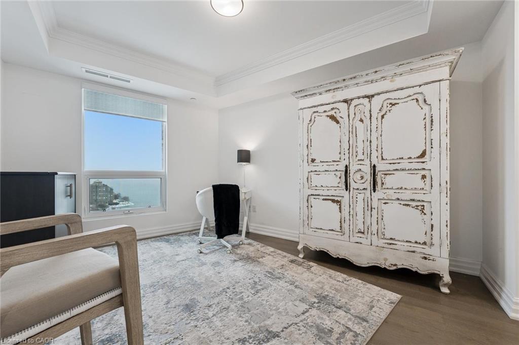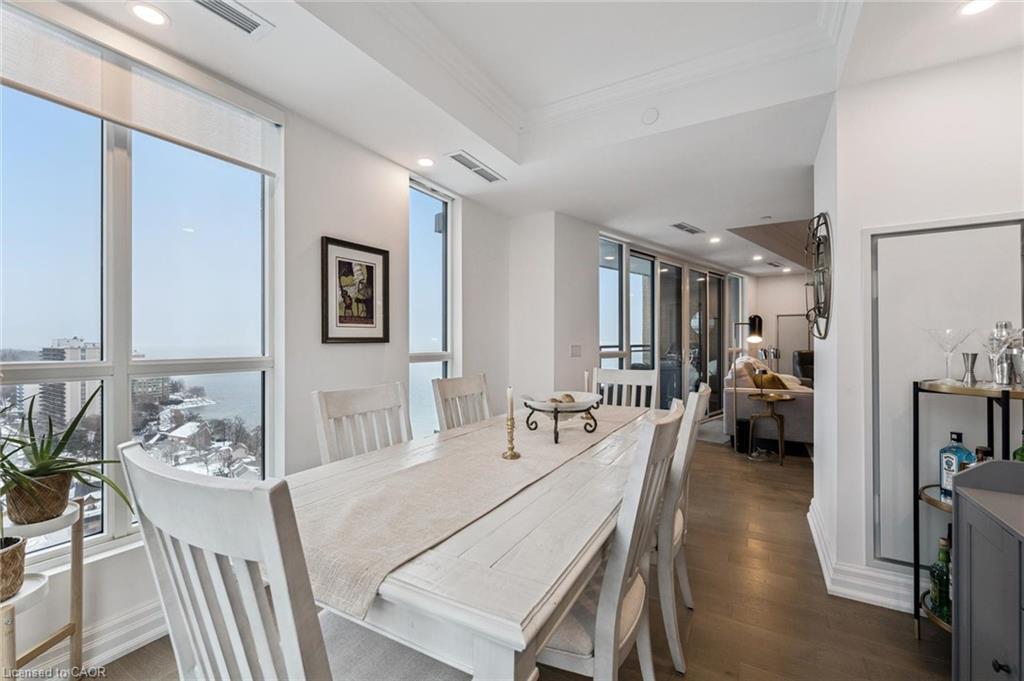 Experience refined lakeside living at Bridgewater Private Residences. This 1,275 sq. ft. corner suite offers a great layout with sweeping views of Lake Ontario and the Burlington–Toronto skyline. The floor plan includes two spacious bedrooms, each with its own ensuite bathroom and heated floors, as well as a separate dining room that can also serve as an office/den or additional bedroom, study, or fitness space.
