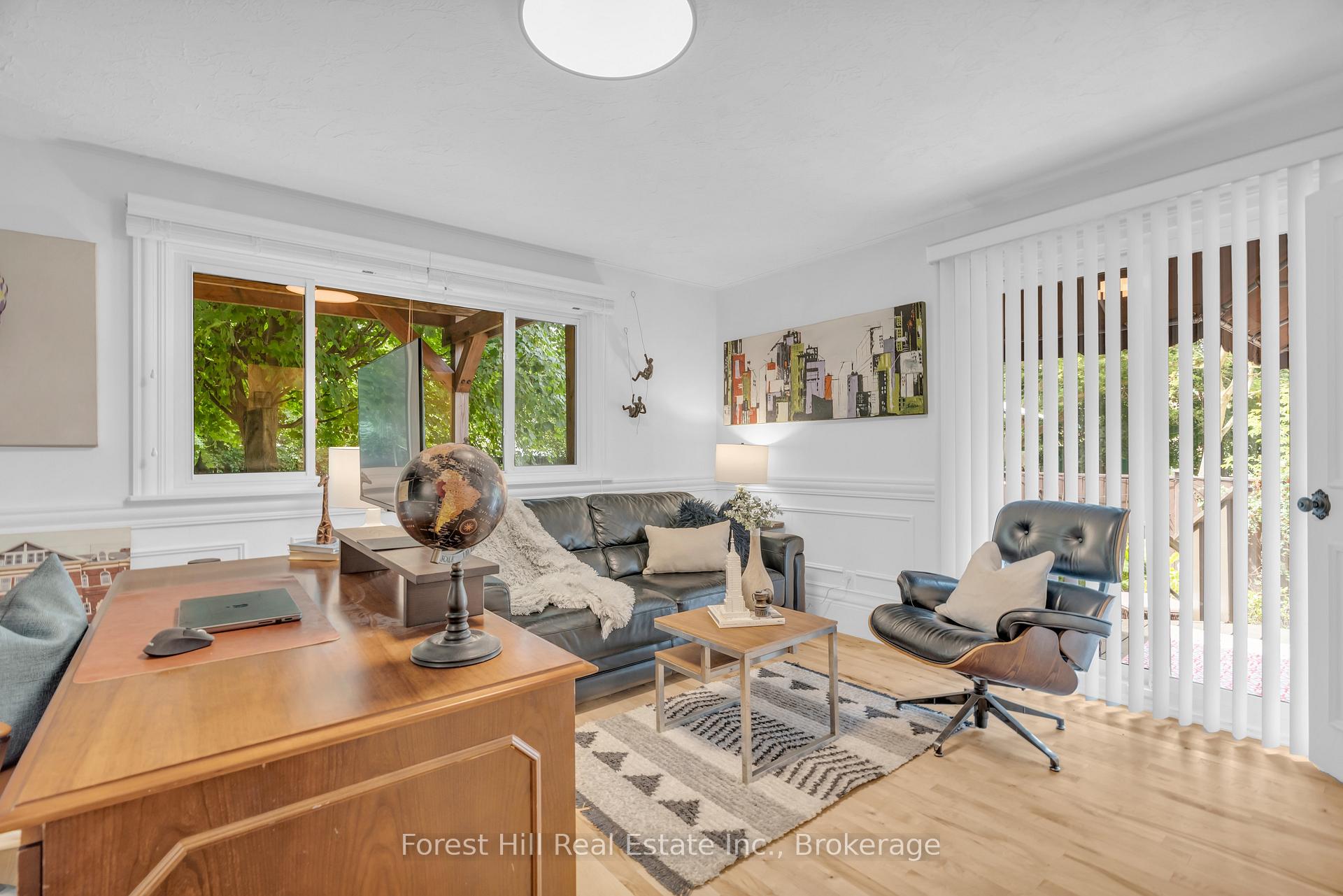 STORYBOOK CHARM WITH SPACE, PRIVACY, AND PRIME UPTOWN LIVING! Welcome to this rare 4+ bedroom, 2.5 bath detached home tucked at the end of a quiet dead end street in the heart of Uptown Waterloo. With timeless curb appeal and a thoughtful addition that adds space without losing charm, this home is a beautiful blend of character and modern updates inside and out. Step into a bright and functional layout featuring updated electrical including a new panel, modern plumbing, HVAC upgrades, solid 3/4 inch white ash hardwood flooring, and curated finishes throughout. The main floor offers an open and inviting flow with multiple spaces to gather or unwind, including a cozy sunroom plus a dedicated wired home office for those working from home. The granite coffee bar, updated lighting and trim, and quality details elevate the everyday experience. Upstairs, the primary suite features its own private balcony with French doors, your own peaceful treetop escape. Three additional bedrooms are generously sized, with a bonus flex room on the lower level perfect for a home gym, playroom, or creative space. Outside, the large backyard is a private oasis complete with three separate seating areas, a pergola, custom decks, and a hot tub for relaxing or entertaining. The garage is fully insulated and finished as a workshop, and the concrete driveway includes dual Level 2 EV chargers. What truly sets this home apart is the location. You are just steps to all the best of Uptown, including restaurants, cafes, Waterloo Park, trails, top schools, the LRT, and both universities, yet uniquely nestled against city owned greenspace on two sides for rare privacy and serenity. It feels like your own secret hideaway in the heart of the city. This is a turnkey home with soul in a location that is hard to beat. Come experience the best of Uptown without compromise.