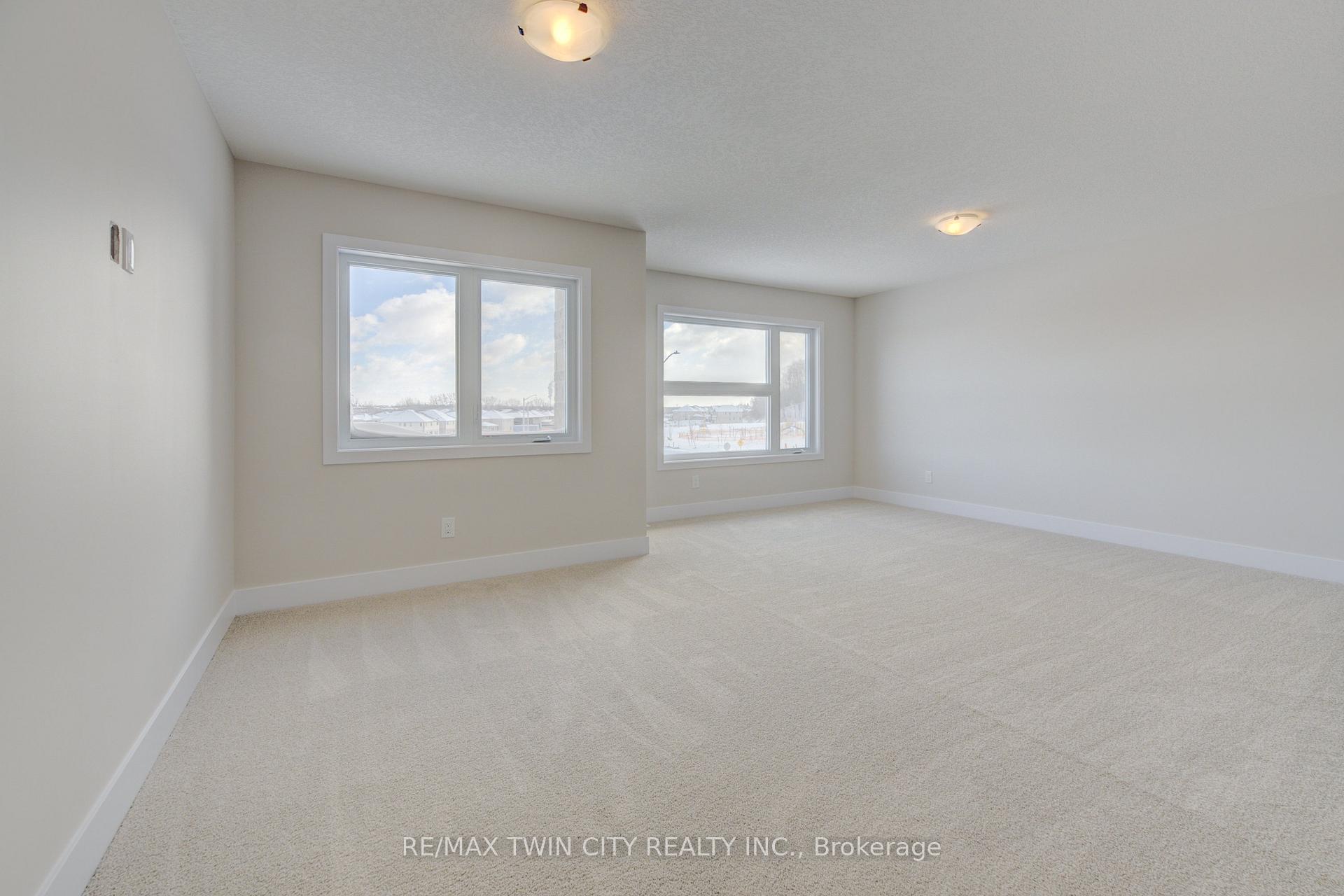 Welcome to this stunning, brand-new townhome, featuring a beautiful stone exterior and a host of modern finishes youve been searching for. Nestled in a desirable, family-friendly neighborhood, this home offers the perfect blend of style, comfort, and convenienceideal for those seeking a contemporary, low-maintenance lifestyle. Key Features: Gorgeous Stone Exterior: A sleek, elegant, low-maintenance design that provides fantastic curb appeal. Spacious Open Concept: The main floor boasts 9ft ceilings, creating a bright, airy living space perfect for entertaining and relaxing. Chef-Inspired Kitchen: Featuring elegant quartz countertops, modern cabinetry, and ample space for meal prep and socializing. 3 Generously Sized Bedrooms: Perfect for growing families, or those who need extra space for a home office or guests. Huge Primary Suite: Relax in your spacious retreat, complete with a well appointed ensuite bathroom. Convenient Upper-Level Laundry: Say goodbye to lugging laundry up and down stairs its all right where you need it. Neighborhood Highlights: Close to top-rated schools, parks, and shopping. Centrally located for a quick commute to anywhere in Kitchener, Waterloo, Cambridge and Guelph with easy access to the 401. This freehold end unit townhome with no maintenance fees is perfect for anyone seeking a modern, stylish comfortable home with plenty of space to live, work, and play. Dont miss the opportunity to make it yours!