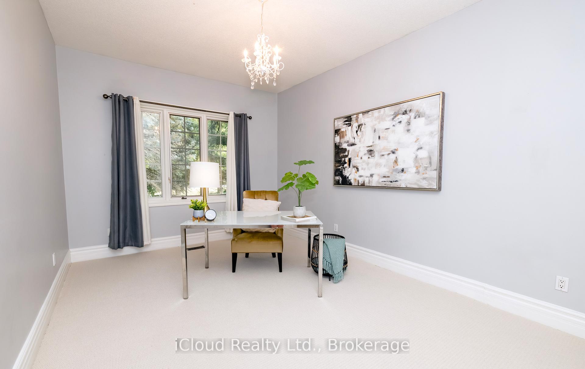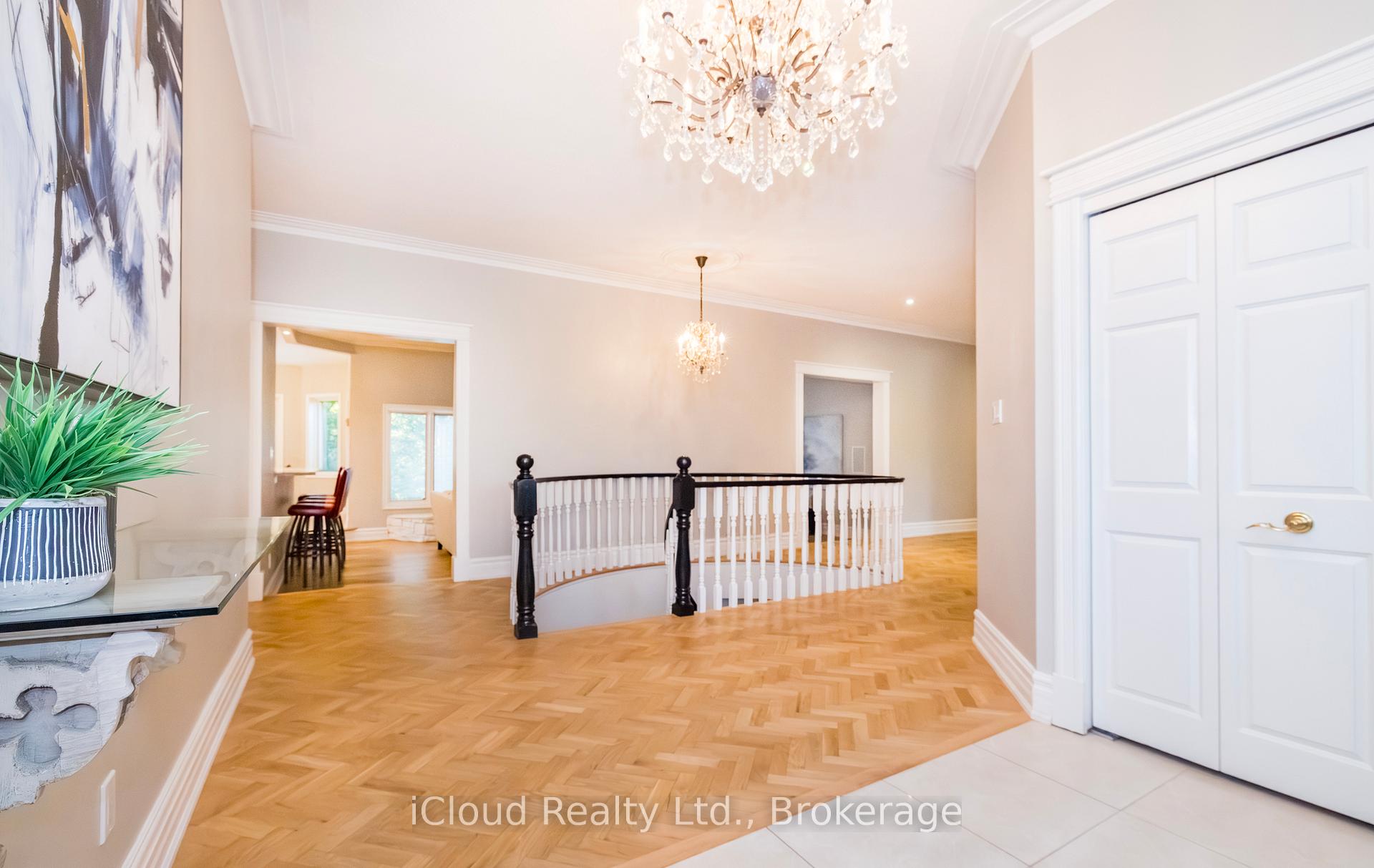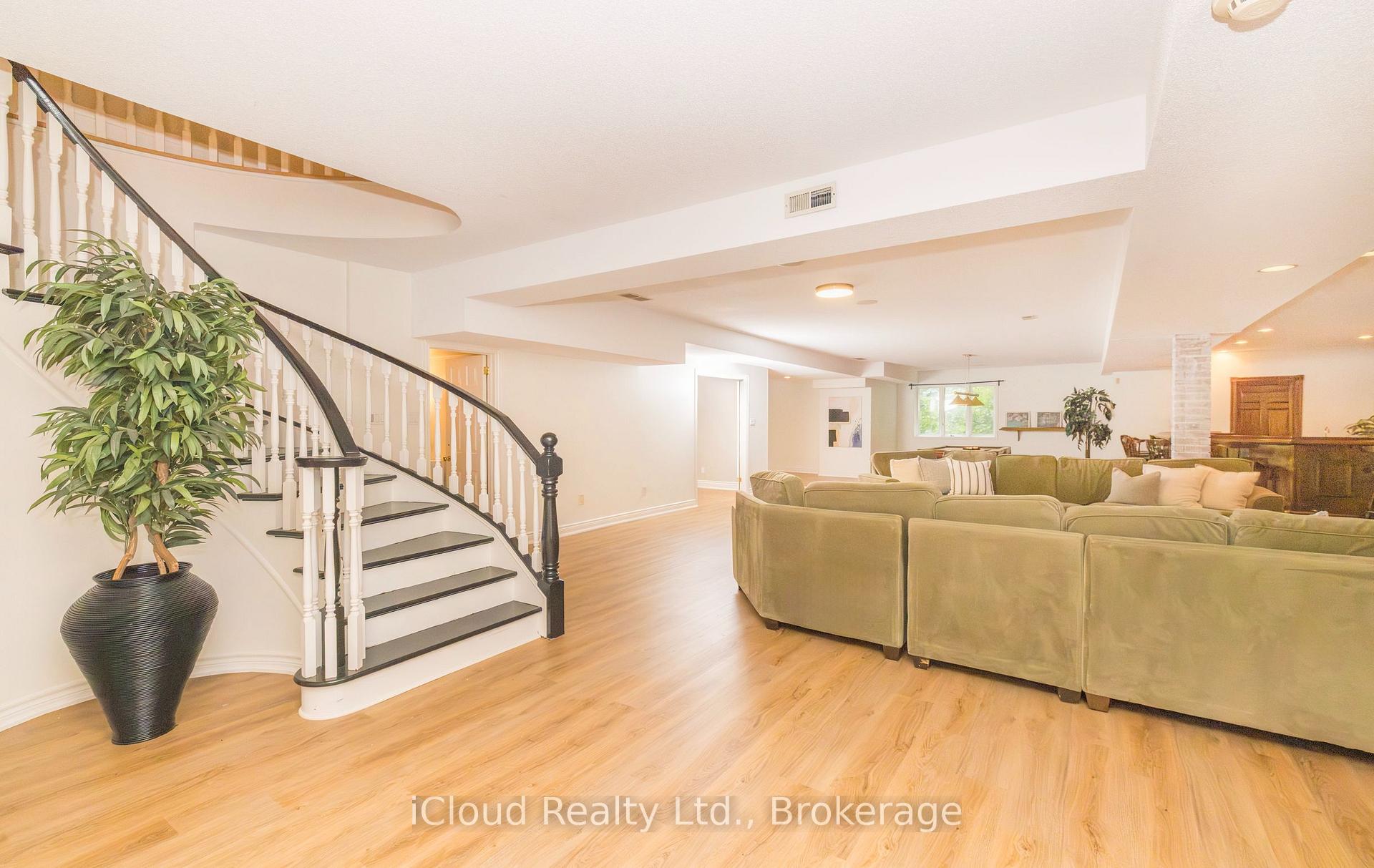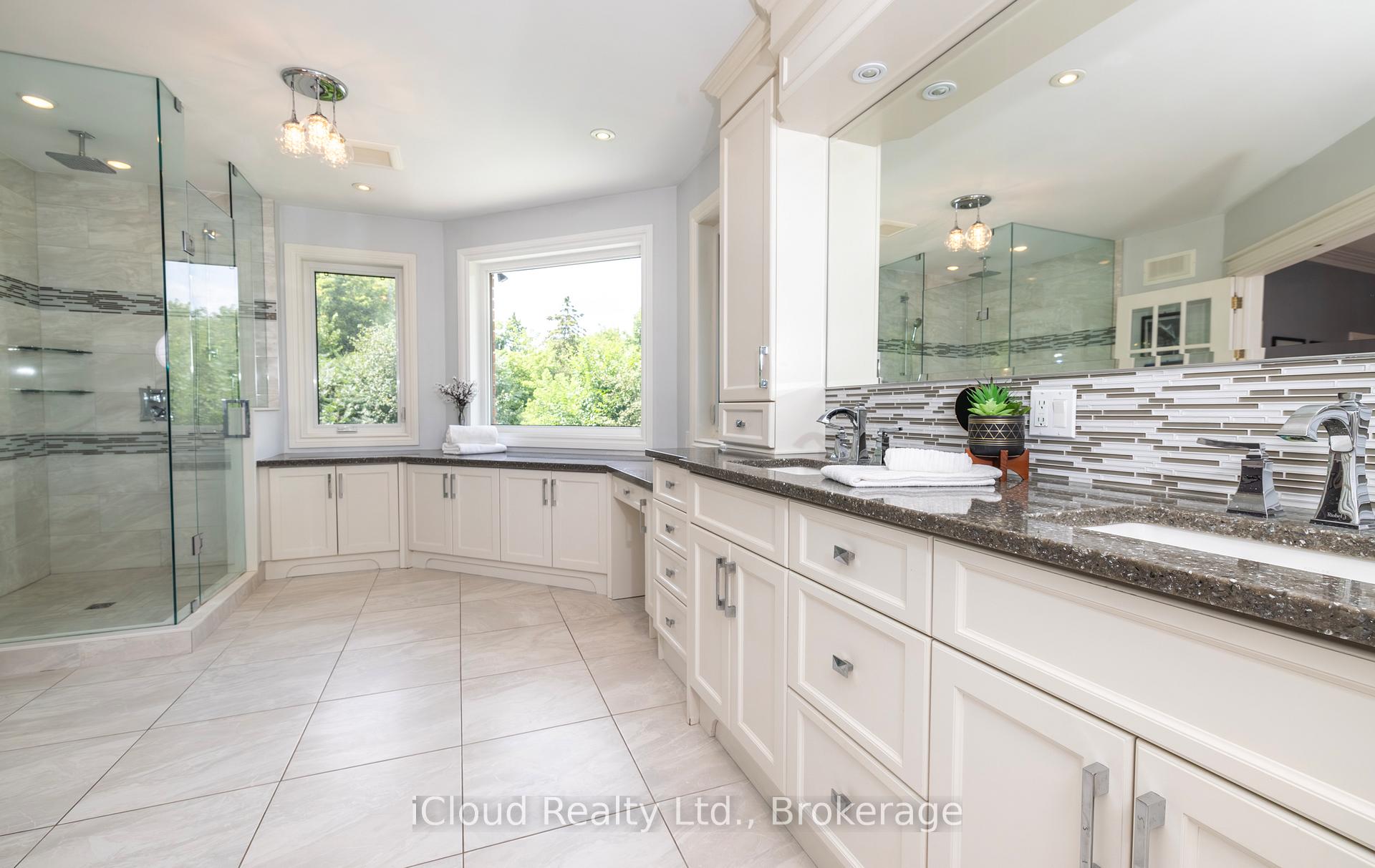 Set amid a community of upscale estate properties, this refined residence offers over 6,500 sq ft of luxurious living on a 1.12-acre lot in the heart of Campbellville. The grand foyer showcases herringbone-laid white oak flooring, leading into a formal dining room and a sunlit kitchen featuring Quartz counters, double islands, Wolf appliances, and designer lighting. The bright breakfast area opens to multiple levels of patios and decks, perfect for dining, lounging, and entertaining outdoors. A sunken family room overlooks the kitchen and includes a wood-burning fireplace with a classic brick surround. The formal living and dining rooms offer their own fireplaces, double-door entries, crown moulding, and oversized windows that bring in natural light. In the east wing, the expansive primary suite includes a romantic accent wall, designer sconces, a walk-in closet, a five-piece spa-inspired ensuite, and access to a private deck. Three additional bedrooms provide generous space; one includes a gas fireplace, while the others share a four-piece bathroom. A two-piece powder room completes this wing. The west wing includes a large mudroom, a second powder room, and a laundry room with built-in cabinetry. This area provides access to the garage, backyard, and a separate entrance to the basement. A bold black-and-white circular staircase leads to the lower level, where you’ll find a spacious recreation room with a wet bar and fireplace, a walk-out to the backyard, a fifth bedroom, a four-piece bathroom with a sauna, and a gym with a private entrance. The backyard retreat features an in-ground saltwater pool, tiered concrete patios, a charming gazebo, and lush perennial gardens, all surrounded by mature trees for complete privacy. A stone circular driveway, three-car garage, and classic brick-and-stone facade create an elegant first impression. All are just minutes from major commuter routes, shops, and restaurants.