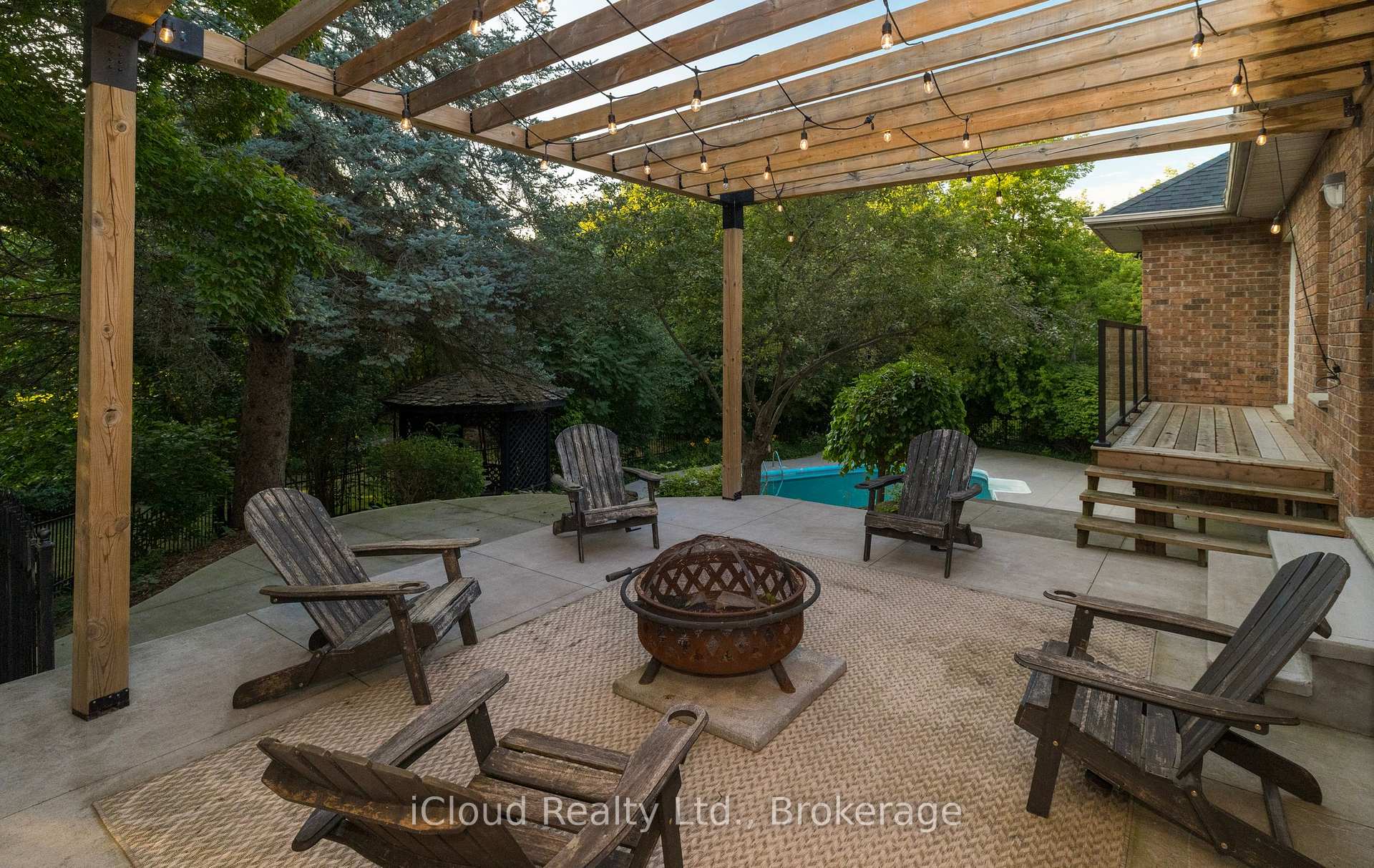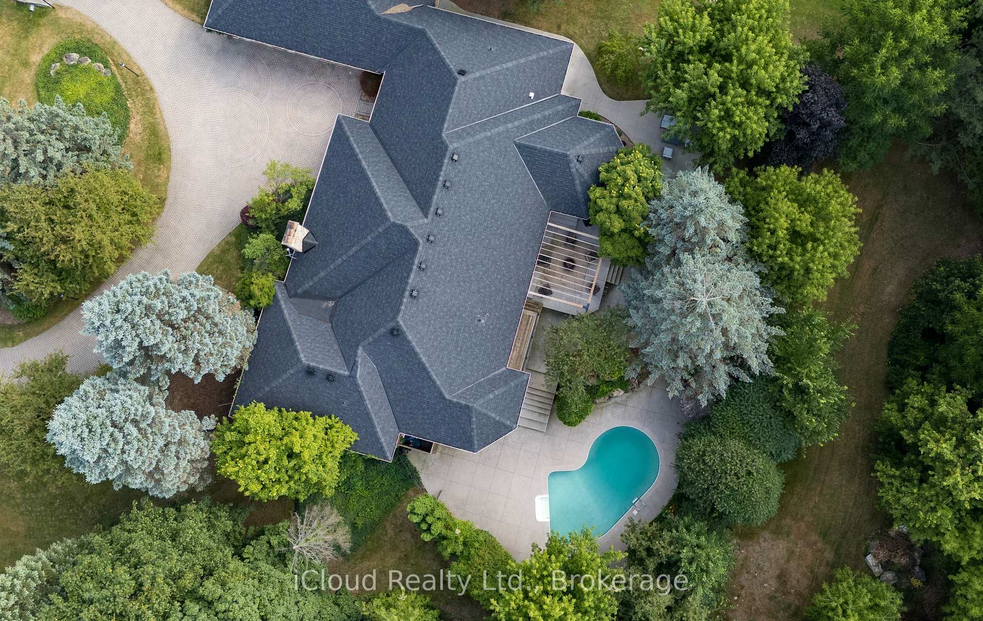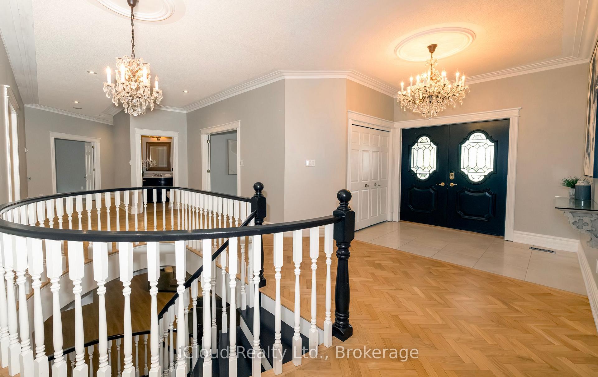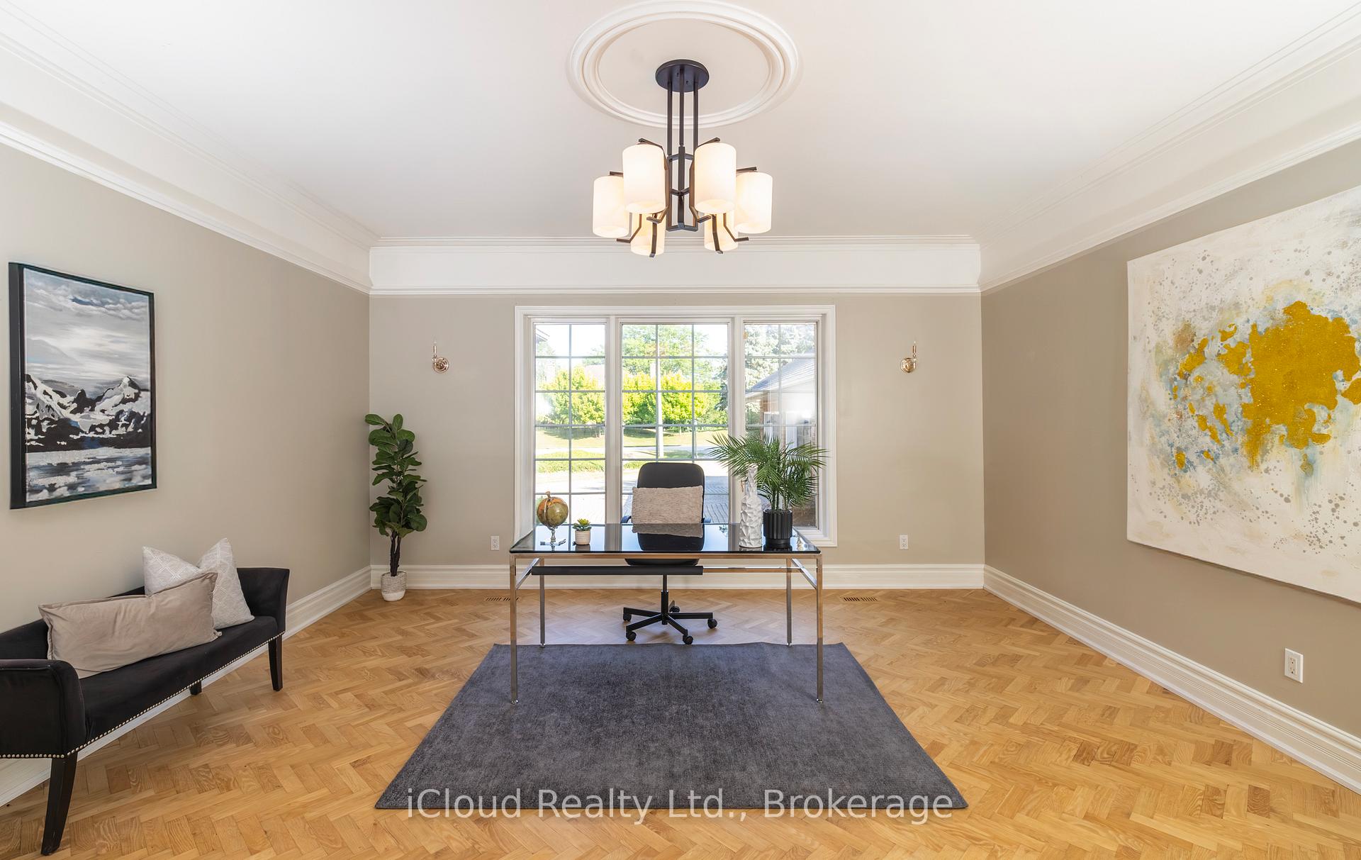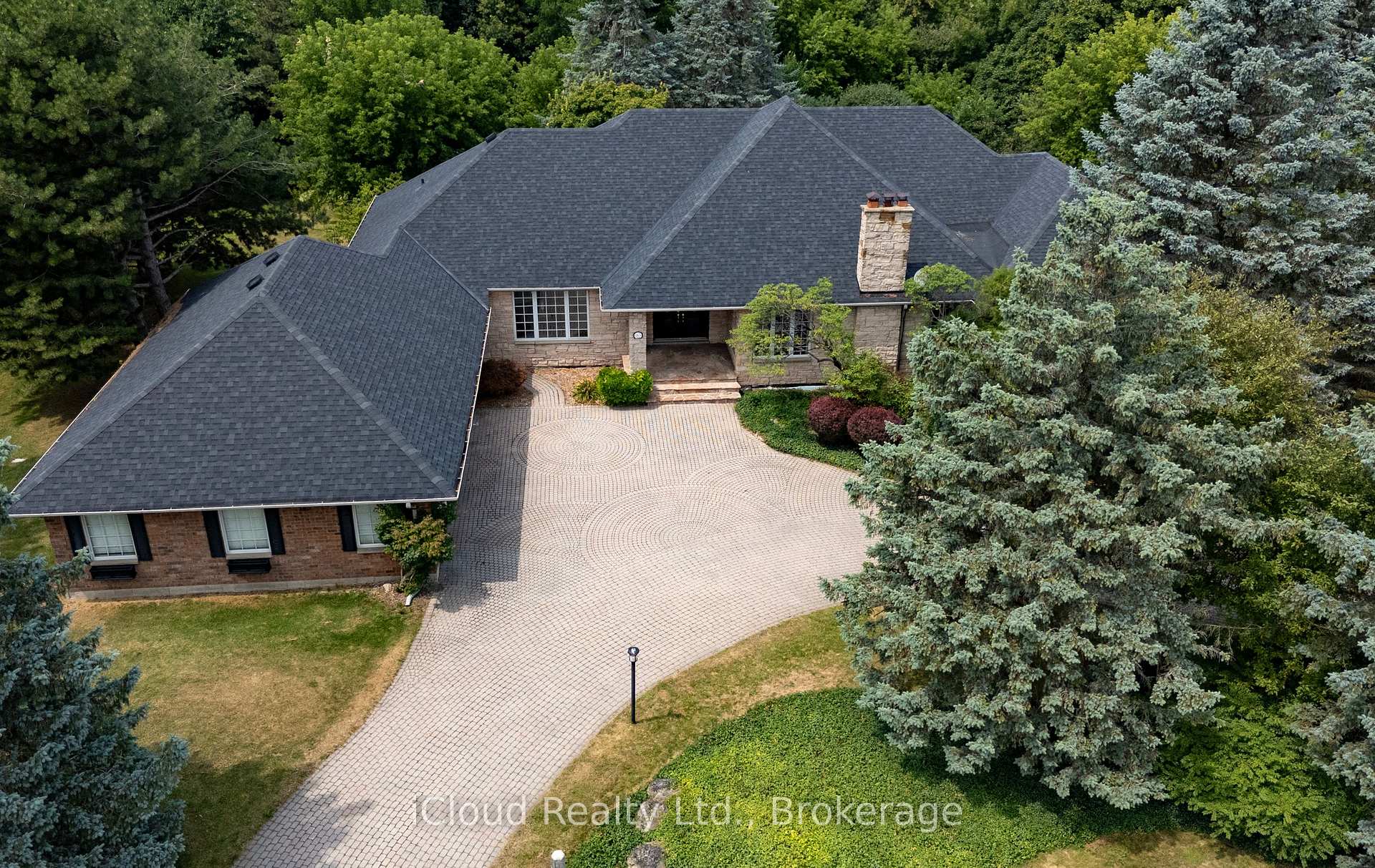 Set amid a community of upscale estate properties, this refined residence offers over 6,500 sq ft of luxurious living on a 1.12-acre lot in the heart of Campbellville. The grand foyer showcases herringbone-laid white oak flooring, leading into a formal dining room and a sunlit kitchen featuring Quartz counters, double islands, Wolf appliances, and designer lighting. The bright breakfast area opens to multiple levels of patios and decks, perfect for dining, lounging, and entertaining outdoors. A sunken family room overlooks the kitchen and includes a wood-burning fireplace with a classic brick surround. The formal living and dining rooms offer their own fireplaces, double-door entries, crown moulding, and oversized windows that bring in natural light. In the east wing, the expansive primary suite includes a romantic accent wall, designer sconces, a walk-in closet, a five-piece spa-inspired ensuite, and access to a private deck. Three additional bedrooms provide generous space; one includes a gas fireplace, while the others share a four-piece bathroom. A two-piece powder room completes this wing. The west wing includes a large mudroom, a second powder room, and a laundry room with built-in cabinetry. This area provides access to the garage, backyard, and a separate entrance to the basement. A bold black-and-white circular staircase leads to the lower level, where you’ll find a spacious recreation room with a wet bar and fireplace, a walk-out to the backyard, a fifth bedroom, a four-piece bathroom with a sauna, and a gym with a private entrance. The backyard retreat features an in-ground saltwater pool, tiered concrete patios, a charming gazebo, and lush perennial gardens, all surrounded by mature trees for complete privacy. A stone circular driveway, three-car garage, and classic brick-and-stone facade create an elegant first impression. All are just minutes from major commuter routes, shops, and restaurants.