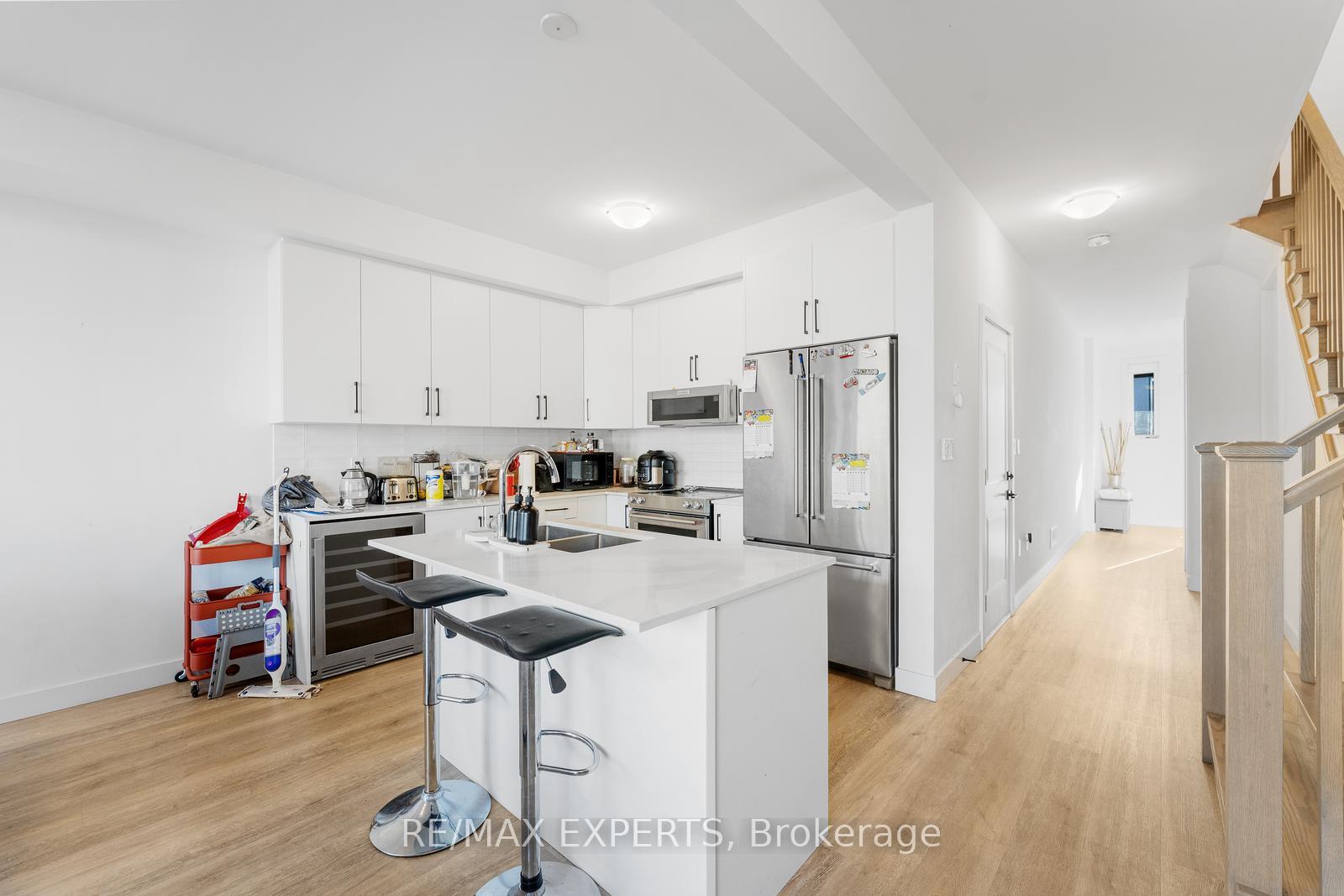 PRICED TO SELL!!! Welcome to your dream home! This stunning 3-bedroom, 2.5-bathroom townhouse boasts an exceptional two-storey layout designed for modern living. Step inside and be captivated by the soaring 9-foot ceilings and expansive foot doors that create an open, airy atmosphere.The luxurious vinyl hardwood flooring flows seamlessly throughout the main level, enhancing the stylish open-concept living and dining areas. The contemporary kitchen features sleek white cabinetry, stainless steel appliances, and a convenient wine fridge, all complemented by elegant quartz countertops.Retreat to the master suite, where you’ll find a spacious 4-piece ensuite complete with a relaxing soaker tub, a unique shower, and a generous walk-in closet. The two additional bedrooms are equally spacious, offering ample closet space and comfort.Convenience meets practicality with upper-level laundry, making chores a breeze. The unfinished basement presents endless possibilities for customization to fit your lifestyle. Dont miss the opportunity to make this exquisite townhouse your new home!