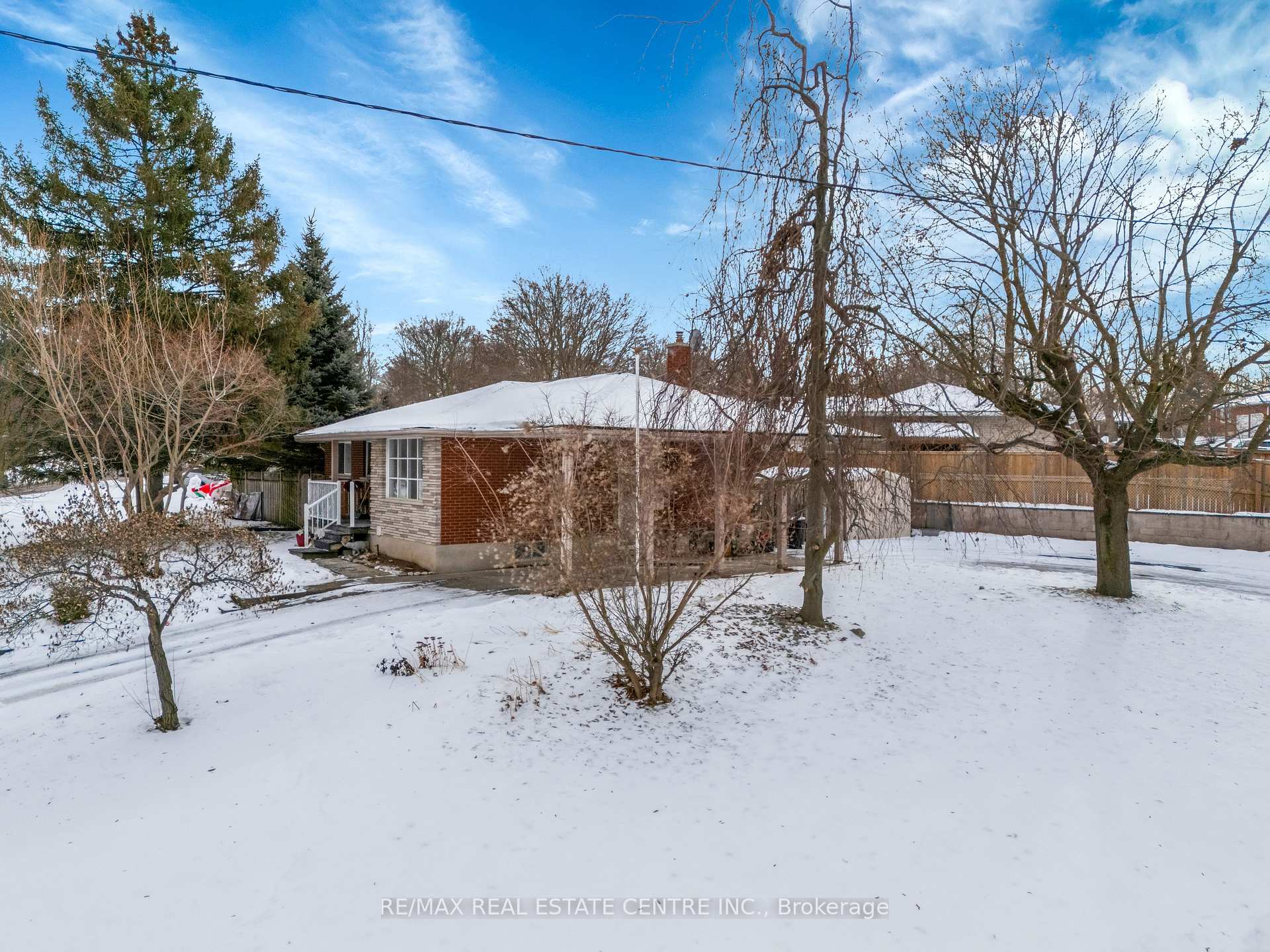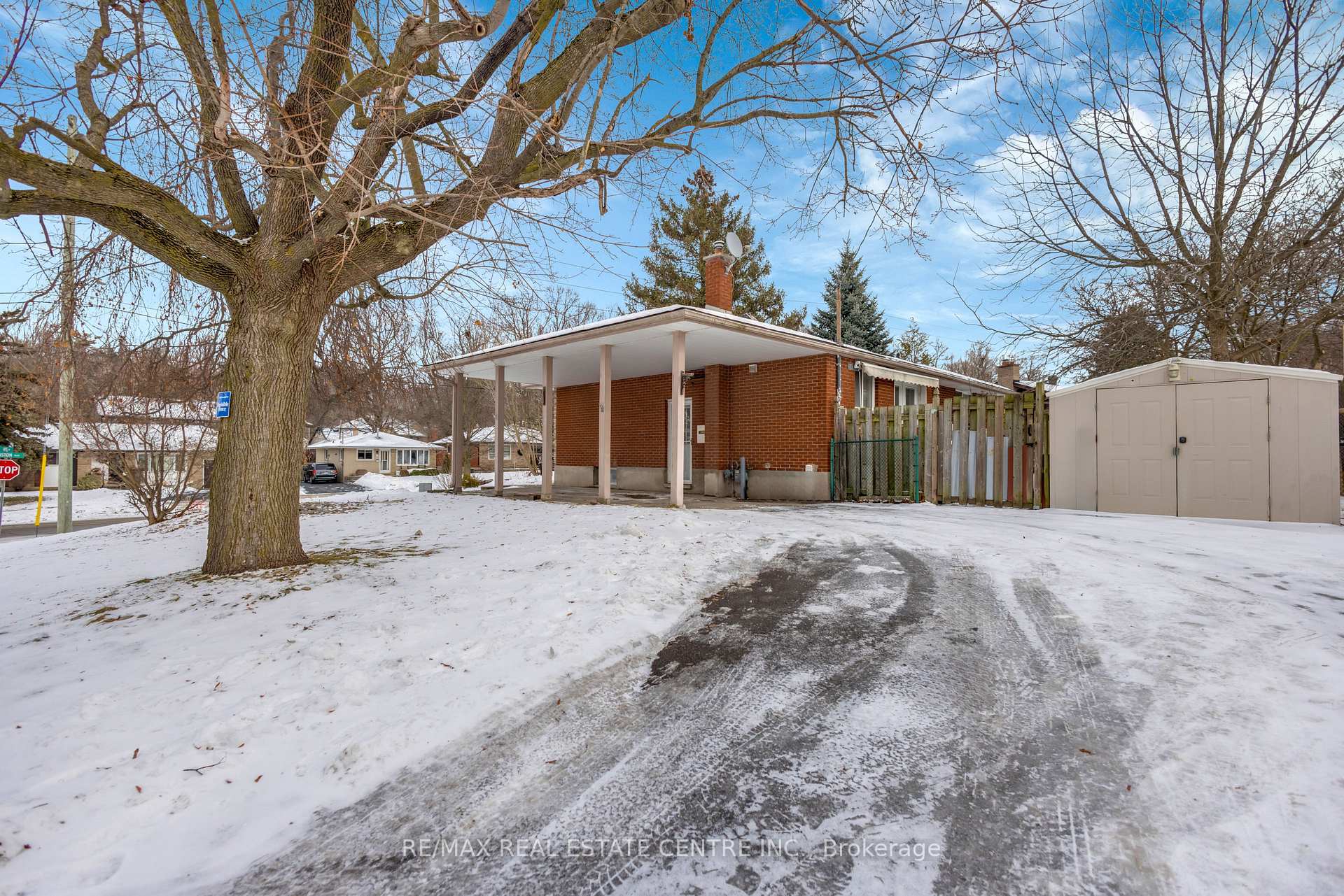 A rare opportunity to own a bungalow on a premium corner lot in one of Hespeler’s most sought-after neighbourhoods. This well-maintained 3+2 bedroom home features an updated kitchen with quartz countertops, laminate flooring, pot lights, and stainless steel appliances. The fully finished 2-bedroom basement features a kitchen, full bathroom, and separate side entrance, making it ideal for extended family or in-law use. Set on an impressive 118 ft corner lot with mature trees, this home offers excellent privacy and a circular driveway with parking for 8-10 cars. Conveniently located close to shopping, banks, parks, transit, and Hwy 401. Additional highlights include main-floor laundry, abundant natural light, modern light fixtures, and two steel storage sheds. Some photos are virtually staged