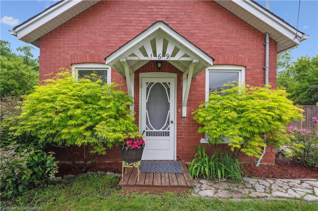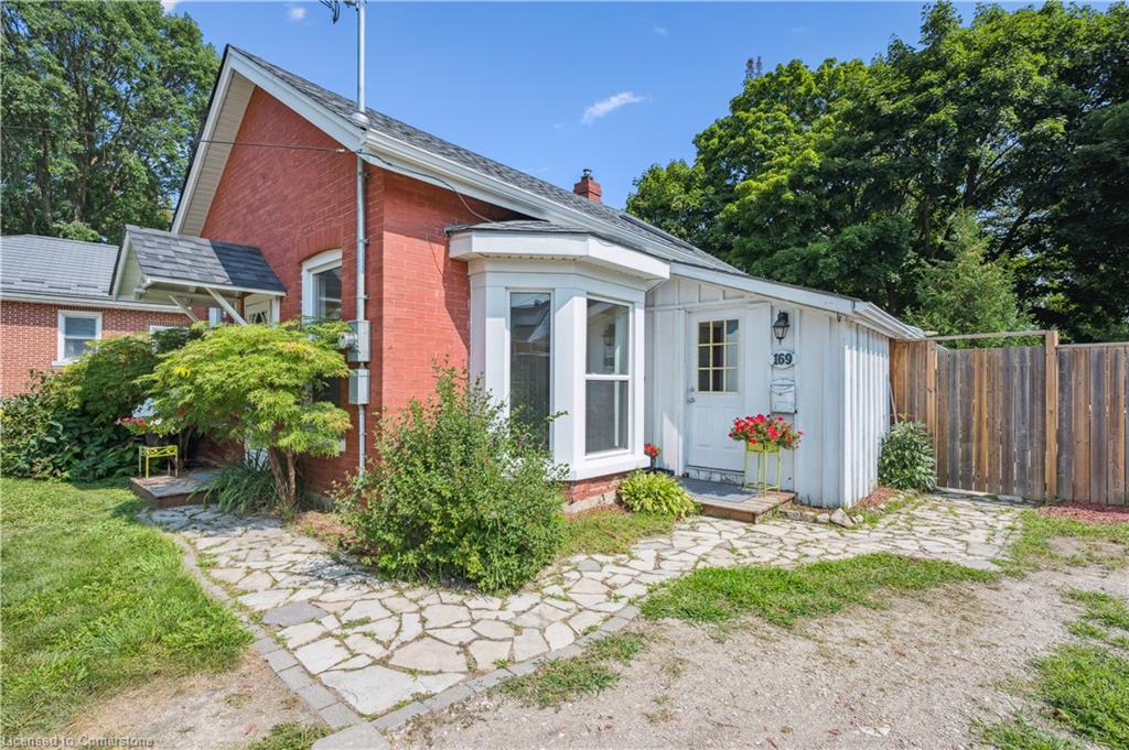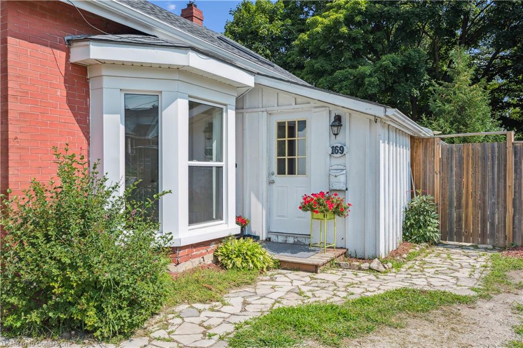 NEW MODIFICATIONS TO LAYOUT- IMPROVED ACCESS TO KITCHEN AND DINING AREA/ NEW STORAGE ROOM… This charming redbrick home nestled on a mature, tree lined 60×100 ft lot has a warm, and whimsical feel that makes a house a home. With undeniable curb appeal, from the crescent driveway inviting you in, to the picturesque stone walkway, 169 Edinburgh N is a standout in the community. Step inside to discover a bright and inviting interior featuring three bedrooms, each with large windows that bathe the rooms in natural light. At the heart of the home, the updated kitchen boasts vaulted ceilings, a skylight, soft-close cabinetry, and modern finishes, creating a space that’s both functional and stylish. The window breakfast nook is the perfect place to sit, with a brand new countertop and generous space behind for a kitchen table, enjoy all your culinary delights here. The front room, adorned with a bay window, offers a tranquil setting perfect for a cozy living space or bedroom. Towards the back of the home is a shared 4pc bathroom with ceiling skylight feature. Just off this, a spacious great room with glass sliding doors provides lovely views and easy access to the private backyard oasis. The backyard with a patio is truly a hidden gem – surprisingly large, shaded by mature trees, and perfect for indoor-outdoor living. Whether it’s sipping coffee on the covered patio or hosting a twilight dinner under the stars alfresco style, this space is designed for memorable moments. Location is key…and this one is unbeatable. Just steps from downtown Guelph’s vibrant core, enjoy walkable access to shops, cafes, restaurants, microbreweries, and charming century homes that give the area its unique character. Additionally, with both Sunny Acres Park and Exhibition Park just a short stroll away, this home is perfectly suited for first-time buyers, or investors who appreciate a perfect rental opportunity. This small but adorable house is full of potential.