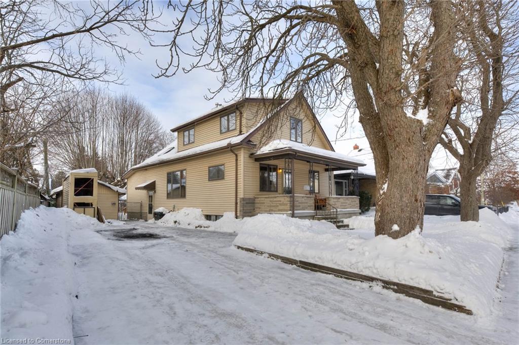 This Midtown property is situated on a 55 by 168 foot lot, and offers the potential to create up to four residential units—all without the hassle of those Waterloo rental bylaw fees. Whether you’re looking to start fresh with a multi unit new build design, build a little house in the back, add a separate apartment to the second floor, or build off the current structure this property opens up some fantastic possibilities. The main floor features a 1 bedroom suite with over 1,000 square feet of comfortable living space, complete with a brand-new accessible shower and the convenience of main-floor laundry. This space could easily accommodate a second bedroom in the addition behind the kitchen. Upstairs, you’ll find two additional bedrooms, a den, and a two-piece bathroom offering loads of space for multi generational living. The basement has a full ceiling height in the rec room a cold storage, a workshop and lots of notable upgrades like the newer Central Vac and furnace and a 200 amp panel. The fully fenced yard with mature perennial gardens and large shed is a dream for those who truly value their outdoor space. Close to the Wellington expressway cut off, near transit, bike routes, and just minutes from all the shops & restaurants in Uptown Waterloo and Downtown Kitchener.