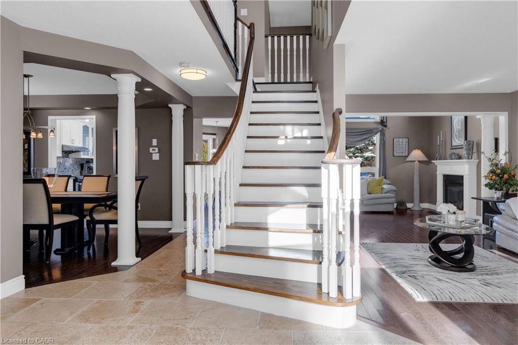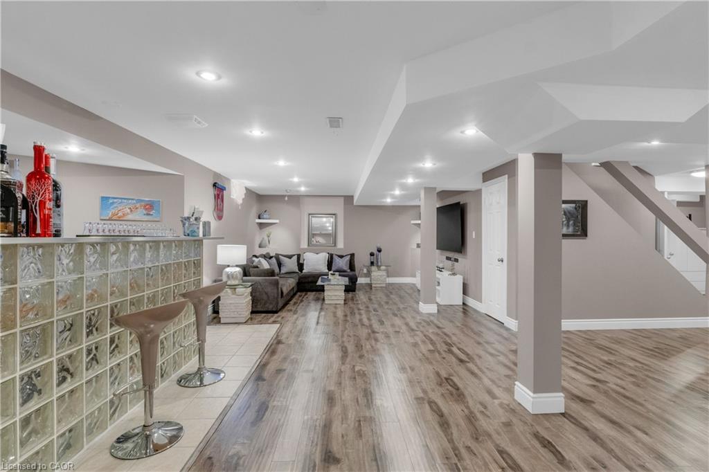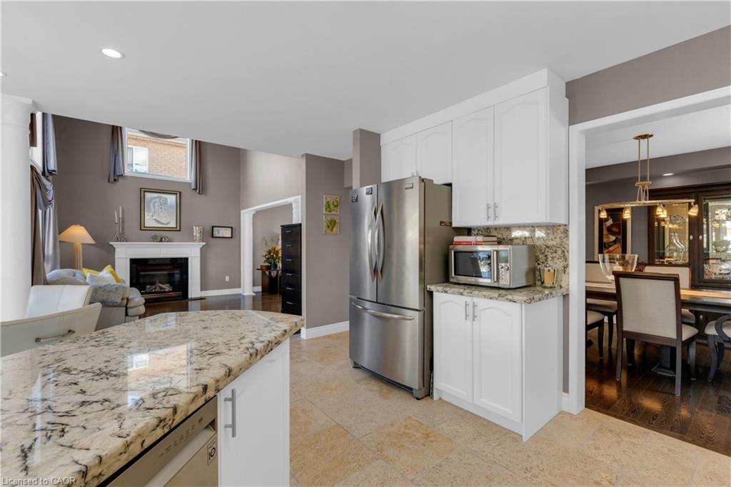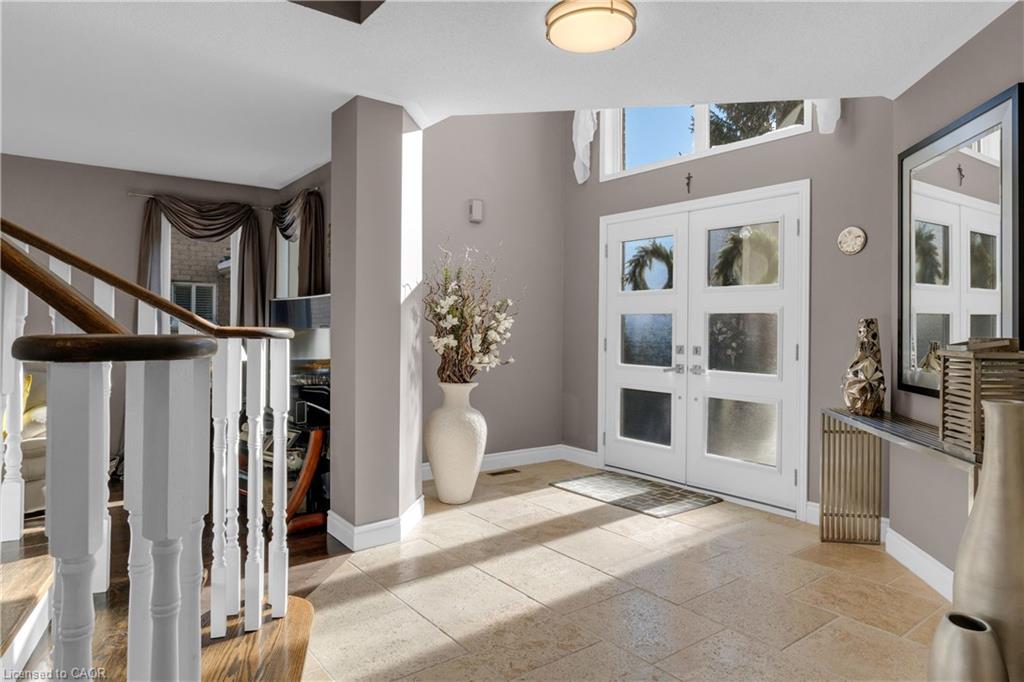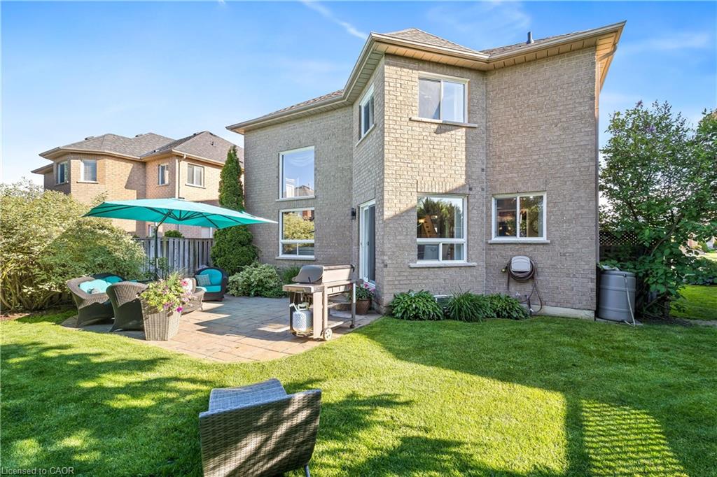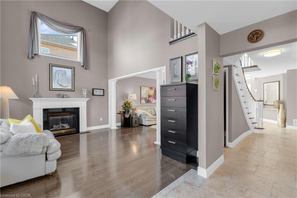 Bright, spacious and full of style – welcome to this gorgeous 3+1 bed, 4-bath home with a dramatic 20+ ft open-to-above ceiling over the family room (easy to convert into that 4th bedroom if you like). At roughly 2,400+ finished sq ft plus the basement, this place is packed with classy upgrades and thoughtful finishes. Walk in to stone tile and hardwood flowing through the main and second floors. The kitchen is a showstopper: granite counters and backsplash, stainless steel appliances, and a cozy eat-in area. The great room boasts sky-high windows, tons of natural light and a gas fireplace – perfect for relaxing or entertaining. Separate living and dining rooms give everyone room to spread out. Upstairs you’ll find a roomy primary bedroom with two closets and a 4-piece ensuite, plus two more good-sized bedrooms. The open-to-above area above the family room was pre-planned for a 4th bedroom at build time, so converting it is straightforward. The finished basement adds real value: wet bar, 3-piece bath, bedroom and a large rec space with durable newer laminate flooring – ideal for guests, teens, or a home theatre. Outside, the backyard is a private oasis with lush greenery, a stone patio and an irrigation/sprinkler system that keeps the lawn looking great. Location can’t be beat – within walking distance to grocery stores, Shoppers Drug Mart, Tim Hortons and the fantastic Gellert Community Centre & Park. A short drive gets you Toronto Premium Outlets, Hwy 407 and 401, plus all other local amenities. Additional upgrades: renovated baseboards, bathroom, kitchen, great curb appeal and front entry with double door, 9 yr old roof, newer commercial grade driveway, interlocking, sprinklers and mature landscaping all around, 3 ton AC unit for enhanced cooling, many windows with replaced glass panes and caulking.