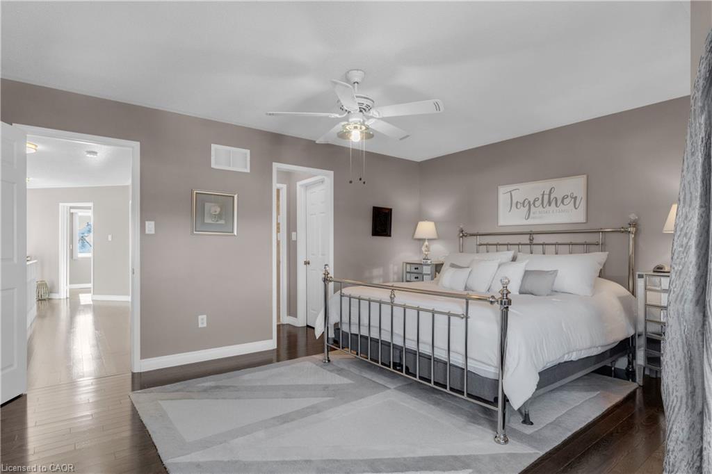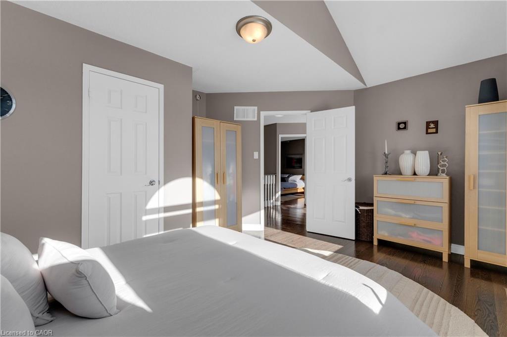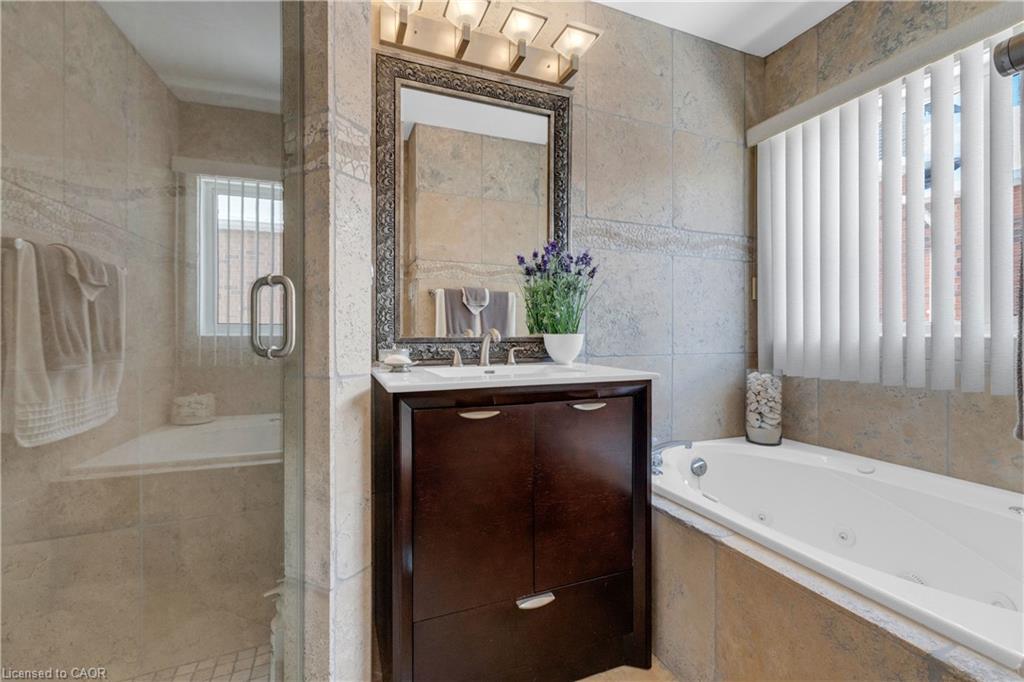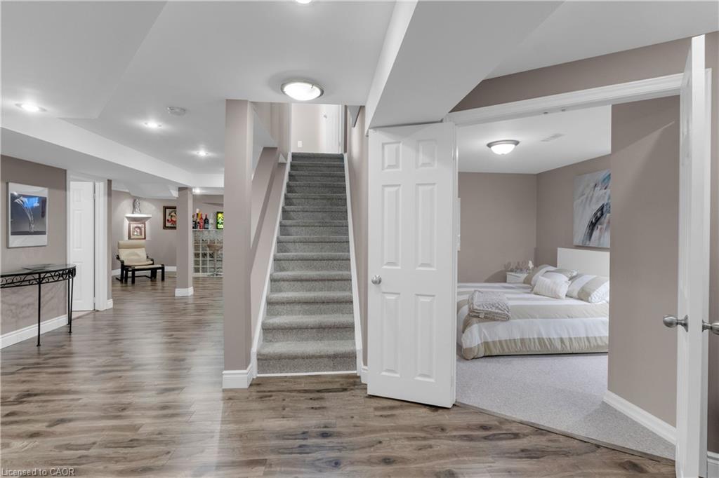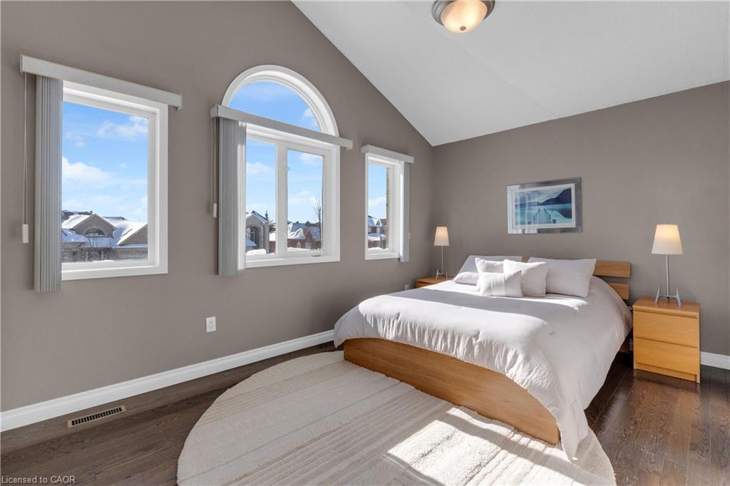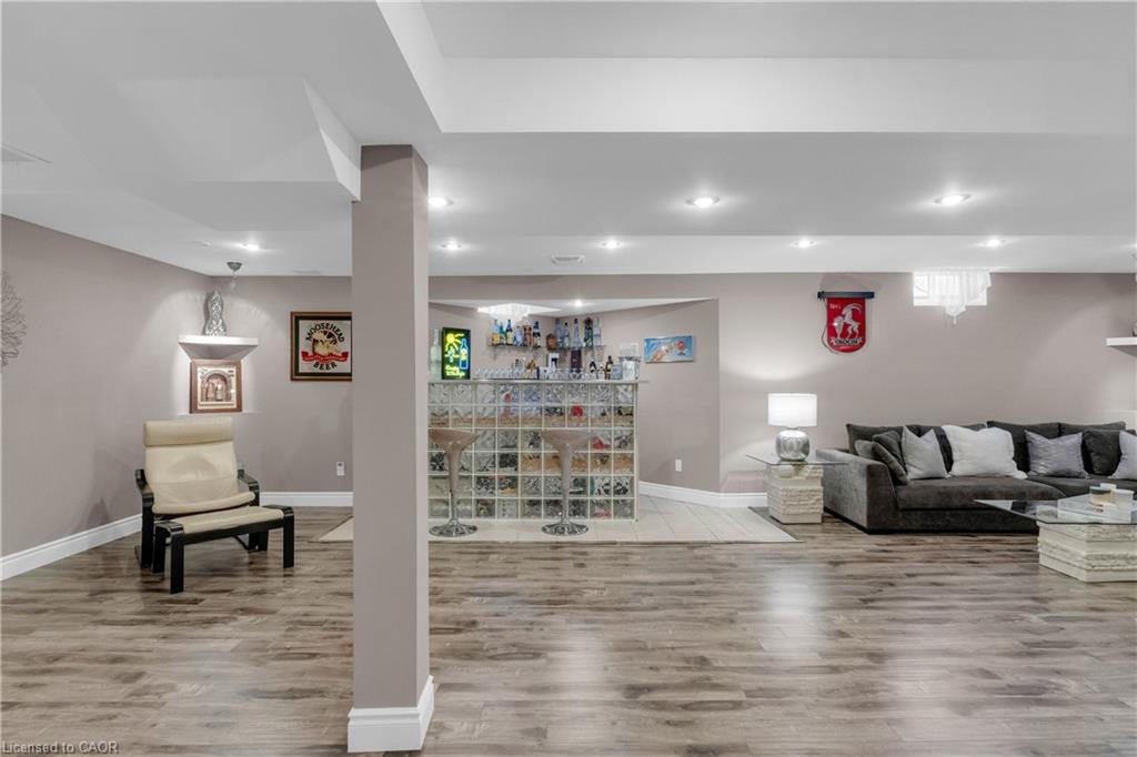 Bright, spacious and full of style – welcome to this gorgeous 3+1 bed, 4-bath home with a dramatic 20+ ft open-to-above ceiling over the family room (easy to convert into that 4th bedroom if you like). At roughly 2,400+ finished sq ft plus the basement, this place is packed with classy upgrades and thoughtful finishes. Walk in to stone tile and hardwood flowing through the main and second floors. The kitchen is a showstopper: granite counters and backsplash, stainless steel appliances, and a cozy eat-in area. The great room boasts sky-high windows, tons of natural light and a gas fireplace – perfect for relaxing or entertaining. Separate living and dining rooms give everyone room to spread out. Upstairs you’ll find a roomy primary bedroom with two closets and a 4-piece ensuite, plus two more good-sized bedrooms. The open-to-above area above the family room was pre-planned for a 4th bedroom at build time, so converting it is straightforward. The finished basement adds real value: wet bar, 3-piece bath, bedroom and a large rec space with durable newer laminate flooring – ideal for guests, teens, or a home theatre. Outside, the backyard is a private oasis with lush greenery, a stone patio and an irrigation/sprinkler system that keeps the lawn looking great. Location can’t be beat – within walking distance to grocery stores, Shoppers Drug Mart, Tim Hortons and the fantastic Gellert Community Centre & Park. A short drive gets you Toronto Premium Outlets, Hwy 407 and 401, plus all other local amenities. Additional upgrades: renovated baseboards, bathroom, kitchen, great curb appeal and front entry with double door, 9 yr old roof, newer commercial grade driveway, interlocking, sprinklers and mature landscaping all around, 3 ton AC unit for enhanced cooling, many windows with replaced glass panes and caulking.