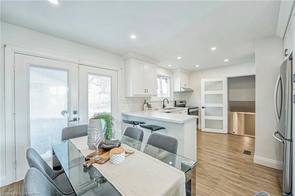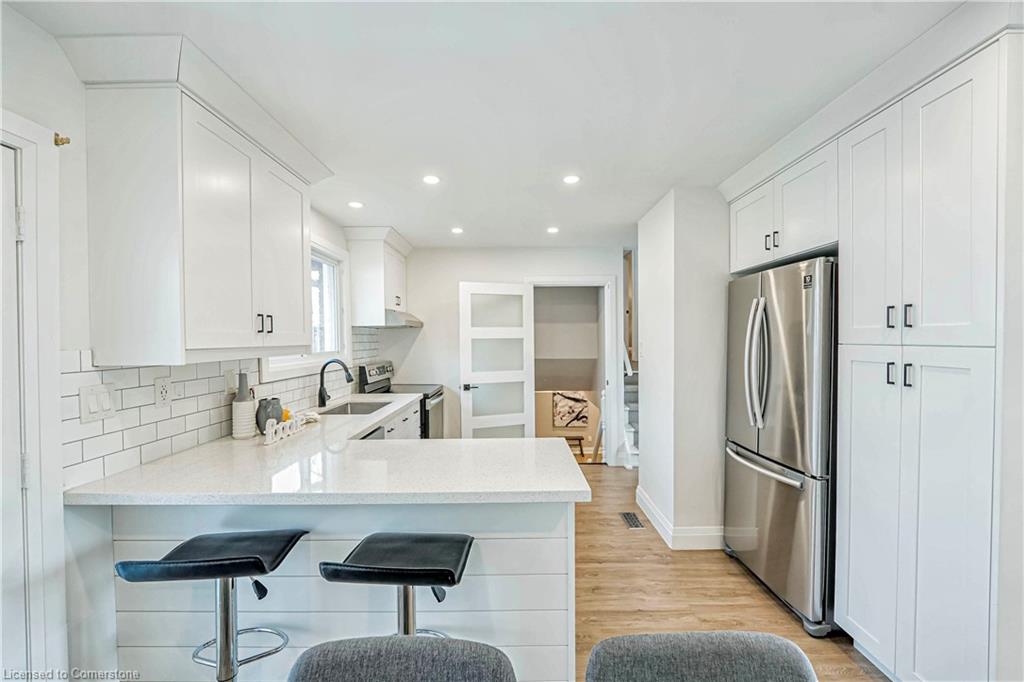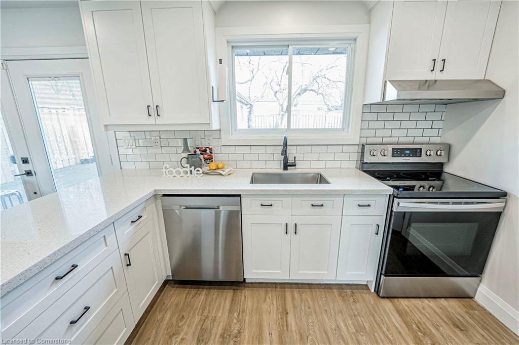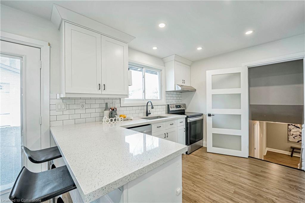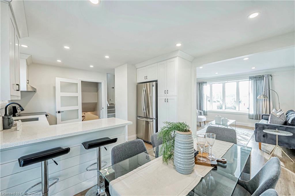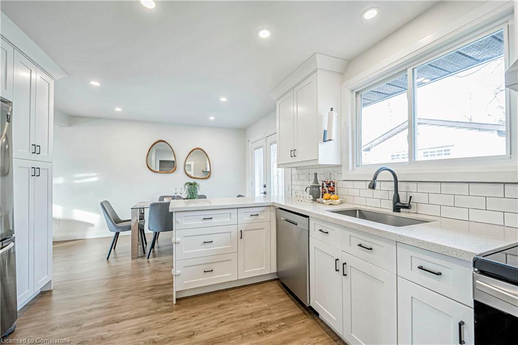 Step into this stunning, fully renovated 3-bedroom, 2-bathroom bungalow in the heart of the sought-after Lawfield neighborhood. Designed for modern living, this open-concept gem sits on a spacious lot, blending elegance and comfort seamlessly. Sun-drenched rooms with large, recently updated windows and sleek pot lighting create a fresh, inviting ambiance. Cook and entertain in style with a custom-built kitchen featuring quartz countertops, all-newer stainless-steel appliances, and luxurious vinyl flooring. Both bathrooms have been meticulously updated with chic, contemporary finishes that are sure to impress. The finished basement provides additional living space with large windows, a full bath, a reading nook, and a laundry room. Ideal for movie nights, a home office, or a guest suite. Enjoy the private backyard, plus a detached garage with a workbench for all your DIY projects. The driveway fits 2 cars comfortably. Furnace, heat pump, and tankless water heater all installed in late 2022. Move in with zero worries! Located in a serene, family-oriented neighborhood with convenient access to major highways. Within walking distance to Lawfield Elementary School, grocery stores, and public transportation facilities. Mohawk College and McMaster University are easily accessible by car. This is more than a home its a lifestyle. Don’t miss out on this rare find. Nothing left to do but move in and make it yours! Heat pump for both a/c & heat also, have the aux heat option with the conventional gas furnace all are Carrier brand installed around Sep 2022 (along with the Navien tankless water heater)
