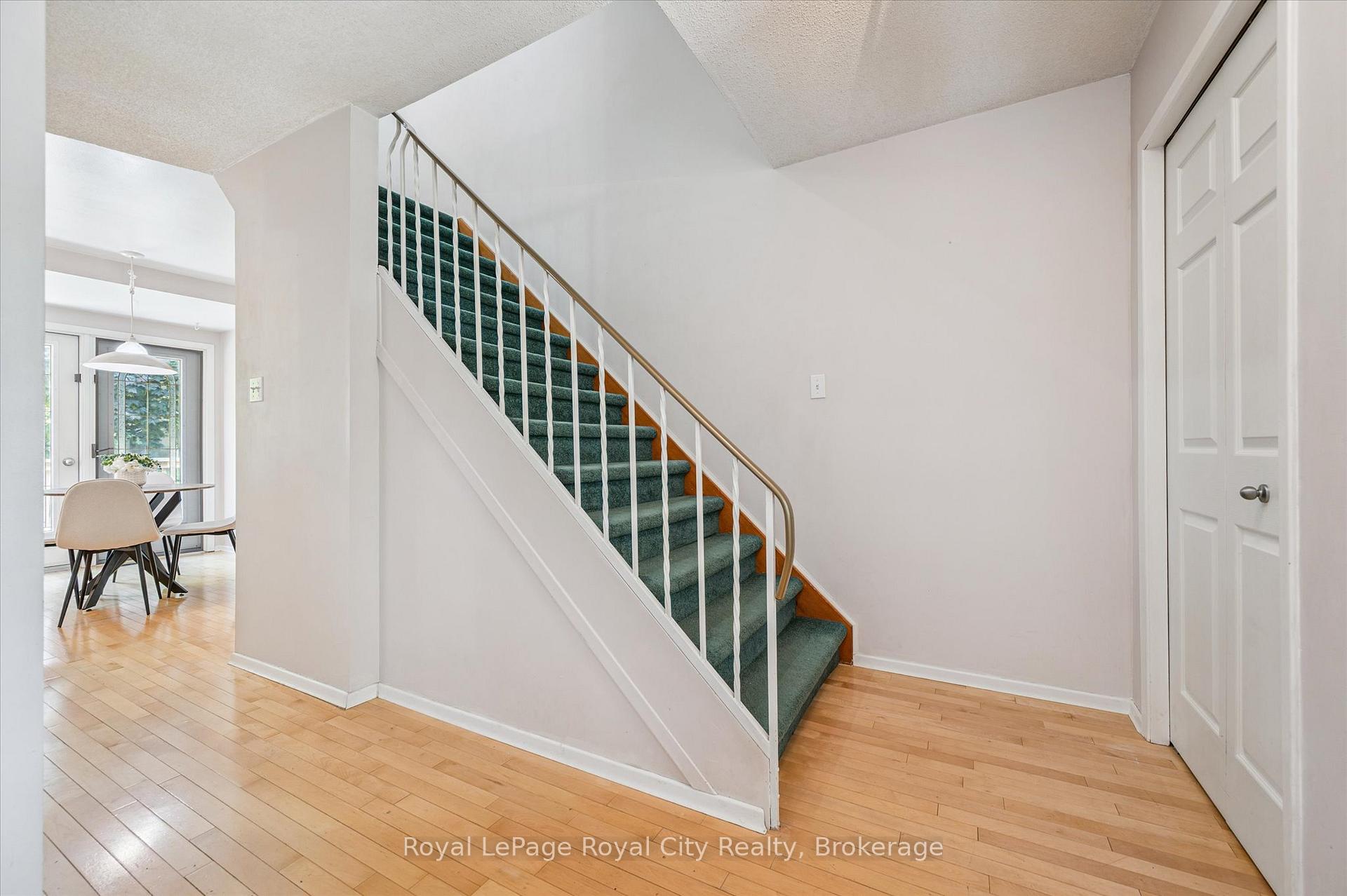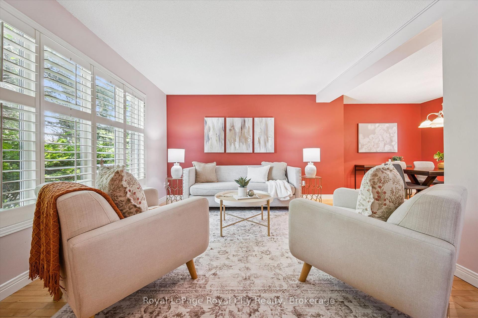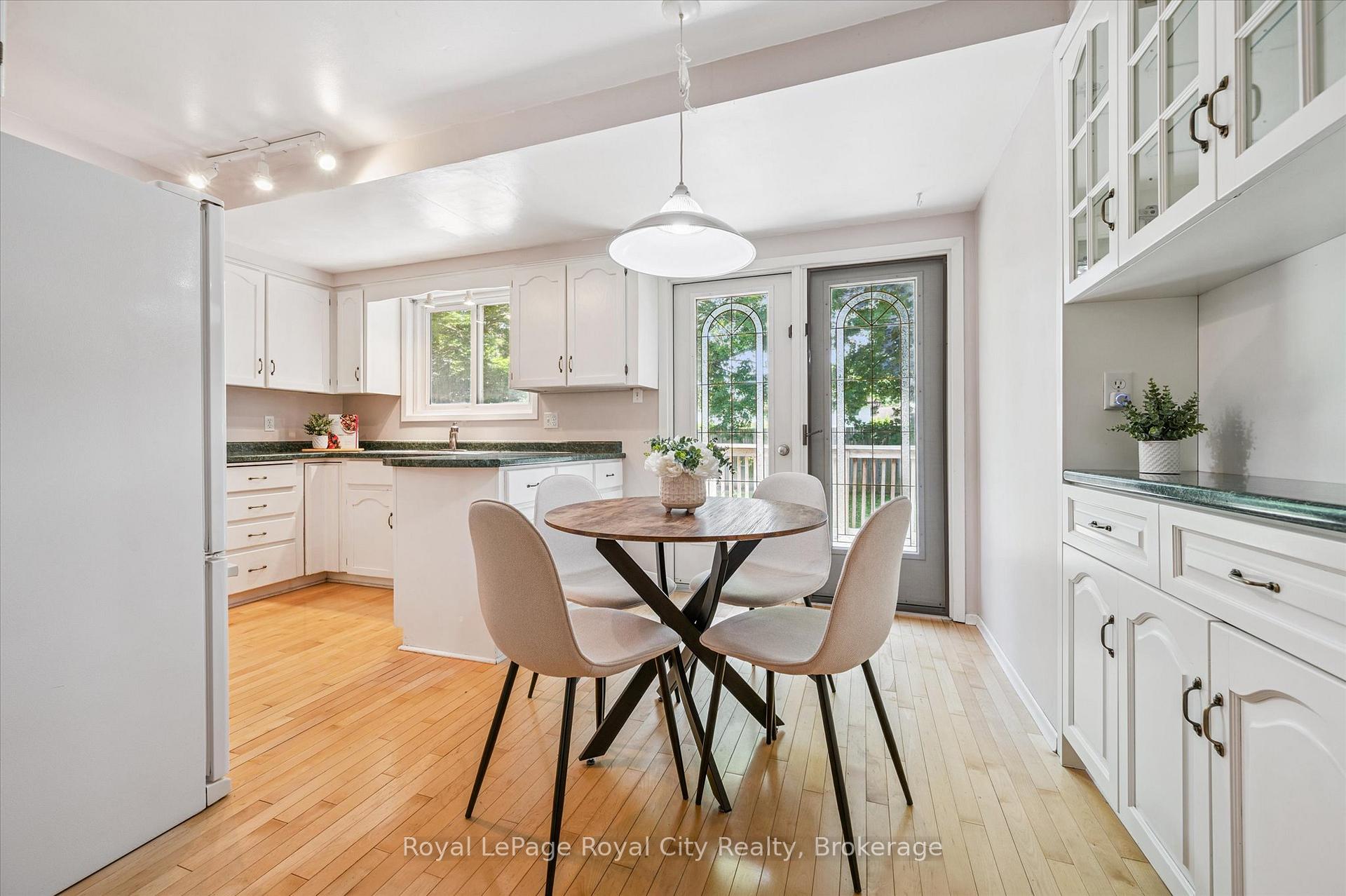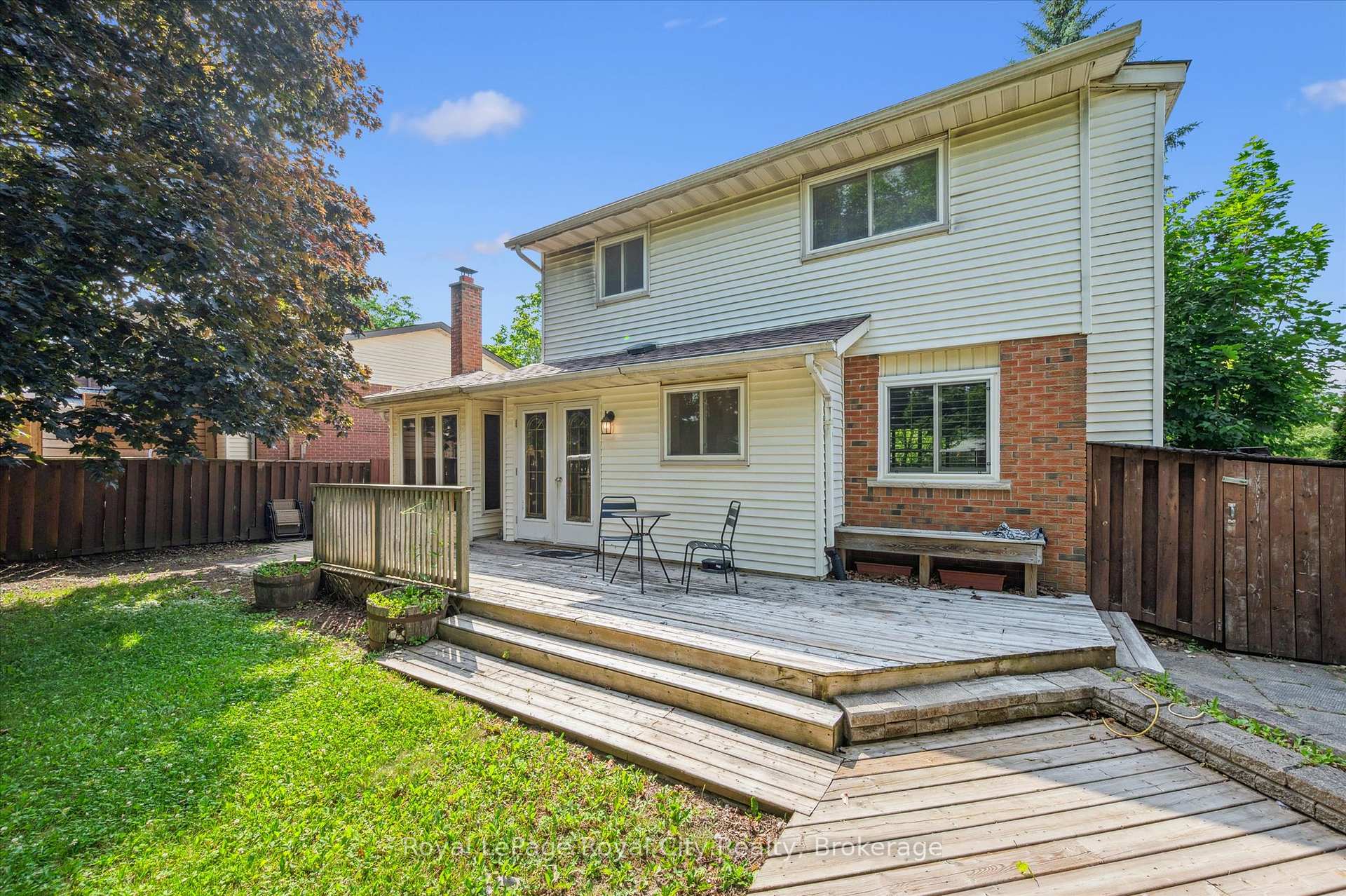 Family-friendly living in Guelphs West End! Just steps from Springdale Park and Gateway Drive Public School, this 3-bedroom, 4-bathroom home offers a fantastic opportunity to create the perfect space for your family. With a practical layout, generous room sizes, and hardwood flooring throughout the main level, its well-suited for a straightforward cosmetic update. The main floor features an open concept living and dining area, a bright eat-in kitchen with walkout to the backyard, and a cozy family room with a fireplace. Upstairs there is space to expand the 2-piece primary ensuite, while a 4-piece family bathroom services the second and third bedrooms. The finished basement includes a large recreation room, 3-piece bath, and ample storage. The private, fully fenced backyard is pool-sized and ready for your vision. Just 8 minutes to Costco and only 4 minutes to the Hanlon, this location makes everyday convenience a breeze. A great property with endless potential – come make it your own!