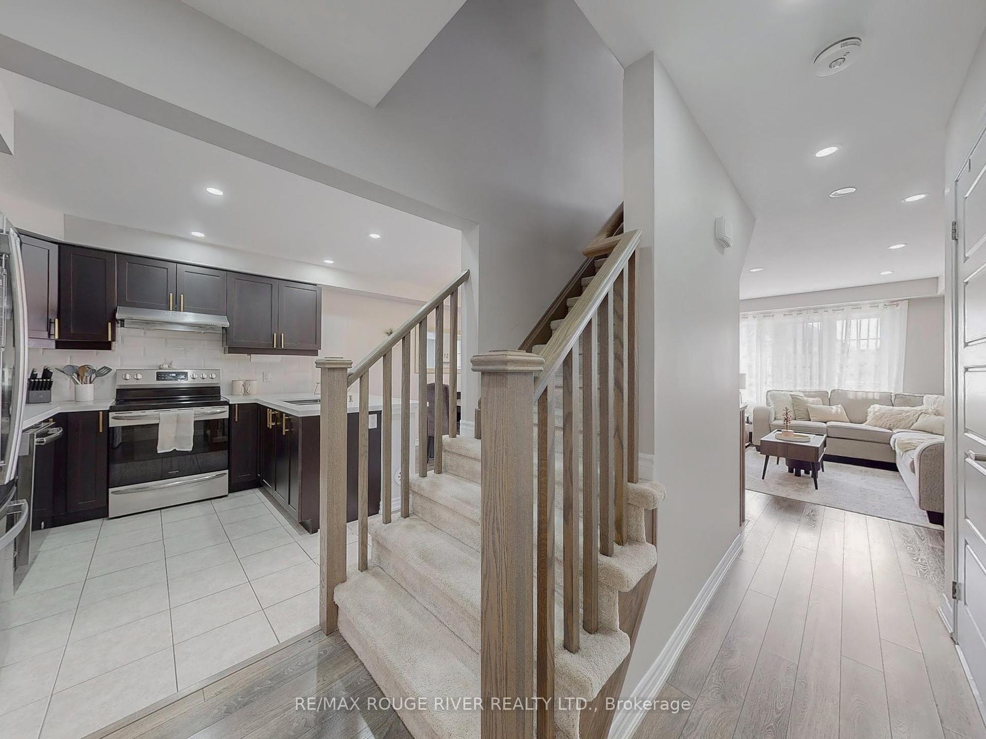 Welcome to this immaculate three storey freehold townhome in Milton’s Hawthorne south enclave. All brick exterior with coveted three parking. This bright, beautifully maintained home offers 3 bedrooms, 3 bathrooms, and a versatile main floor den with direct garage access. Laminate floors throughout. The second level features an open layout with ceiling pot lights, dining area walkout to spacious balcony and an elegant kitchen with stainless steel appliances, longer upgraded cabinets and a breakfast bar. Upstairs you will find three spacious bedrooms and two full baths. No sidewalk at front. Close to top schools, parks, trails, kelso conservation and many other amenities.
