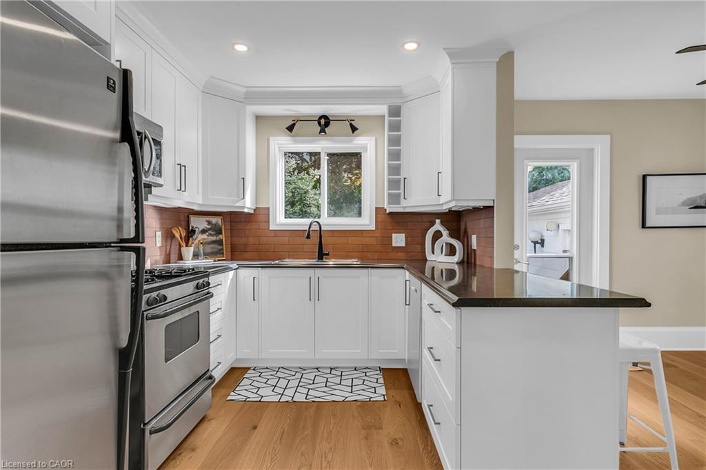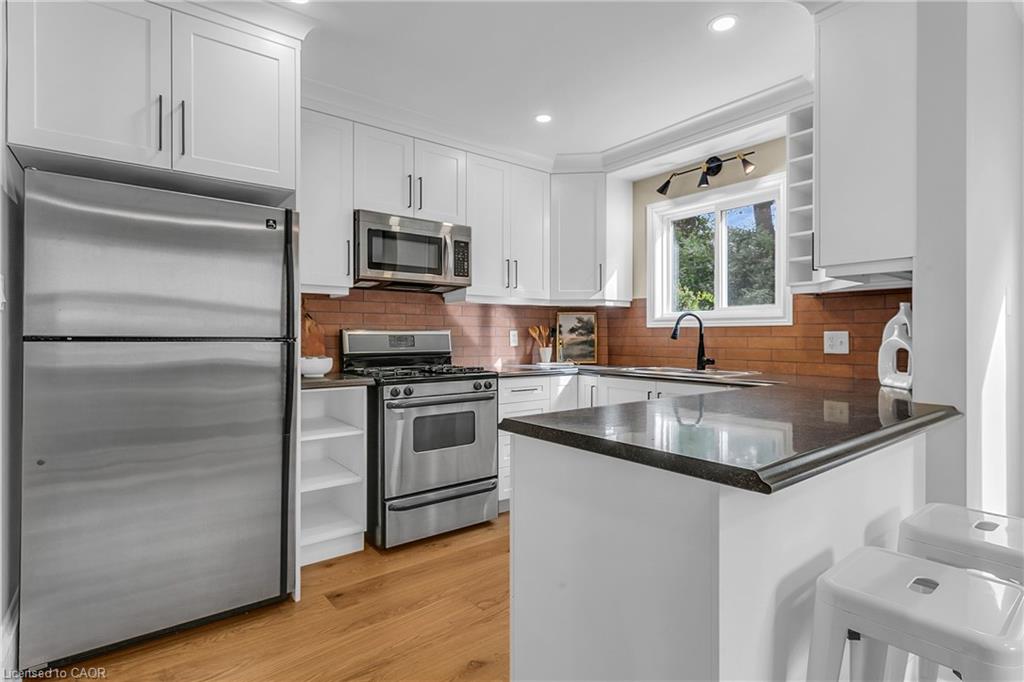 main and upper floors, cozy carpet in the basement and sleek new tile in the bathroom. The kitchen? It’s brand new—backsplash, dishwasher, everything—completed in 2025 and ready for your next dinner party. Brightened by two new windows in 2024, the home feels fresh, inviting and warm throughout. A solid concrete retaining wall adds both privacy and peace of mind, and it’s been standing strong since 2013. Now, let’s talk location. You’re steps from Uptown Waterloo, Vincenzo’s, and the Iron Horse Trail. Cycle to either Victoria Park or Waterloo Park in just 10 minutes, or stroll to either university in under half an hour. Need to catch a bus? The stop is just a block away. Most importantly Belmont Village is just down the street, with access to trendy patios, high end