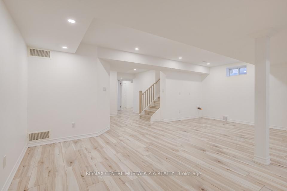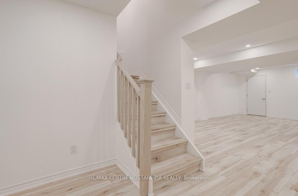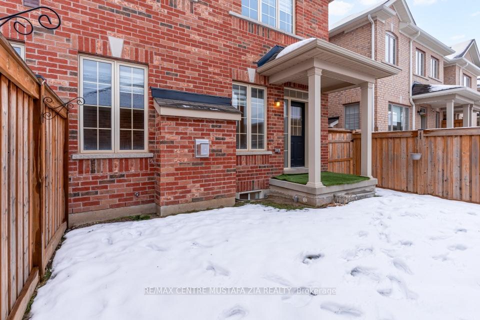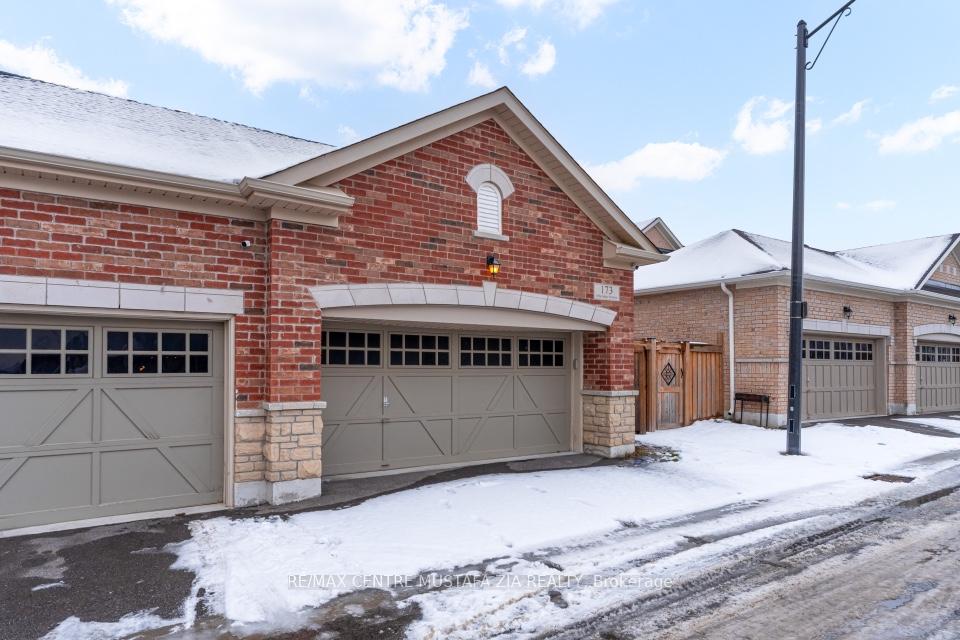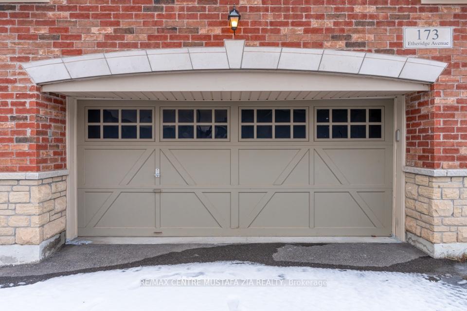 Welcome to 173 Etheridge Avenue, a refined brick-and-stone townhome offering exceptional space, comfort, and versatility in a desirable Milton community. A stately double-door entrance welcomes you home, complemented by ample visitor/street parking directly outside or added convenience.Inside, a bright foyer with 9-foot ceilings leads to an open-concept main floor where the living and dining areas are accented by elegant wainscoting and flow seamlessly into a spacious family room with a cozy gas fireplace. The kitchen is thoughtfully designed with quartz countertops, a stylish backsplash, an undermount sink, gas stove/oven combo with exhaust hood, and a generous breakfast area-ideal for both everyday living and entertaining. Laminate flooring enhances the living spaces, while ceramic tile finishes the kitchen, breakfast area, and powder room. A private backyard leading to the detached double-car garage completes the main level.The second floor offers three well-appointed bedrooms with laminate flooring, windows, closets, and blinds throughout. A convenient laundry room with tub and window adds everyday ease, while the primary suite features a walk-in closet and a bright ensuite with a large walk-in shower, double sinks, and a window. A well-designed main bathroom serves the additional bedrooms.The finished basement provides impressive additional living space with an open-concept recreation area, pot lighting, laminate flooring, and windows. A bedroom and full bathroom create flexibility for guests or extended family, while ample storage, two cold rooms, and existing rough-ins for a future kitchenette add long-term value.