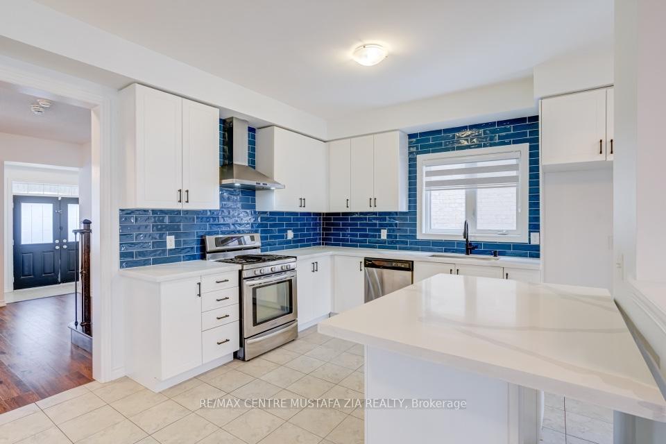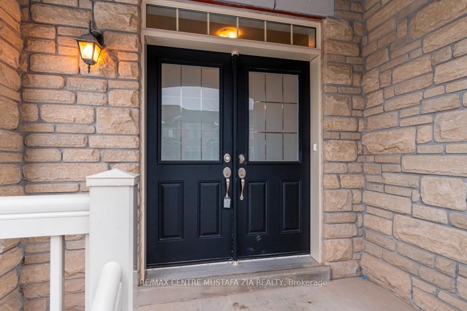 Welcome to 173 Etheridge Avenue, a refined brick-and-stone townhome offering exceptional space, comfort, and versatility in a desirable Milton community. A stately double-door entrance welcomes you home, complemented by ample visitor/street parking directly outside or added convenience.Inside, a bright foyer with 9-foot ceilings leads to an open-concept main floor where the living and dining areas are accented by elegant wainscoting and flow seamlessly into a spacious family room with a cozy gas fireplace. The kitchen is thoughtfully designed with quartz countertops, a stylish backsplash, an undermount sink, gas stove/oven combo with exhaust hood, and a generous breakfast area-ideal for both everyday living and entertaining. Laminate flooring enhances the living spaces, while ceramic tile finishes the kitchen, breakfast area, and powder room. A private backyard leading to the detached double-car garage completes the main level.The second floor offers three well-appointed bedrooms with laminate flooring, windows, closets, and blinds throughout. A convenient laundry room with tub and window adds everyday ease, while the primary suite features a walk-in closet and a bright ensuite with a large walk-in shower, double sinks, and a window. A well-designed main bathroom serves the additional bedrooms.The finished basement provides impressive additional living space with an open-concept recreation area, pot lighting, laminate flooring, and windows. A bedroom and full bathroom create flexibility for guests or extended family, while ample storage, two cold rooms, and existing rough-ins for a future kitchenette add long-term value.