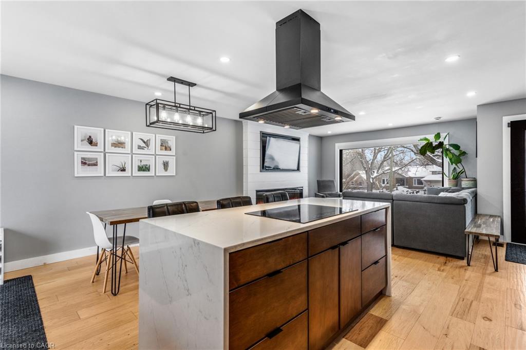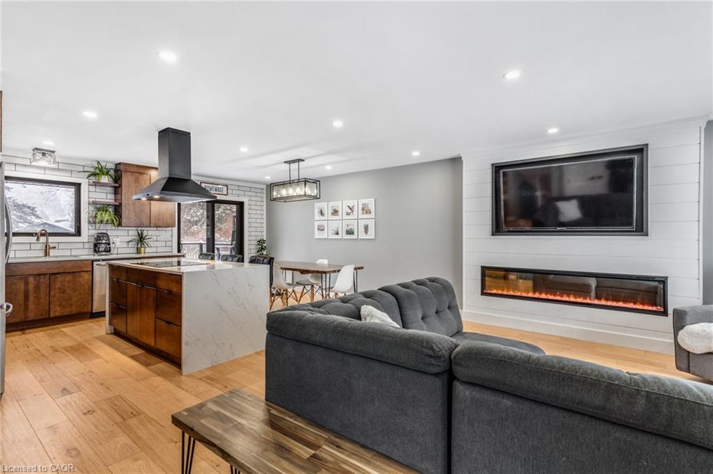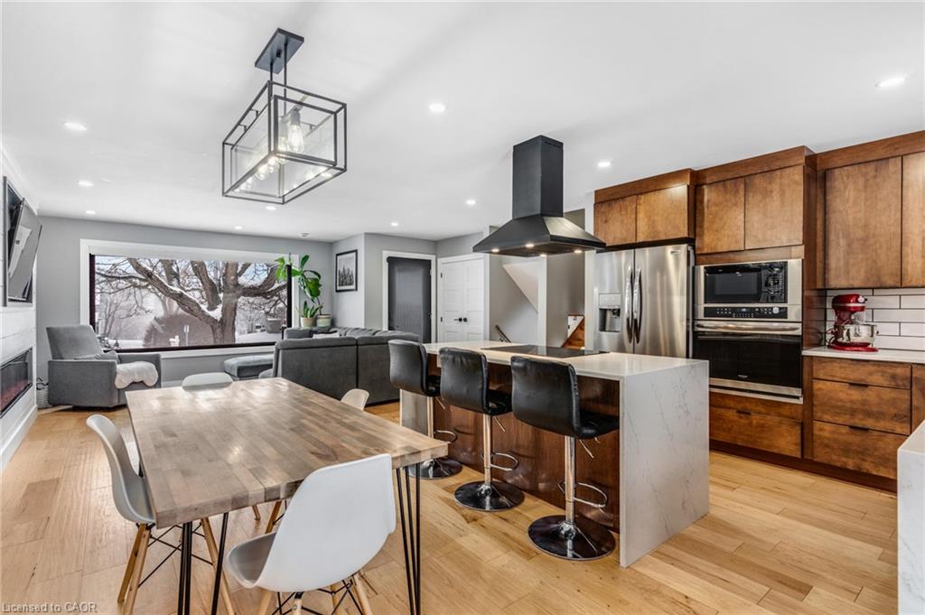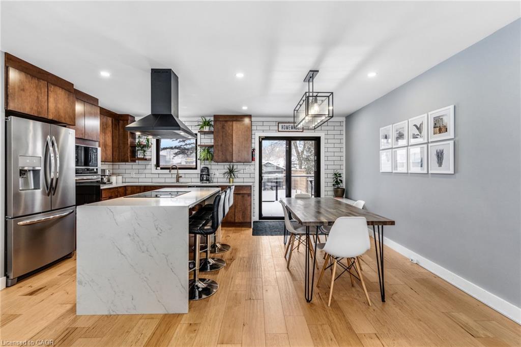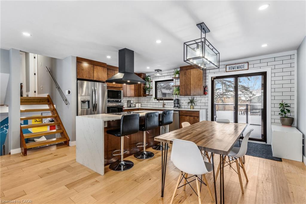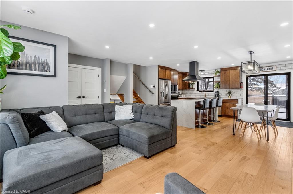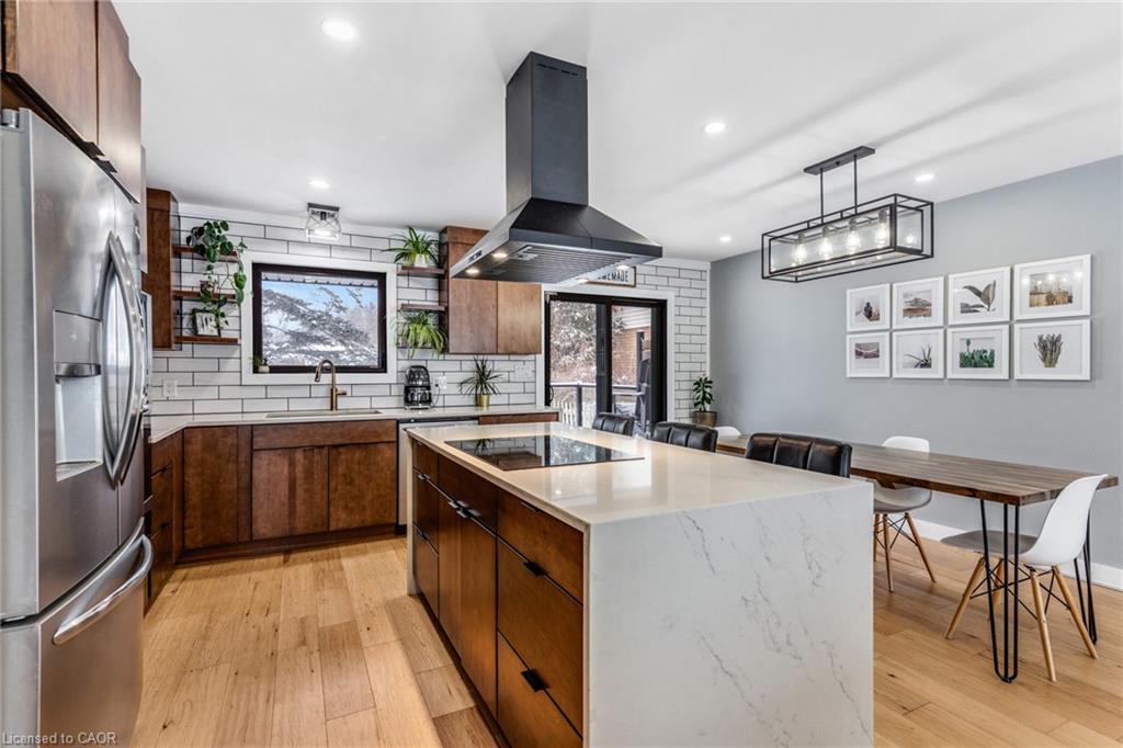 FULLY UPDATED PRESTON HOME STEPS FROM THE GRAND RIVER. 1735 Queenston Road, a beautifully reimagined detached side split in the heart of Preston, just steps from the scenic Grand River and nearby trails. Thoughtfully renovated from top to bottom, this home blends modern design with warmth, function, and an inviting sense of space, perfect for families, entertainers, and those who appreciate quality finishes throughout. The main level features a bright, open-concept layout anchored by a stunning chef-inspired kitchen. With stainless steel appliances, a striking oversized island with cooktop, sleek cabinetry, and a stylish tile backsplash, this space is as practical as it is beautiful. Flowing seamlessly into the dining and living areas, it’s ideal for everyday living and hosting alike. A walkout from the kitchen leads to the backyard deck—perfect for morning coffee, summer BBQs, or quiet evenings outdoors. Upstairs, you’ll find 3 comfortable bedrooms and a beautifully finished 5-pc family bathroom with dual sinks. The lower level adds exceptional versatility with a cozy family room featuring a walkout to the yard, a modern 3-pc bathroom, and flexible space ideal for movie nights, a home office, or play area. The basement level continues to impress with a spacious rec room, generous laundry and mudroom area, and a charming wine cellar—an unexpected and thoughtful touch. Outside, the property truly shines. The large, private yard offers endless potential for outdoor enjoyment, complete with a patio for dining, a deck for relaxing, and a handy garden shed for storage. Nature lovers will appreciate being just a short walk to Grand River trails, while commuters will love the quick access to Highway 401 and nearby amenities.(roof 2020, furnace & AC 2016).