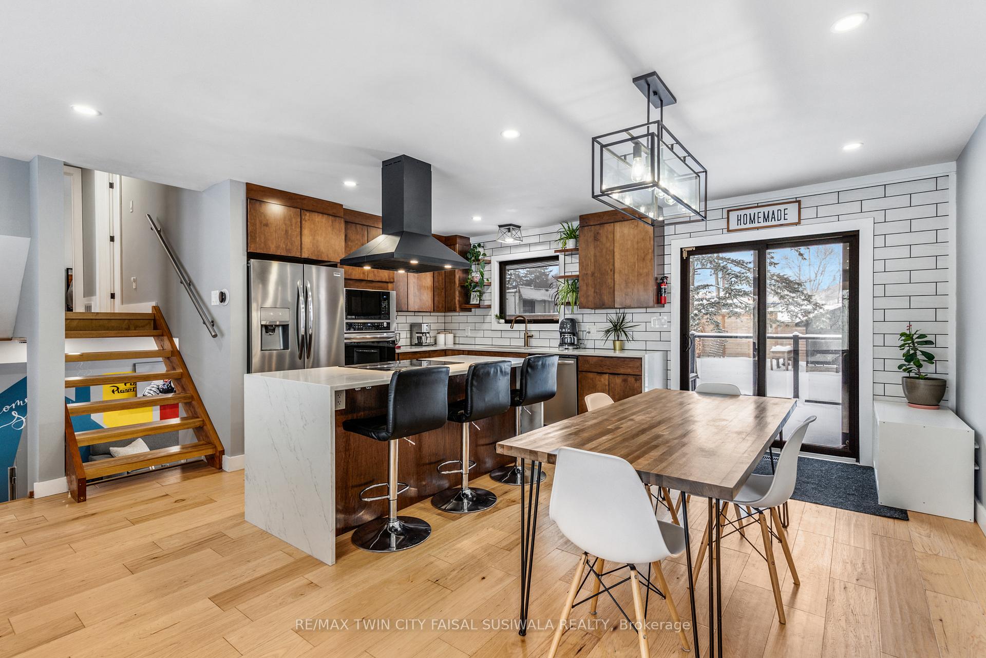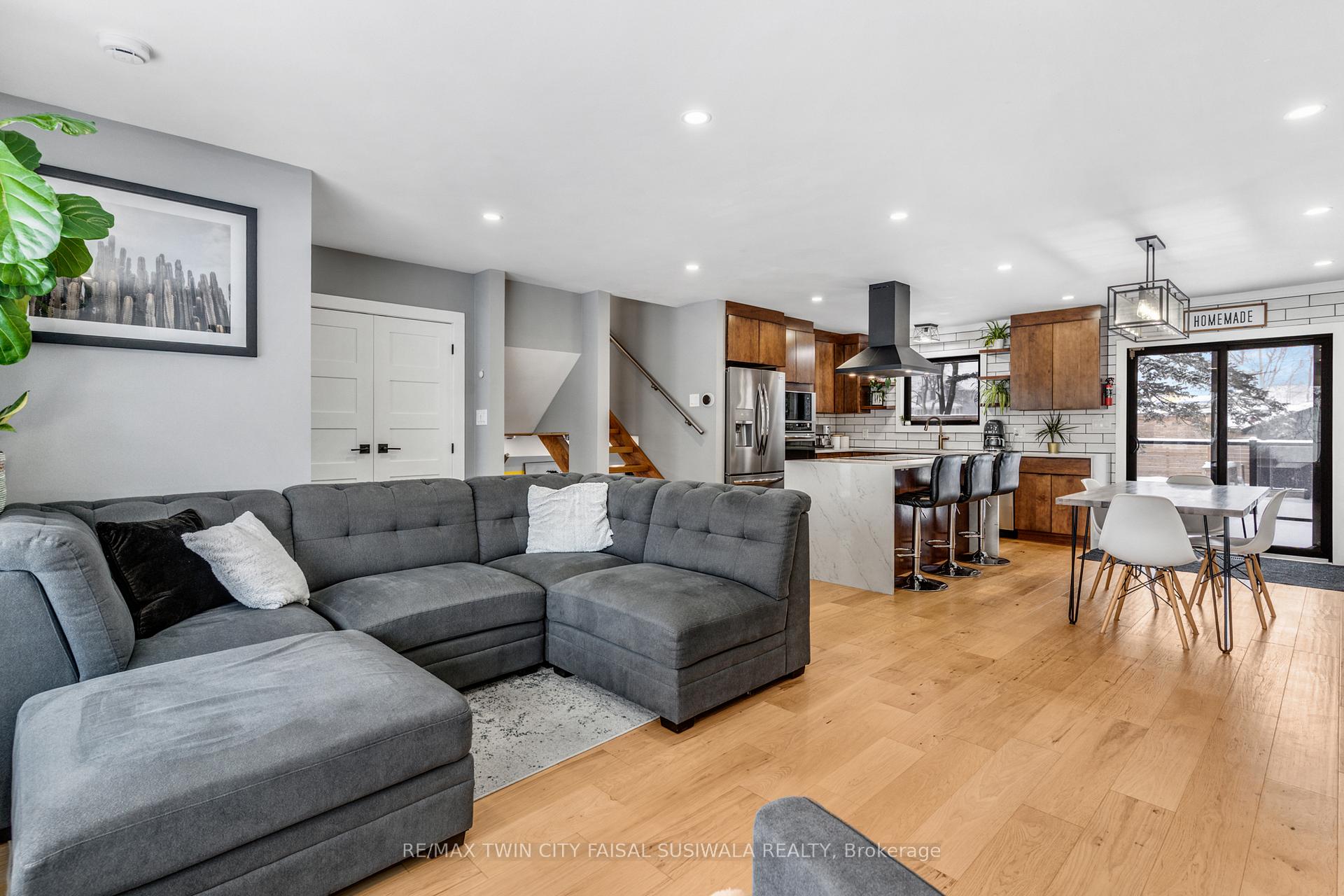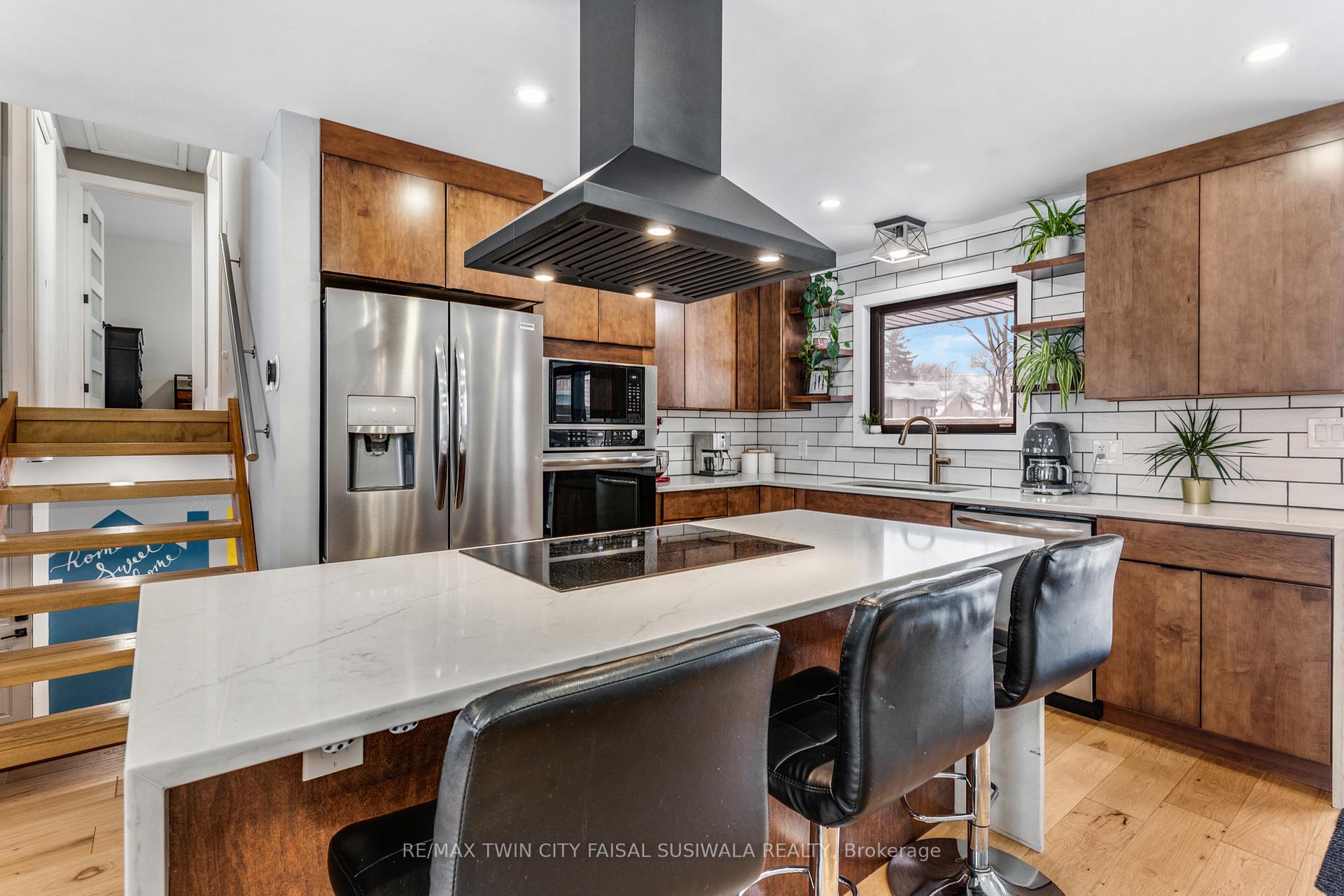 FULLY UPDATED PRESTON HOME STEPS FROM THE GRAND RIVER. 1735 Queenston Road, a beautifully reimagined detached side split in the heart of Preston, just steps from the scenic Grand River and nearby trails. Thoughtfully renovated from top to bottom, this home blends modern design with warmth, function, and an inviting sense of space, perfect for families, entertainers, and those who appreciate quality finishes throughout. The main level features a bright, open-concept layout anchored by a stunning chef-inspired kitchen. With stainless steel appliances, a striking oversized island with cooktop, sleek cabinetry, and a stylish tile backsplash, this space is as practical as it is beautiful. Flowing seamlessly into the dining and living areas, it’s ideal for everyday living and hosting alike. A walkout from the kitchen leads to the backyard deck-perfect for morning coffee, summer BBQs, or quiet evenings outdoors. Upstairs, you’ll find 3 comfortable bedrooms and a beautifully finished 5-pc family bathroom with dual sinks. The lower level adds exceptional versatility with a cozy family room featuring a walkout to the yard, a modern 3-pc bathroom, and flexible space ideal for movie nights, a home office, or play area. The basement level continues to impress with a spacious rec room, generous laundry and mudroom area, and a charming wine cellar-an unexpected and thoughtful touch. Outside, the property truly shines. The large, private yard offers endless potential for outdoor enjoyment, complete with a patio for dining, a deck for relaxing, and a handy garden shed for storage. Nature lovers will appreciate being just a short walk to Grand River trails, while commuters will love the quick access to Highway 401 and nearby amenities.(roof 2020, furnace & AC 2016)
