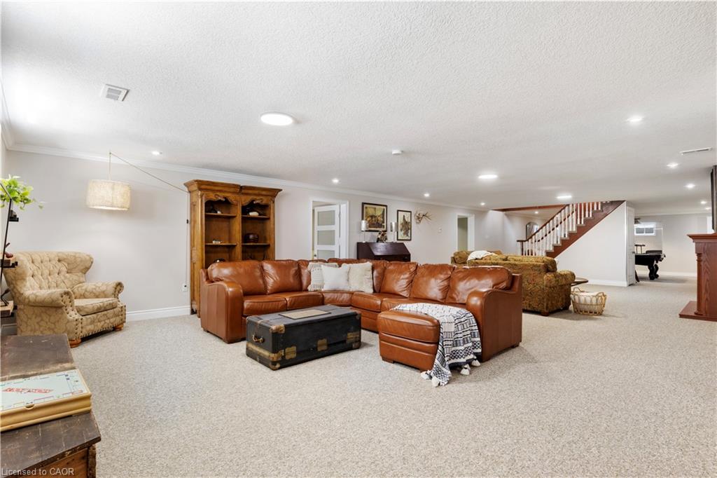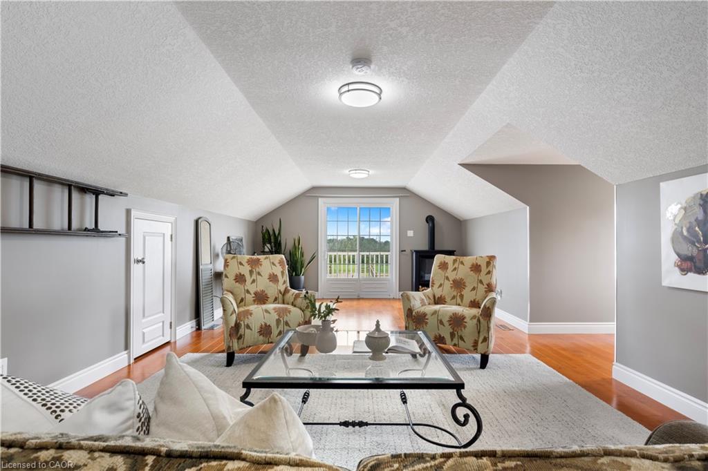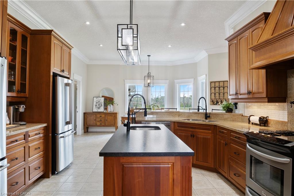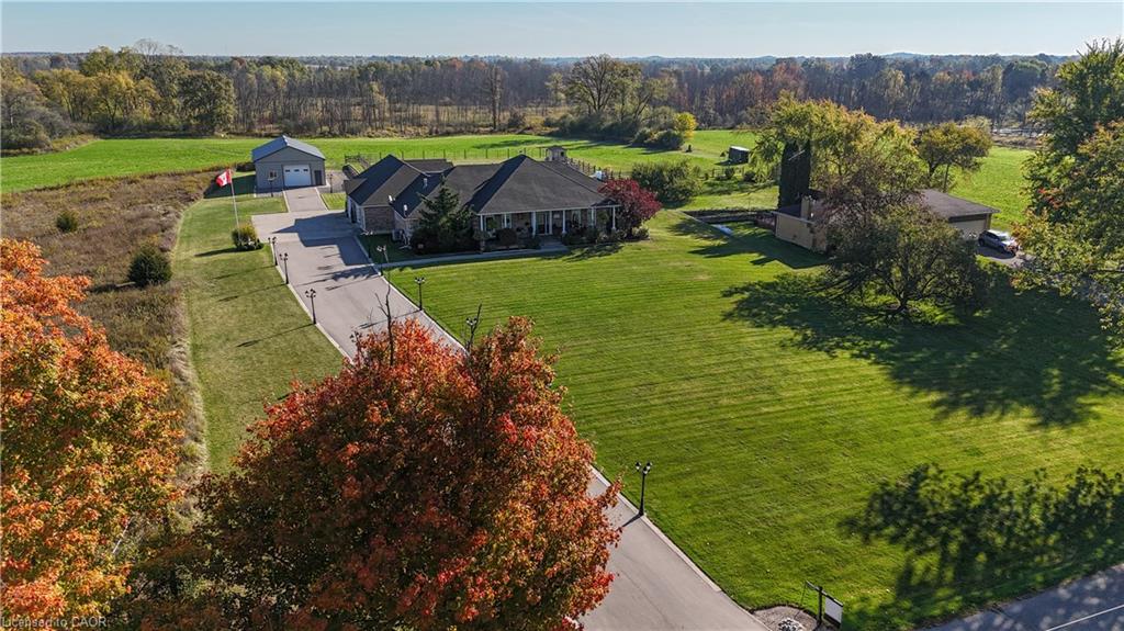 One of the best-priced luxury homes per square foot in the region, this custom-built solid brick bungalow loft offers nearly 7,000 sq. ft. of finished living space on a serene 1.52-acre estate surrounded by protected green space and natural privacy in Cambridge’s prestigious North Dumfries Township. Designed for both grand entertaining and everyday living, the home features a rare bungalow layout with oversized rooms, two distinct wings, and a thoughtful floor plan. Meticulously maintained by the original owners, this turnkey home has been gently lived in by a small family and reflects pride of ownership throughout. Ideally located in east North Dumfries, this setting offers convenient access toward Hamilton, Guelph, and Toronto, making it distinctly different from Ayr and especially appealing for those seeking proximity to major destinations while enjoying a peaceful estate lifestyle.