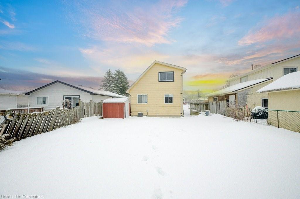 Attention investors and first-time home buyers! Here’s your chance to enter the KW market with this affordable two-story detached home nestled on a tranquil crescent near McLennan Park. The inviting main floor features a spacious living area, a bright eat-in kitchen, and a versatile bedroom that can double as a home office. Enjoy the convenience of front and side entrances, complemented by newer windows that enhance the home’s appeal. Ascend to the second floor, where you’ll discover two well-sized bedrooms with ample closet space and a four-piece main bathroom. The partially finished basement offers potential for a recreation room by adding flooring, a cold room for storage, and a designated utility/laundry area. Step outside to a generously-sized, partially fenced backyard complete with a metal shed and asphalt driveway that can accommodate two vehicles. This property is ideally located near shopping, restaurants, and public transit, providing easy access to the expressway. This home is a canvas ready for your personal touch!