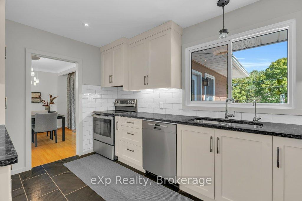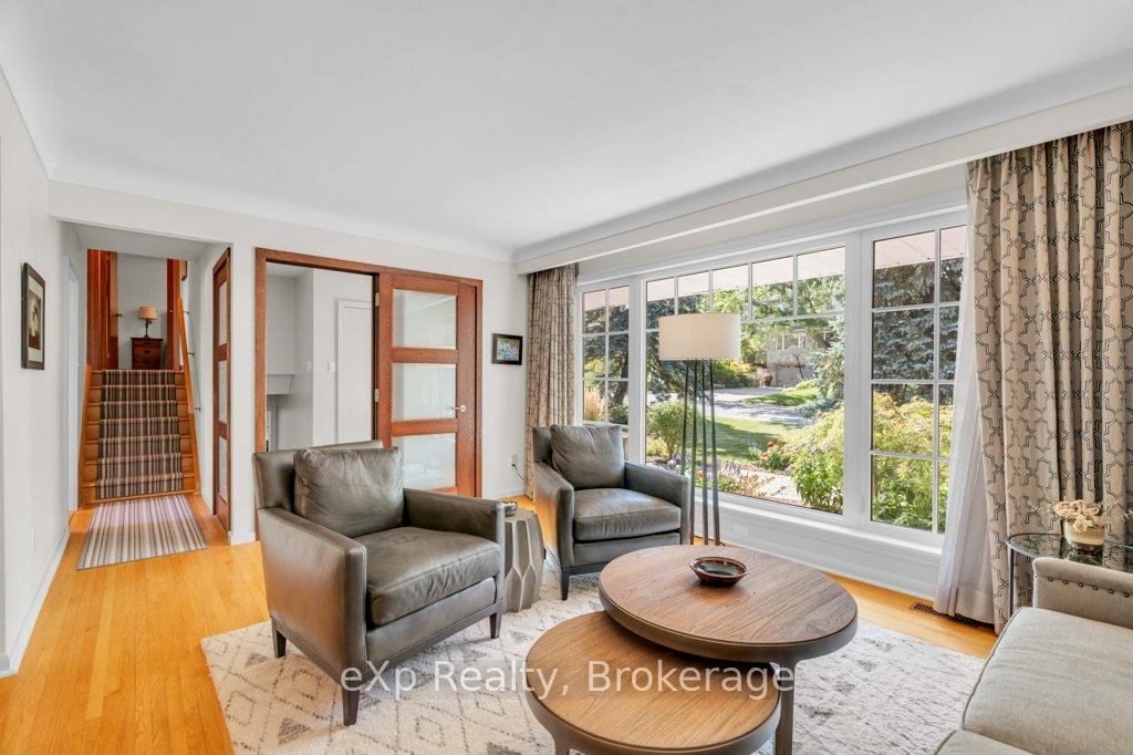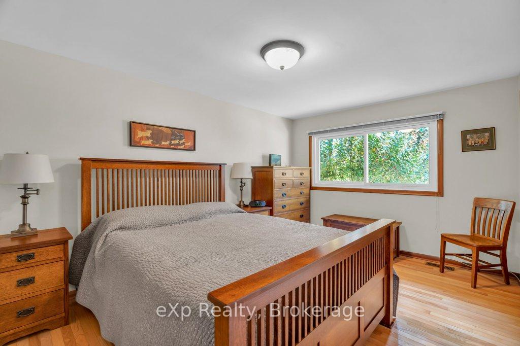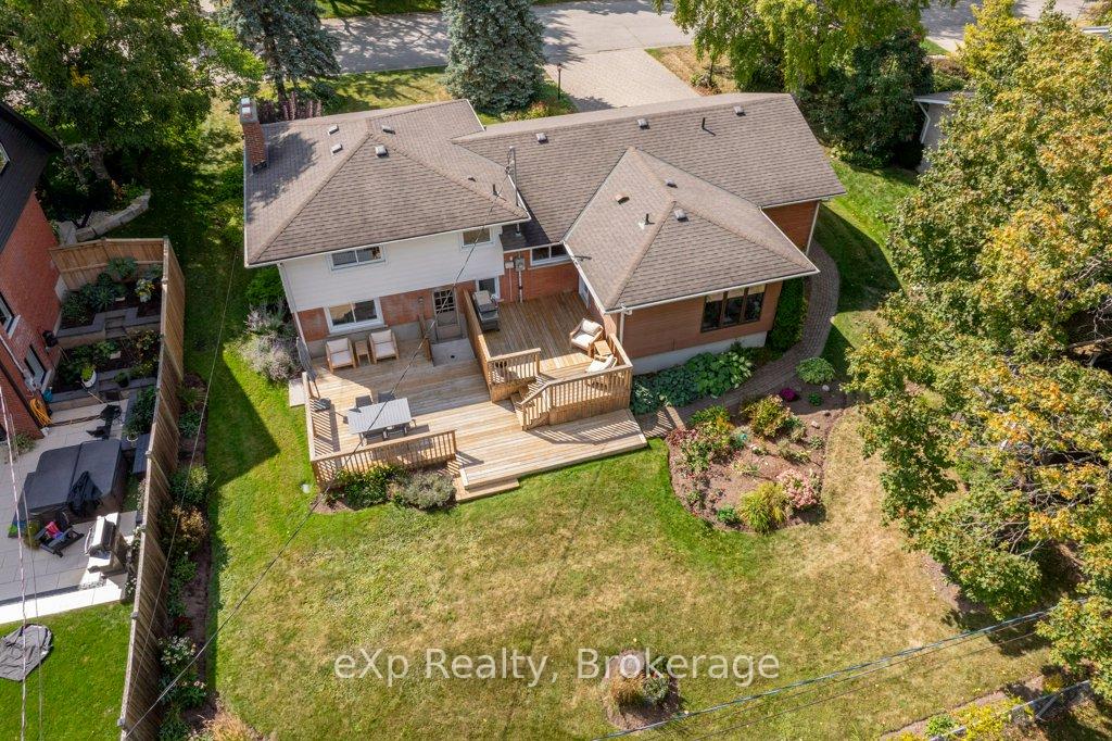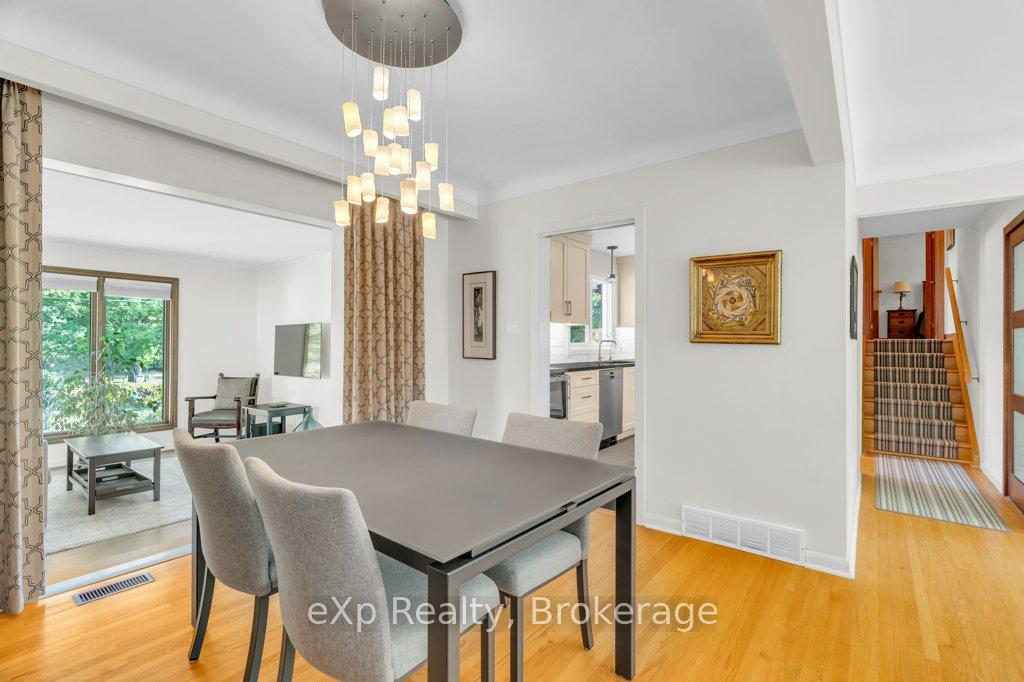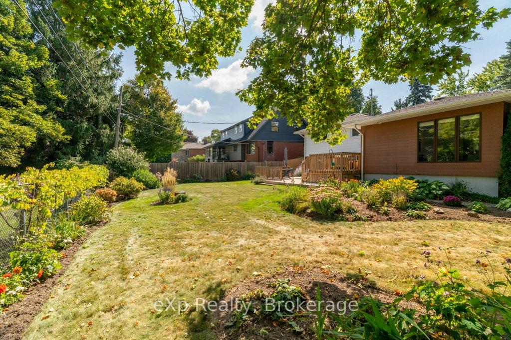 Welcome to this stunning 4-level side split, meticulously maintained by its loving owners and tucked away in one of Guelphs most coveted neighbourhoods. Rarely do homes in this area come to market. Surrounded by mature trees and perennial gardens, this property offers a serene retreat while being in the heart of the city on a quiet street with no sidewalks or streetlights. Inside, you’ll find a beautifully renovated kitchen (2015) with custom cabinetry, Cambria quartz countertops, and stunning quartzite floor that opens to an inviting living and dining space that flow seamlessly for everyday living and entertaining. The home features 3 bedrooms and 4 bathrooms, along with a versatile living room off the back that can easily serve as a guest bedroom or creative space. The basement was thoughtfully renovated in 2020, creating a dedicated yoga and wellness retreat with heated floors, a custom live-edge ash shelf, a sauna, and a full 3-piece bath perfect for fitness and relaxation enthusiasts. From the lower level, step outside to a two-tier deck (2018) overlooking the private backyard that backs directly onto a park, offering a true extension of your living space. A paved stone driveway adds to the curb appeal and functionality. All appliances and a gas-run barbecue are included, making this an exceptional move-in-ready opportunity. This is a rare chance to own a distinctive home that blends nature, lifestyle, and modern comfort.