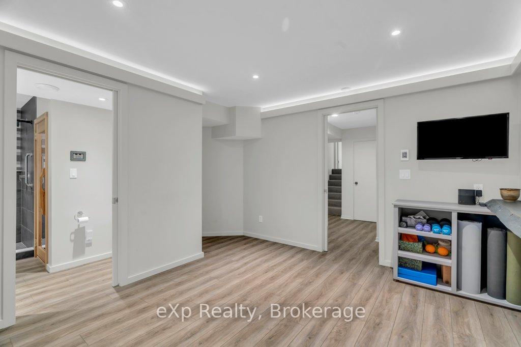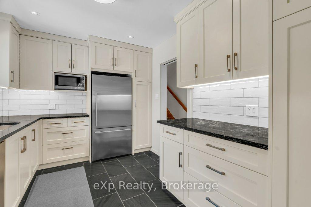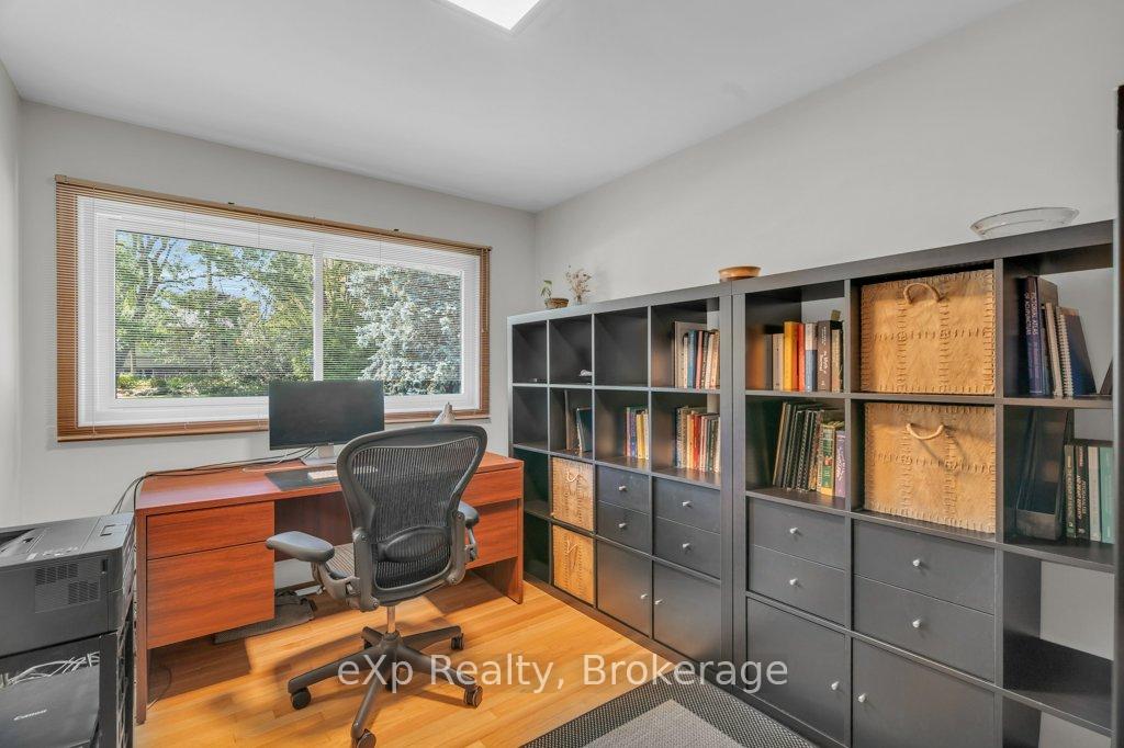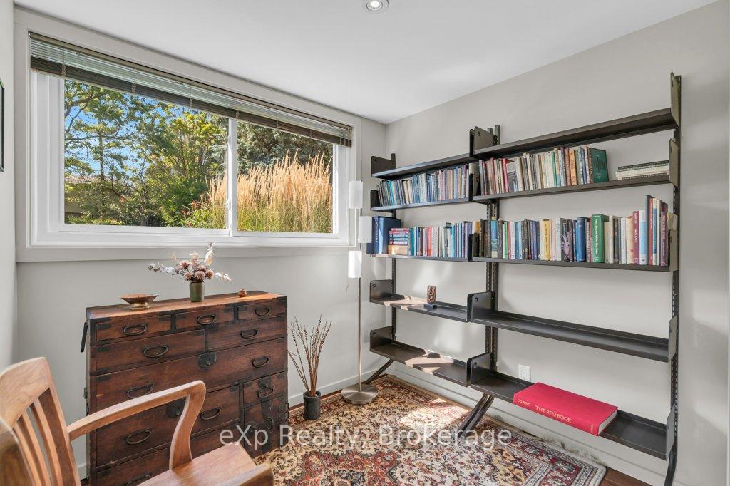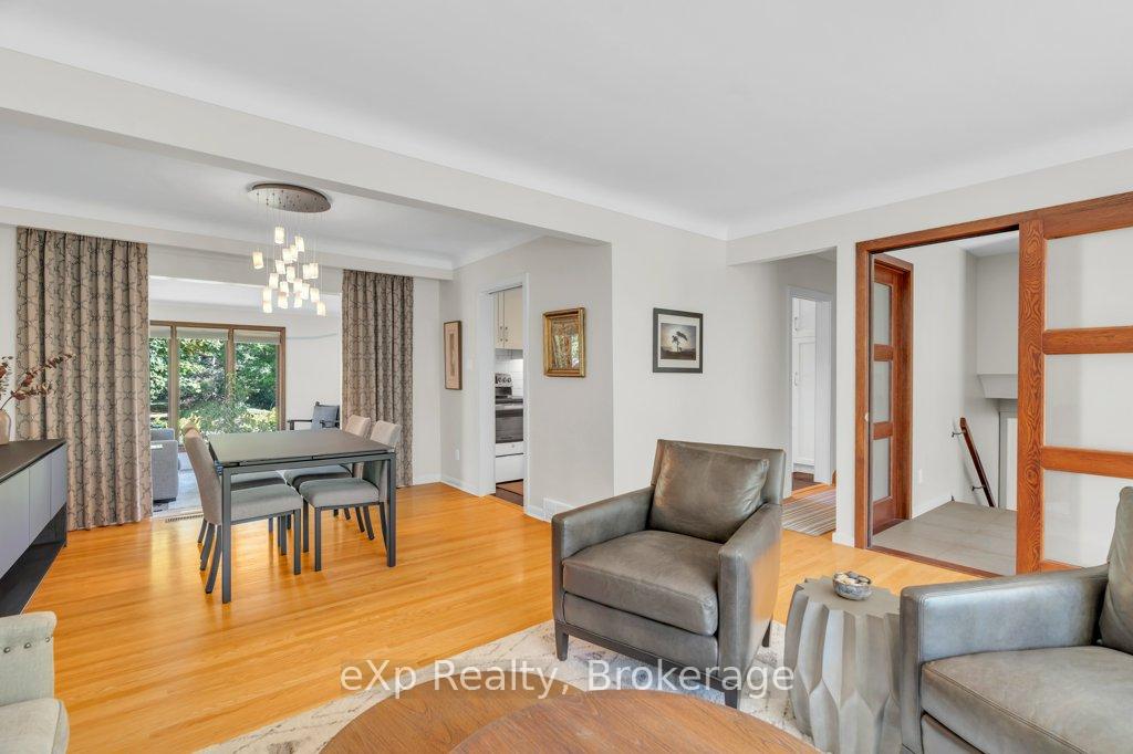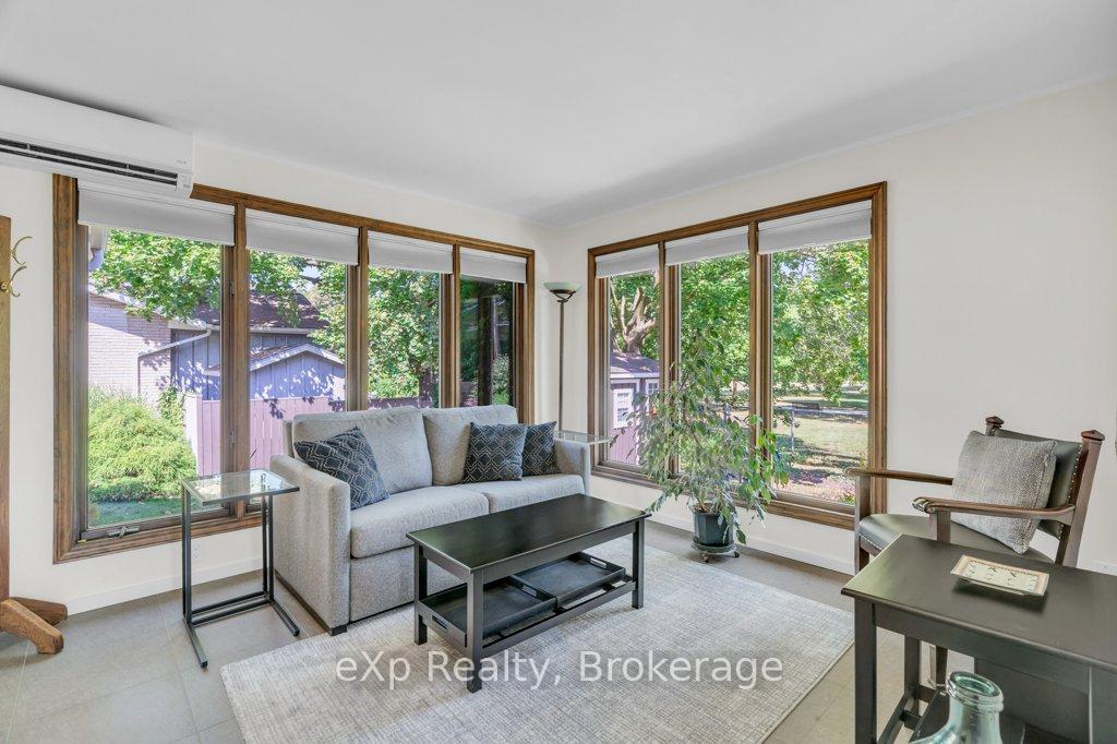 Welcome to this stunning 4-level side split, meticulously maintained by its loving owners and tucked away in one of Guelphs most coveted neighbourhoods. Rarely do homes in this area come to market. Surrounded by mature trees and perennial gardens, this property offers a serene retreat while being in the heart of the city on a quiet street with no sidewalks or streetlights. Inside, you’ll find a beautifully renovated kitchen (2015) with custom cabinetry, Cambria quartz countertops, and stunning quartzite floor that opens to an inviting living and dining space that flow seamlessly for everyday living and entertaining. The home features 3 bedrooms and 4 bathrooms, along with a versatile living room off the back that can easily serve as a guest bedroom or creative space. The basement was thoughtfully renovated in 2020, creating a dedicated yoga and wellness retreat with heated floors, a custom live-edge ash shelf, a sauna, and a full 3-piece bath perfect for fitness and relaxation enthusiasts. From the lower level, step outside to a two-tier deck (2018) overlooking the private backyard that backs directly onto a park, offering a true extension of your living space. A paved stone driveway adds to the curb appeal and functionality. All appliances and a gas-run barbecue are included, making this an exceptional move-in-ready opportunity. This is a rare chance to own a distinctive home that blends nature, lifestyle, and modern comfort.