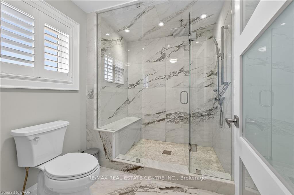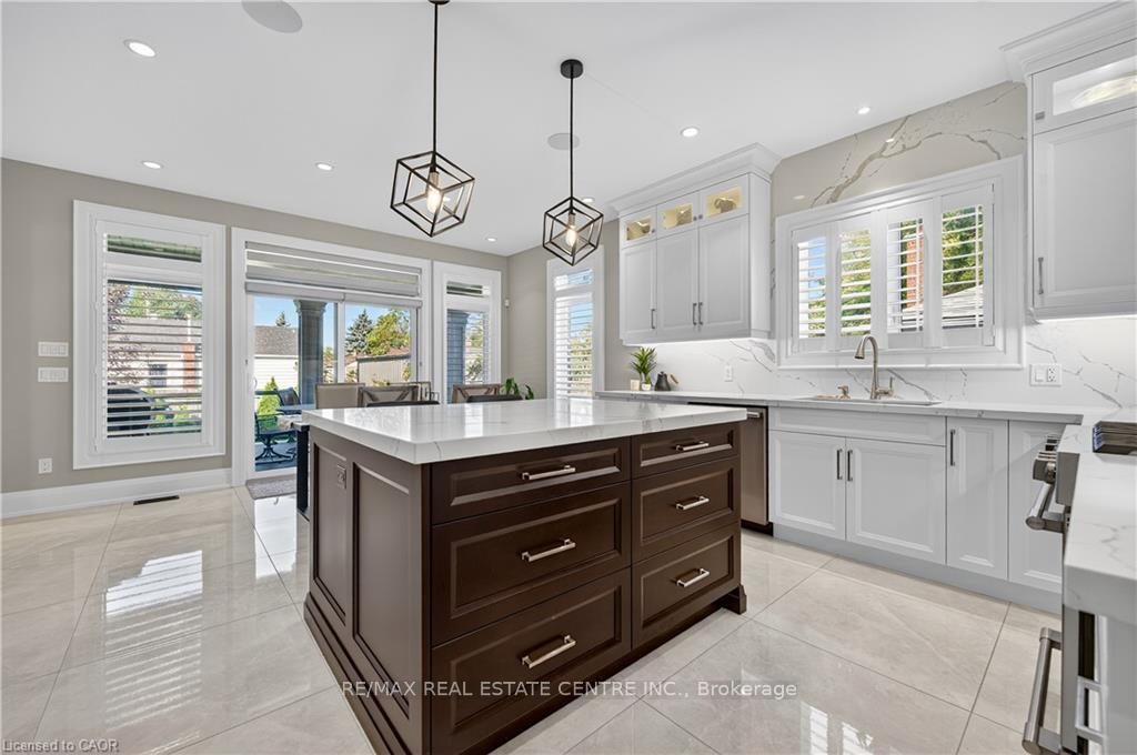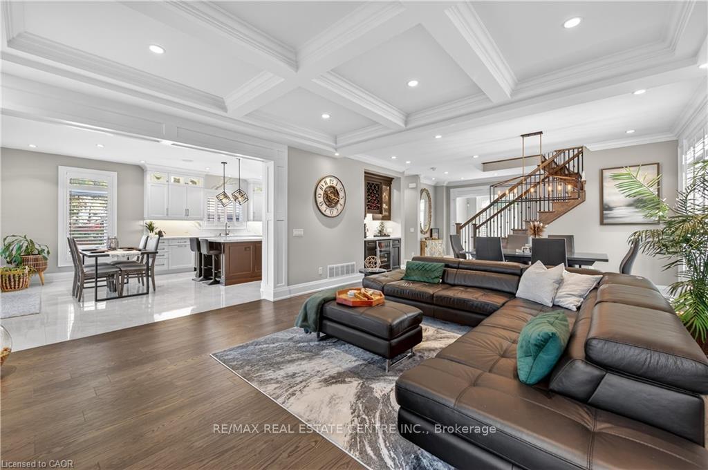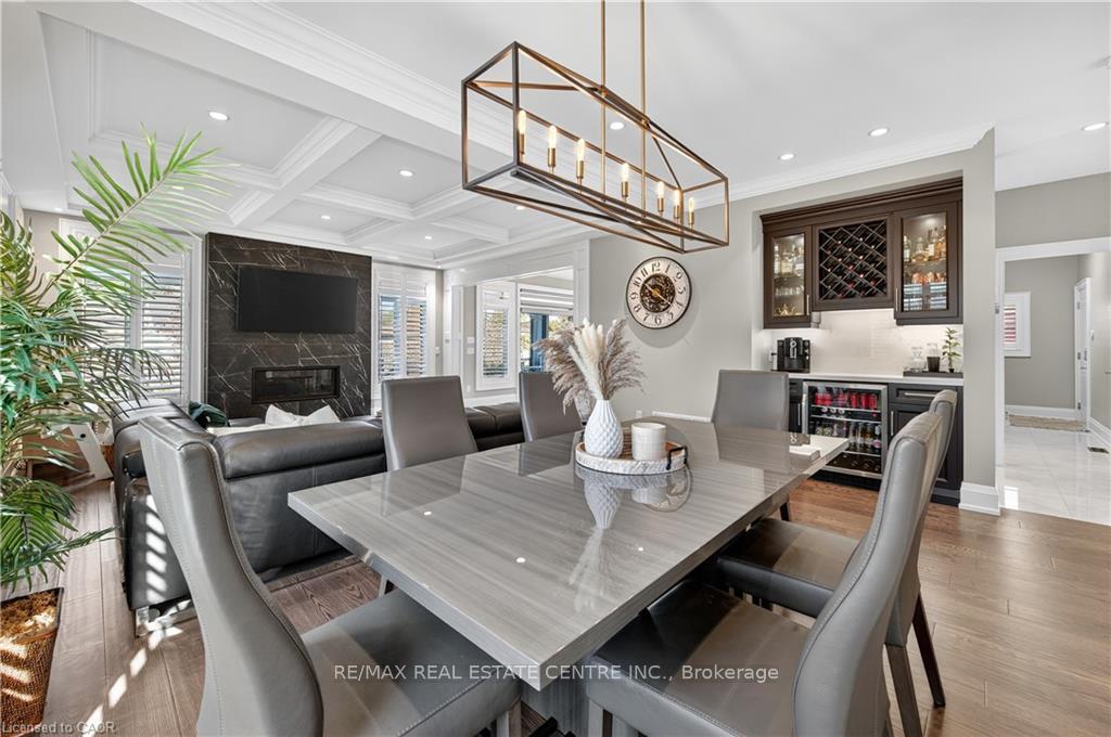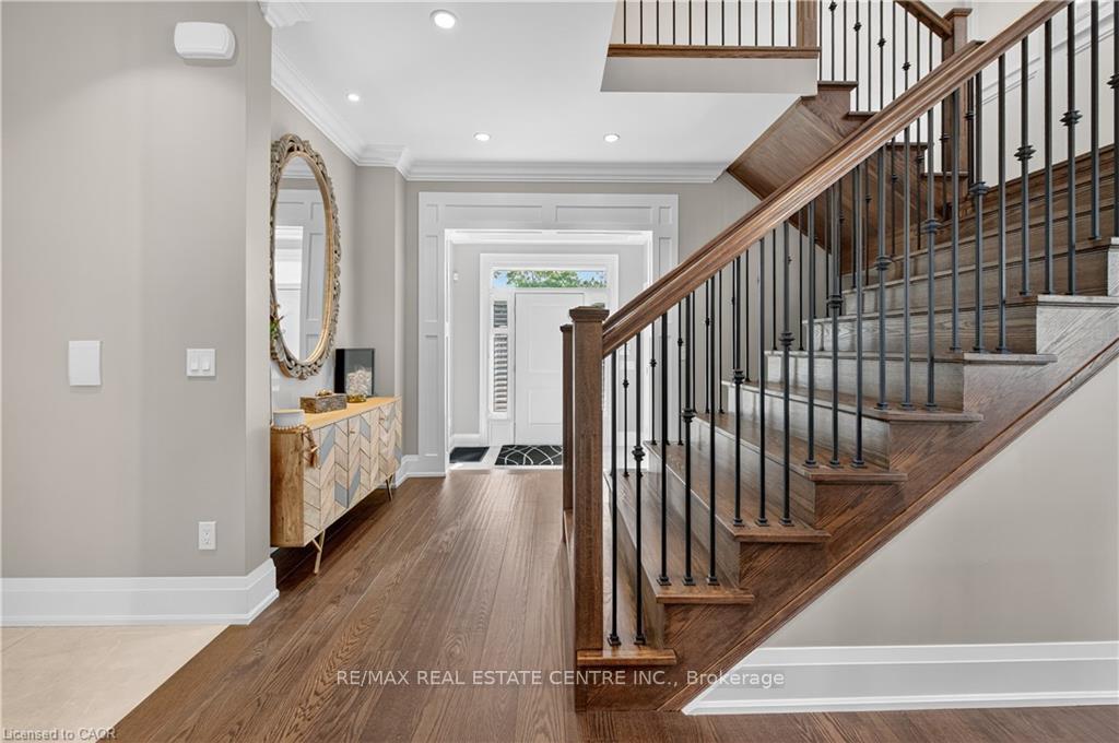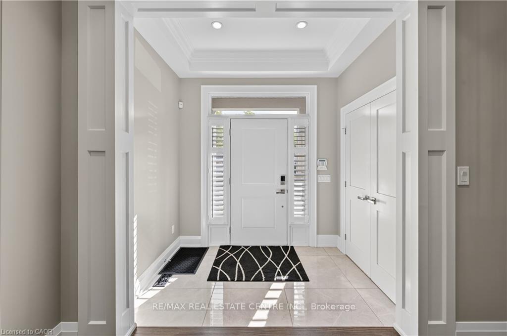 Prepare to be impressed by this meticulously crafted, fully custom 3-bedroom, 2.5-bathroom residence offering 2,531 sq ft of luxurious living on a generous 50×108 ft lot. From the moment you arrive, the home’s full brick and stone façade, arched windows, and covered porch speak to the quality and pride of ownership throughout. Inside, every detail is elevated – engineered hardwood and porcelain tile span the entire home. Solid wood interior doors, coffered ceilings, pot lights (including on all 4 sides of the home’s exterior), and crown moulding define each space with sophistication. The kitchen is an entertainer’s dream, complete with custom cabinetry, quartz countertops, high-end appliances, in-ceiling speakers, and a spacious island. It opens effortlessly to a dining area and large living room anchored by a floor-to-ceiling stone gas fireplace and built-in wet bar. The primary suite is a sanctuary, offering a large walk-in closet with custom cabinetry and a dedicated makeup station. The ensuite bath includes a double vanity, quartz countertops, and a private water closet. Upstairs bathrooms also feature quartz surfaces and private toilet rooms for added convenience. A wide staircase enhances flow, and thoughtful extras include central vac with in-wall hose systems on every level, closet lighting throughout, and California shutters. Step outside to a covered back porch and fully fenced backyard where freshly planted cedars promise enhanced privacy in the seasons to come. The unfinished basement – with its own private side entrance and insulated subfloor – offers endless possibilities. With a double-car garage and four-car driveway, this property checks every box for luxury, comfort, and long-term livability.
