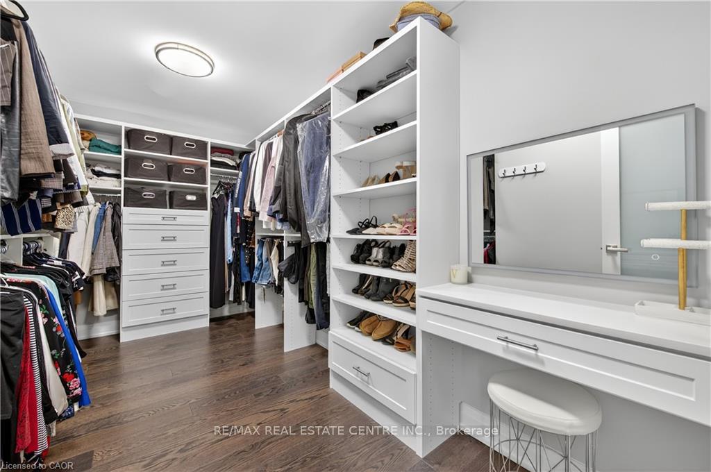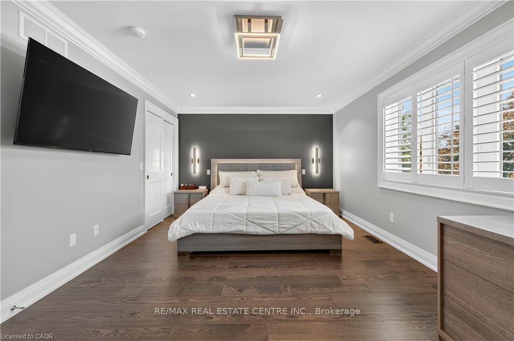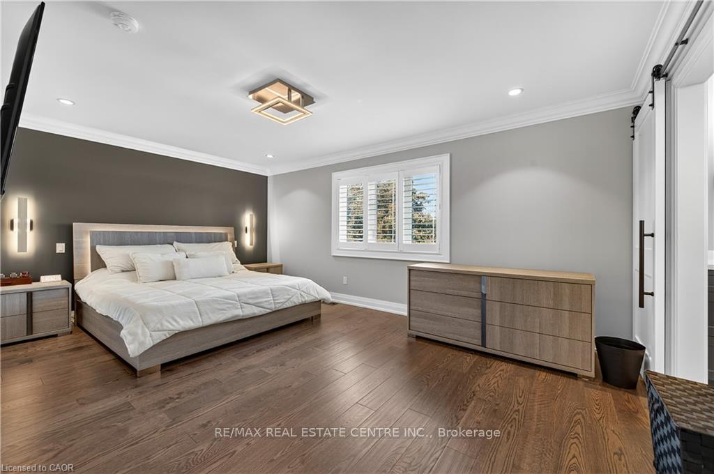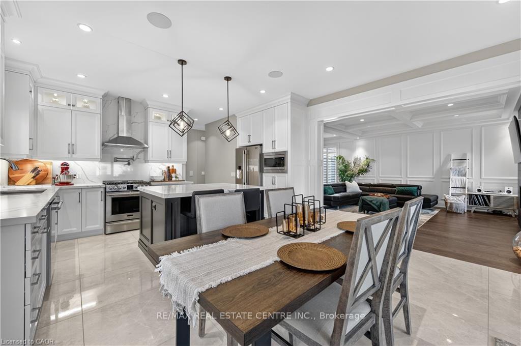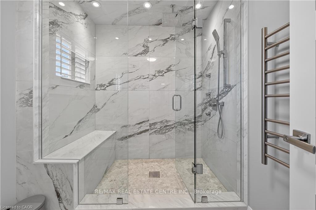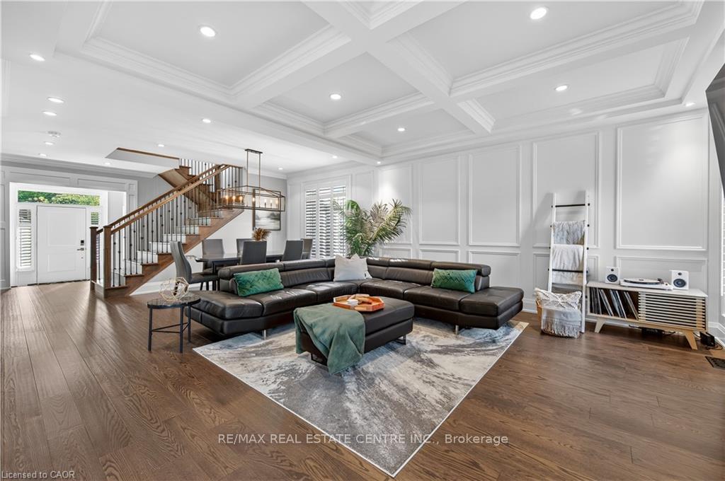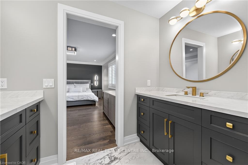 Prepare to be impressed by this meticulously crafted, fully custom 3-bedroom, 2.5-bathroom residence offering 2,531 sq ft of luxurious living on a generous 50×108 ft lot. From the moment you arrive, the home’s full brick and stone façade, arched windows, and covered porch speak to the quality and pride of ownership throughout. Inside, every detail is elevated – engineered hardwood and porcelain tile span the entire home. Solid wood interior doors, coffered ceilings, pot lights (including on all 4 sides of the home’s exterior), and crown moulding define each space with sophistication. The kitchen is an entertainer’s dream, complete with custom cabinetry, quartz countertops, high-end appliances, in-ceiling speakers, and a spacious island. It opens effortlessly to a dining area and large living room anchored by a floor-to-ceiling stone gas fireplace and built-in wet bar. The primary suite is a sanctuary, offering a large walk-in closet with custom cabinetry and a dedicated makeup station. The ensuite bath includes a double vanity, quartz countertops, and a private water closet. Upstairs bathrooms also feature quartz surfaces and private toilet rooms for added convenience. A wide staircase enhances flow, and thoughtful extras include central vac with in-wall hose systems on every level, closet lighting throughout, and California shutters. Step outside to a covered back porch and fully fenced backyard where freshly planted cedars promise enhanced privacy in the seasons to come. The unfinished basement – with its own private side entrance and insulated subfloor – offers endless possibilities. With a double-car garage and four-car driveway, this property checks every box for luxury, comfort, and long-term livability.