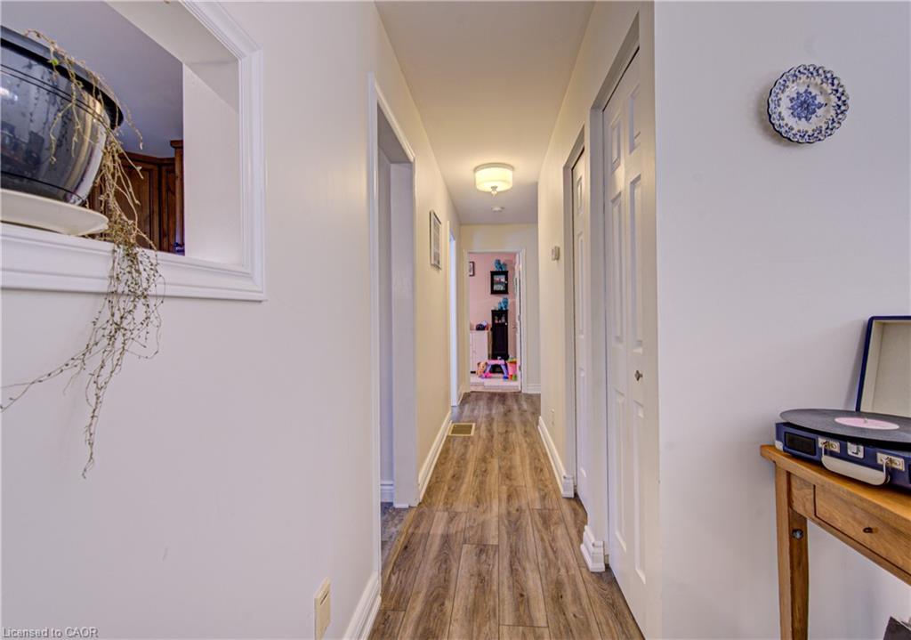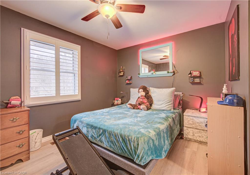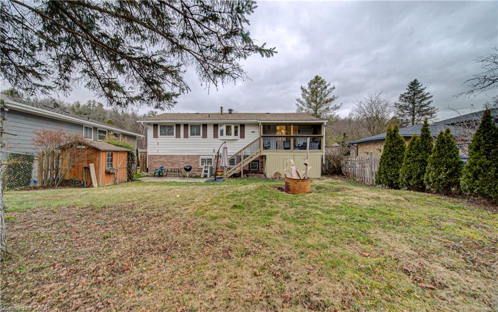 RAISED BUNGALOW WITH LARGE BACKYARD. Welcome to 18 Gilston Parkway in the charming town of Paris! This beautifully maintained raised bungalow offers a perfect blend of comfort, functionality and outdoor living. The main floor features an open-concept layout, seamlessly connecting the living and dining areas, a large bright kitchen, 3 spacious bedrooms and a shared 4-piece bathroom which completes this level. Downstairs, the fully finished basement provides exceptional additional living space, including a large recreation room, 3-piece bathroom, a 4th bedroom, laundry room and ample storage throughout. A separate entrance from the basement to the backyard adds flexibility and potential. Step outside to enjoy the large, fully fenced backyard surrounded by mature trees for added privacy. This outdoor retreat features a fire pit, a shed and a covered deck with stairs leading down to a patio—perfect for entertaining or unwinding. Parking is a breeze with a single-car garage and a double-wide driveway accommodating up to 5 additional vehicles, for a total of 5 parking spaces. Ideally located close to parks, the Grand River, greenspace, Highway 403, shopping, and everyday amenities.