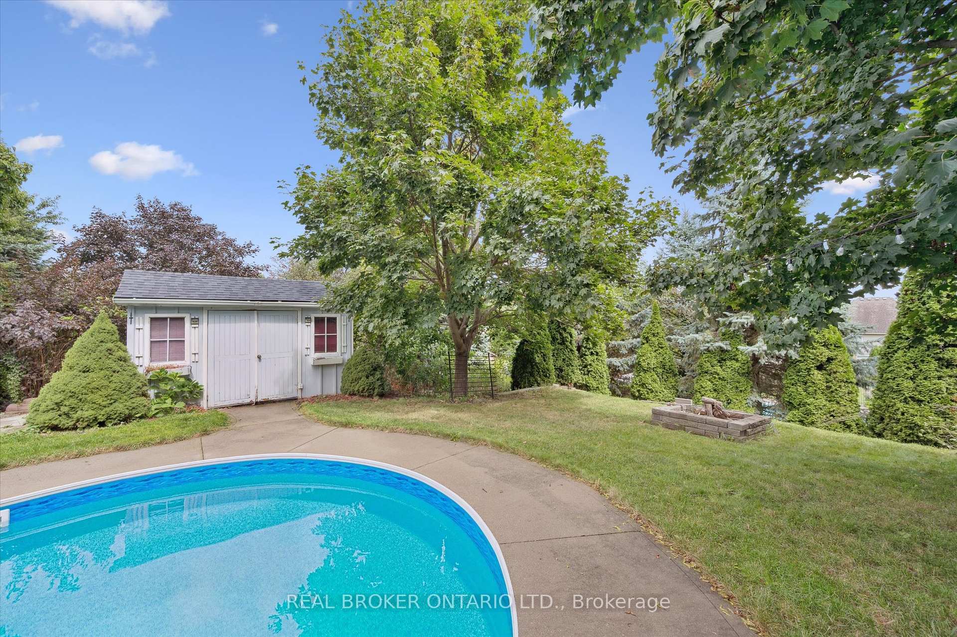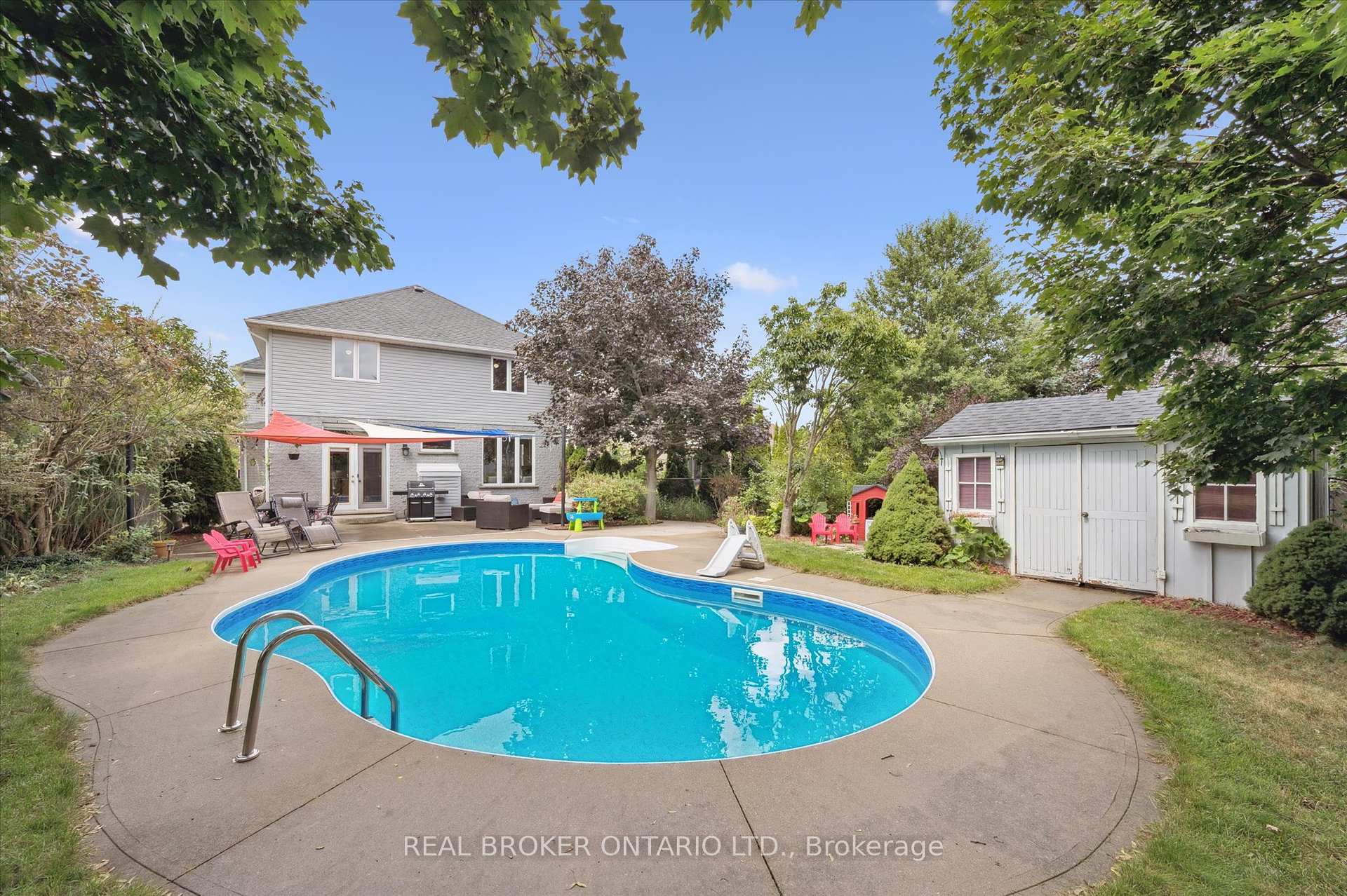 Welcome to this beautifully maintained 2-storey home tucked away on a quiet court in Kitchener. From the moment you step inside, you’ll notice the spacious layout with 9-foot ceilings on the main floor. The kitchen is large and well-appointed with plenty of counter space, ample cabinetry, and a new stovetop. Its a perfect setup for everyday living or entertaining. Upstairs you’ll find four generous bedrooms and two full bathrooms. The primary suite includes a private ensuite and a stylish new feature wall. Two of the additional bedrooms come with custom closet organizers, adding extra functionality and convenience. The finished basement provides excellent potential for in-law or multi-generational living. It has a separate entrance, a second kitchen with a new stove and fridge, a bedroom, and a comfortable living area. Step outside to your own backyard retreat. The inground heated saltwater pool has been updated with a new liner (2025), pool pump (2022), heater (2023), and pool filter (2025). The pool house features a brand-new roof (2025), and concrete walkways line both sides of the home. While the hot tub has been removed, wiring is still in place if you’d like to add one. Lush landscaping and meticulously maintained gardens complete the resort-like setting. Additional updates include topped-up blown-in insulation (2022) to ensure year-round comfort and energy efficiency. The home is ideally located near shopping, schools, and the 401, making it a perfect choice for families and commuters alike. This property offers the right balance of space, thoughtful updates, and outdoor living. Its ready for the next family to fall in love with.