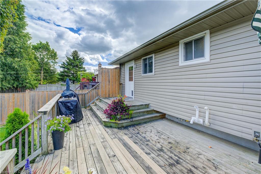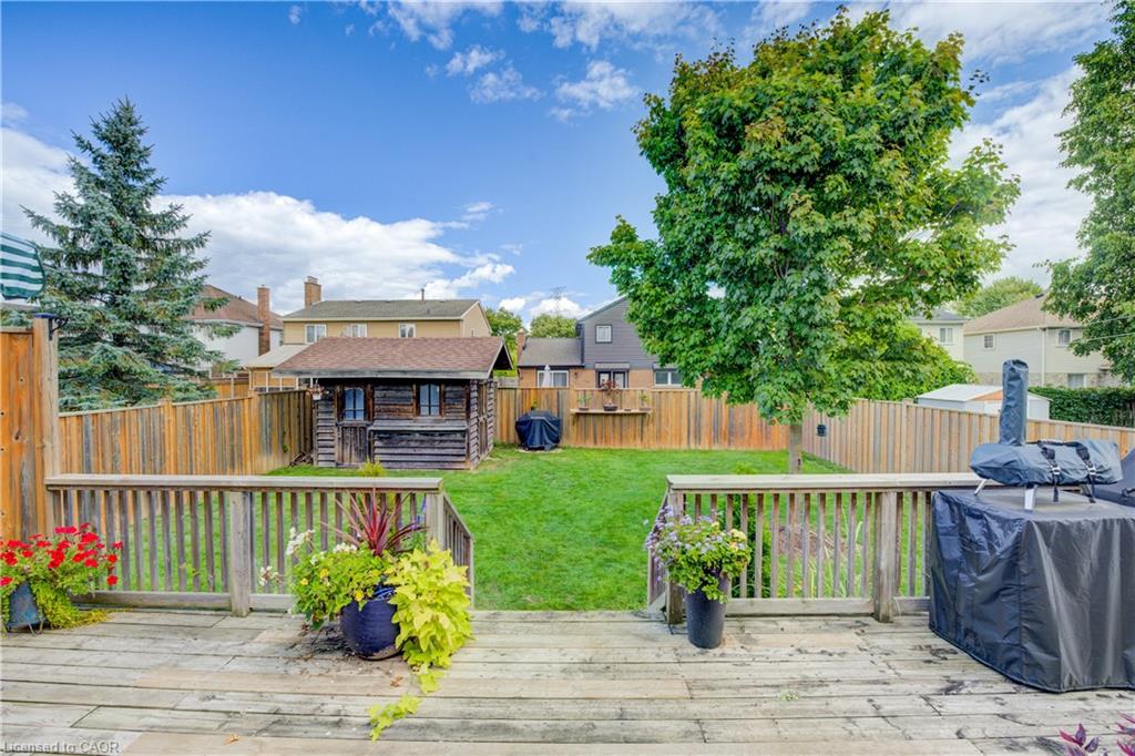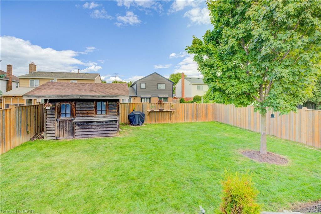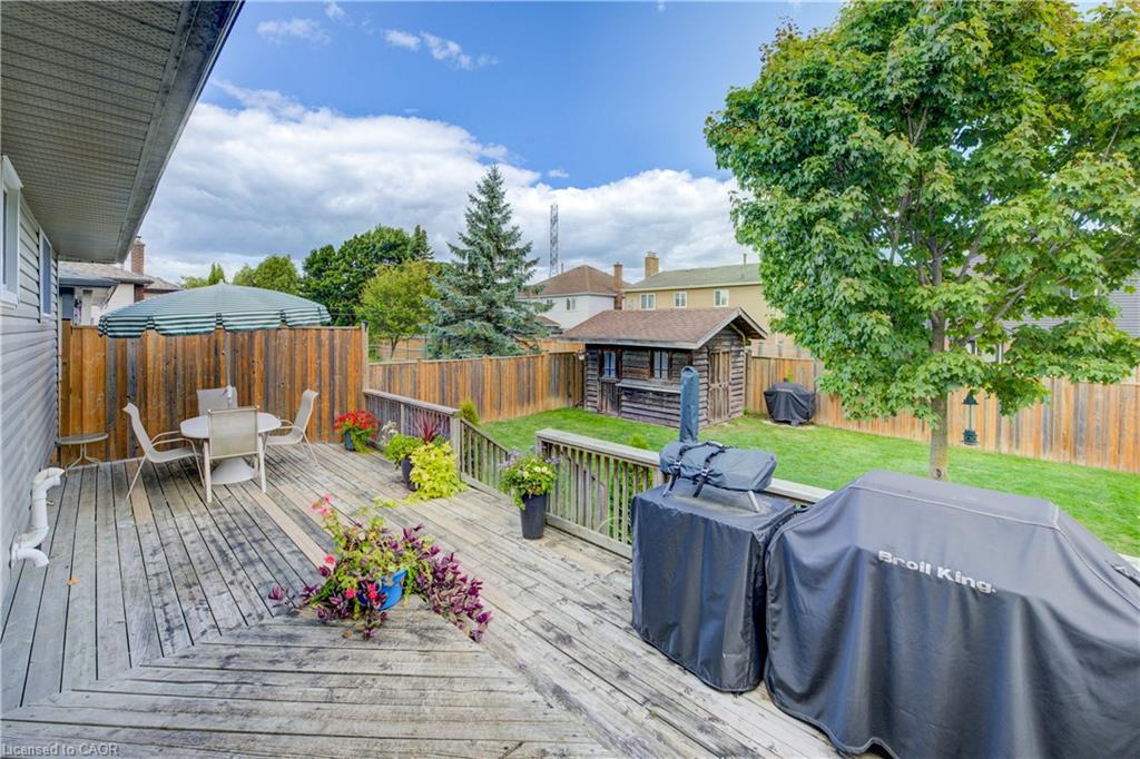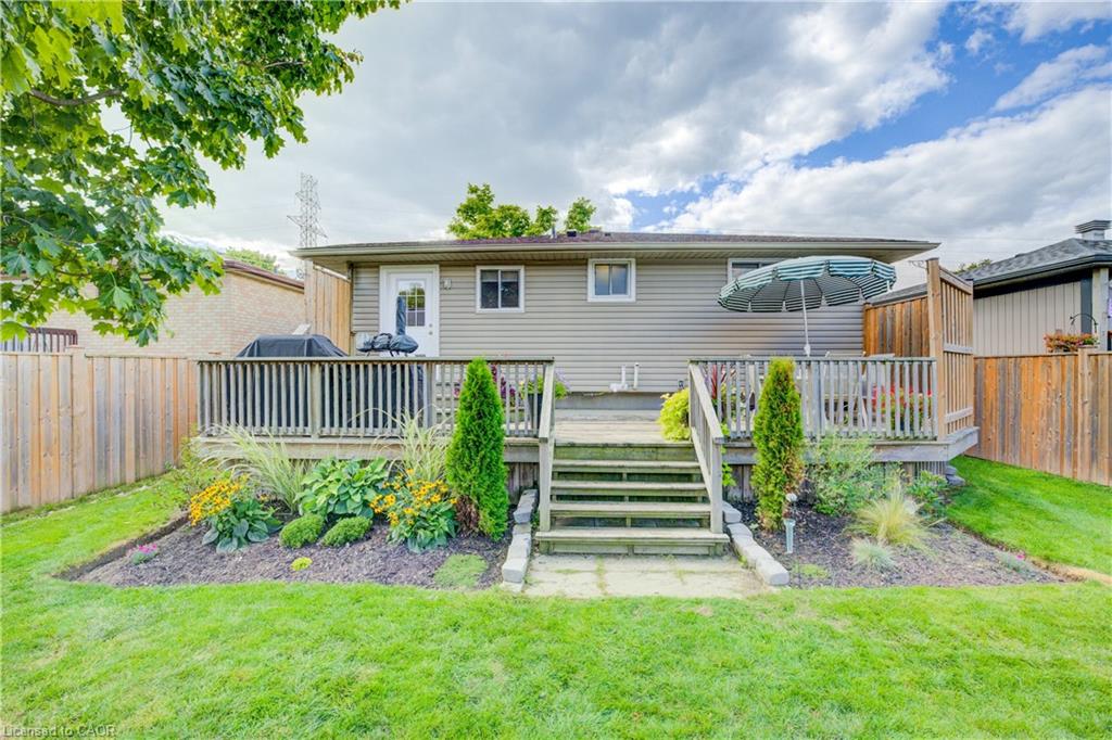 Updated Raised Bungalow! Welcome to this move-in ready home that combines practical updates with comfortable living spaces. The main floor offers a bright, open layout with a spacious living and dining area connected to the oversized kitchen, which includes plenty of cabinetry, stainless steel appliances, a gas stove, hood range, and breakfast bar. Relax on the front porch with your morning coffee or enjoy the backyard with its two-tiered deck, gas BBQ hookup, mature trees, and a privacy fence (2019). A powered 8’x10’ shed with hydro provides handy extra storage or workspace. The primary bedroom includes a walk-in closet with a barn door and accent wall for a cozy touch. Two additional bedrooms share a refreshed, large 4-piece bathroom. The finished lower level adds more room to spread out with a large rec room space, gas fireplace, 2-piece bath, and offers in-law suite potential. With fresh paint, updated lighting, and plenty of storage, this home is easy to move right into. Other features include an attached garage with inside entry, new gas furnace and heat pump (2023), and a central location close to schools, parks, trails, the expressway, and Ira Needles Blvd. A great mix of updates, space, and convenience, ready for its next owners to enjoy!