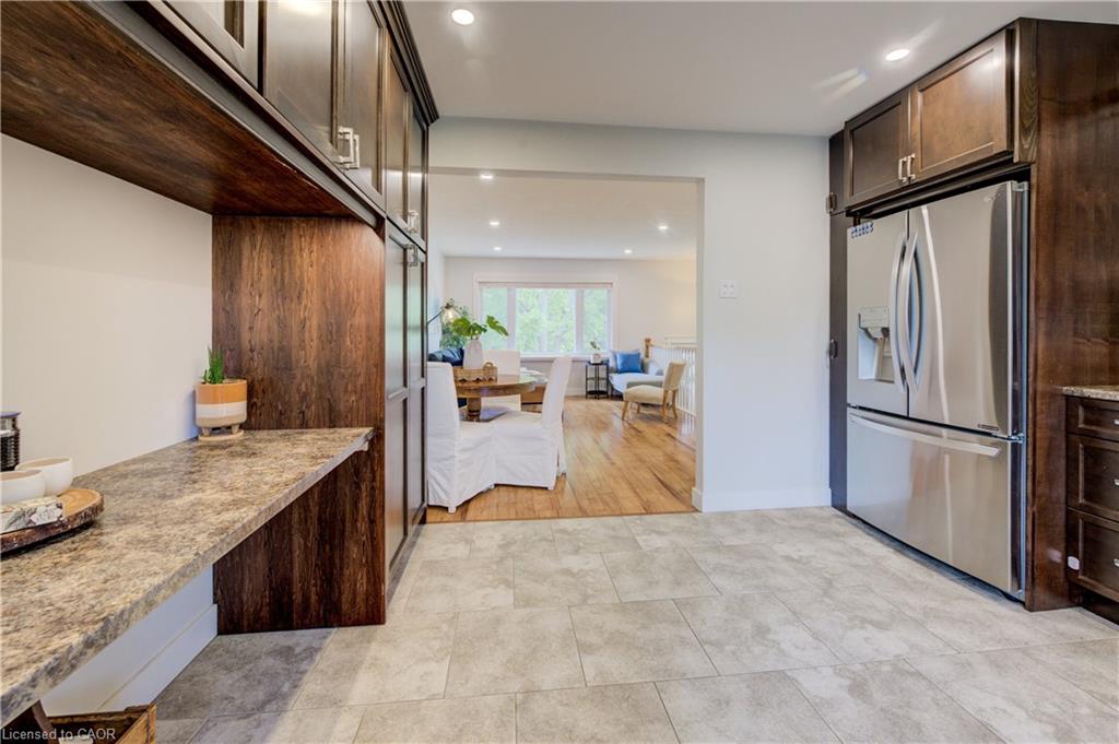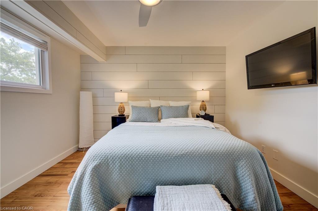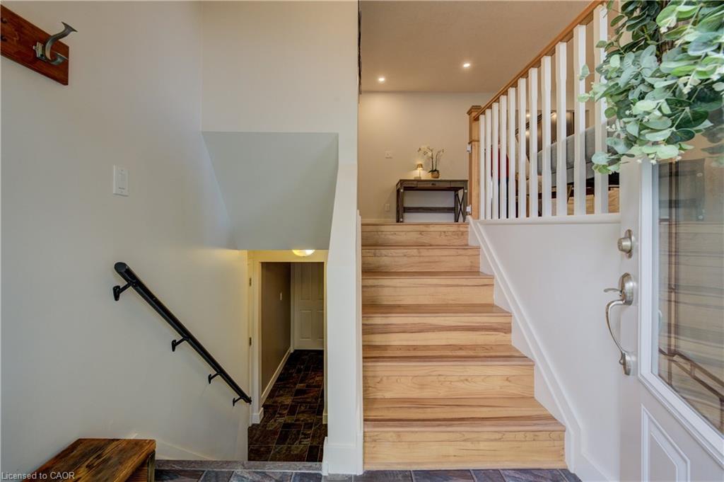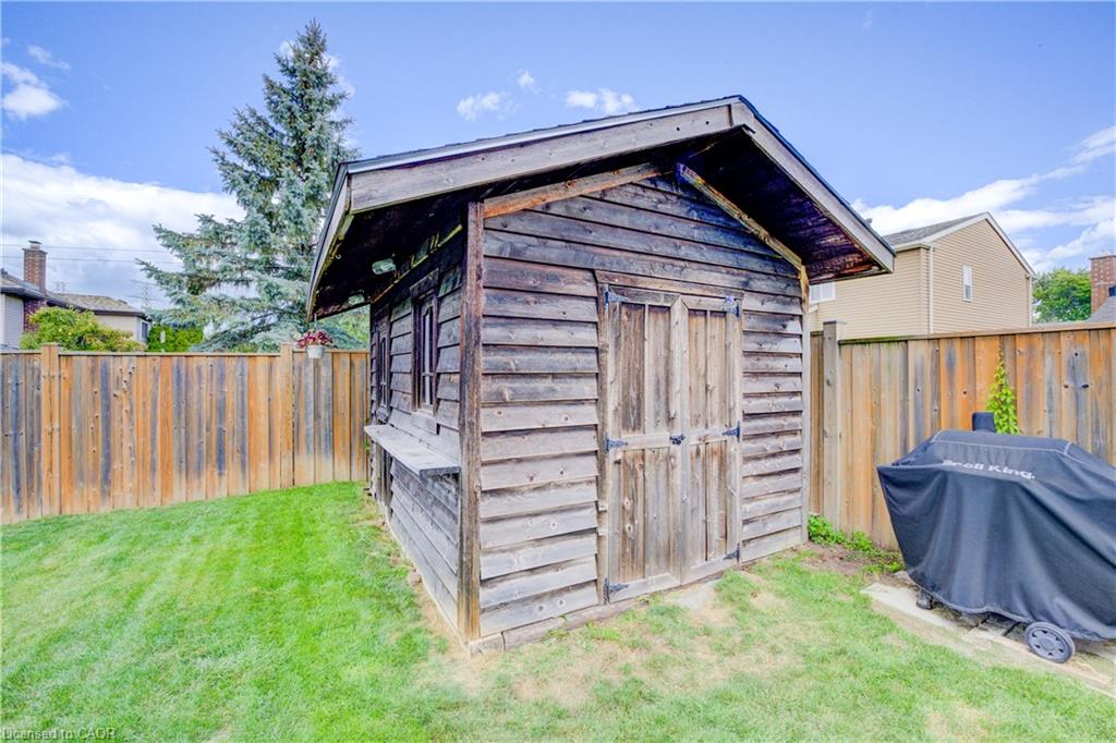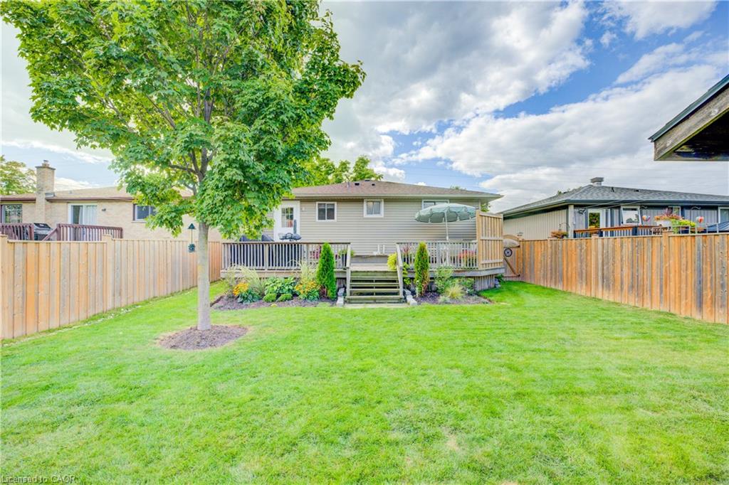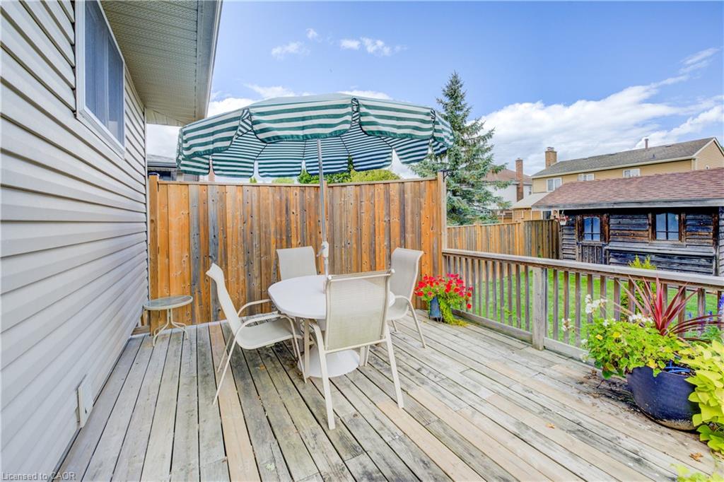 Updated Raised Bungalow! Welcome to this move-in ready home that combines practical updates with comfortable living spaces. The main floor offers a bright, open layout with a spacious living and dining area connected to the oversized kitchen, which includes plenty of cabinetry, stainless steel appliances, a gas stove, hood range, and breakfast bar. Relax on the front porch with your morning coffee or enjoy the backyard with its two-tiered deck, gas BBQ hookup, mature trees, and a privacy fence (2019). A powered 8’x10’ shed with hydro provides handy extra storage or workspace. The primary bedroom includes a walk-in closet with a barn door and accent wall for a cozy touch. Two additional bedrooms share a refreshed, large 4-piece bathroom. The finished lower level adds more room to spread out with a large rec room space, gas fireplace, 2-piece bath, and offers in-law suite potential. With fresh paint, updated lighting, and plenty of storage, this home is easy to move right into. Other features include an attached garage with inside entry, new gas furnace and heat pump (2023), and a central location close to schools, parks, trails, the expressway, and Ira Needles Blvd. A great mix of updates, space, and convenience, ready for its next owners to enjoy!