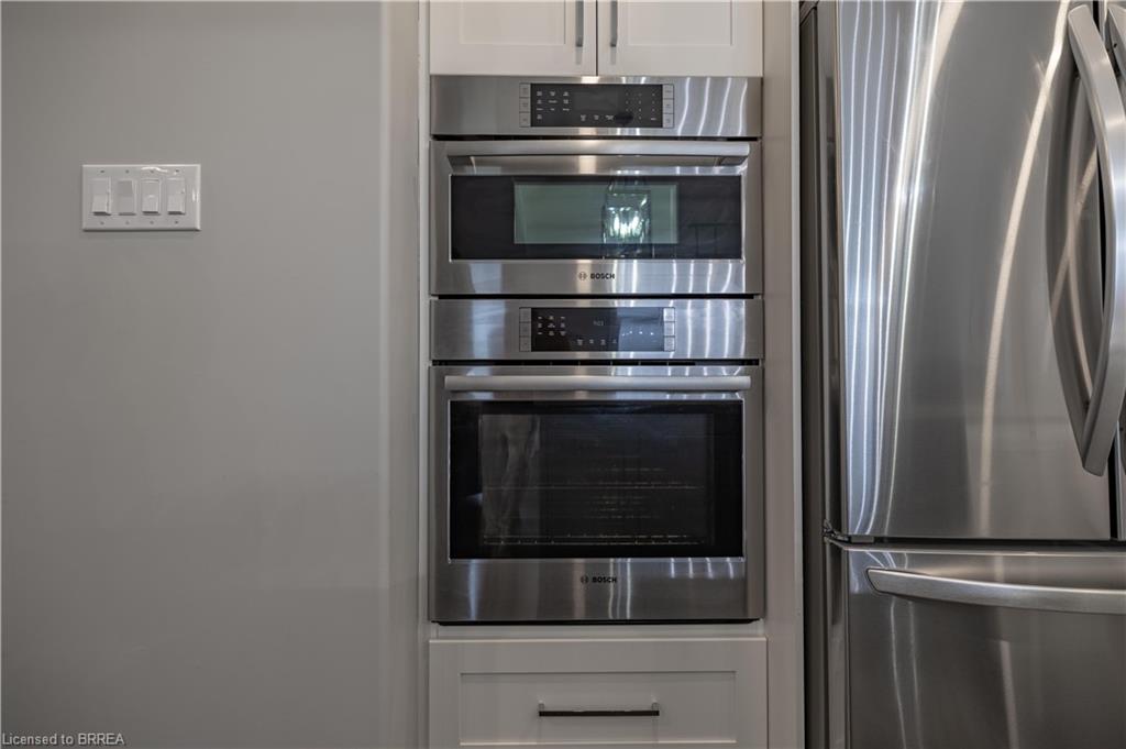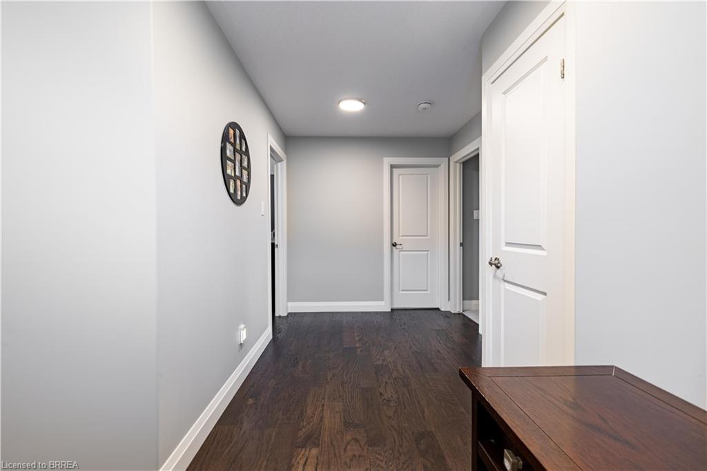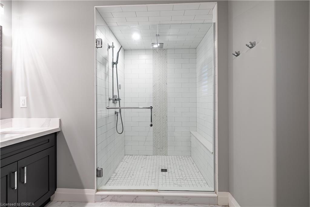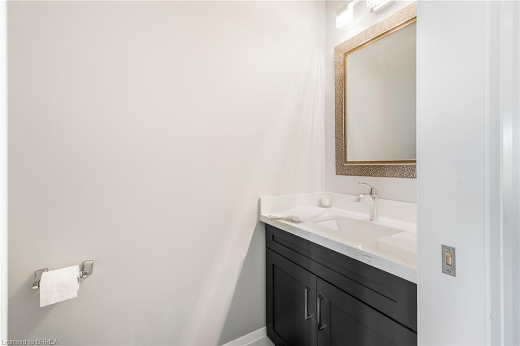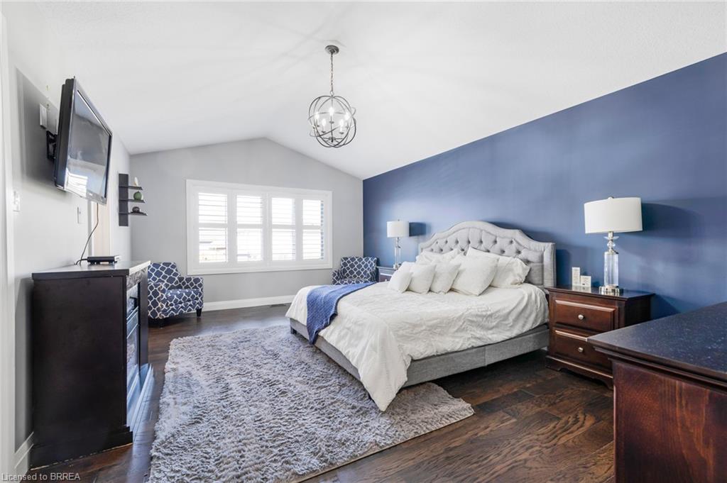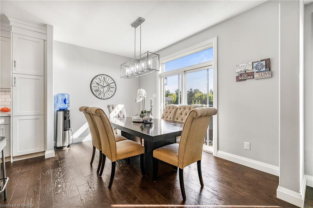 This exquisite custom-built 2-storey home backs onto a vibrant walking trail and park in the charming town of Paris, Ontario! Immerse yourself in a sophisticated neighbourhood designed for upscale family living. This meticulously crafted home seamlessly blends contemporary design with opulent comfort. From the moment you enter, you’ll notice the thoughtful details—gleaming hardwood floors, soaring 9-foot ceilings, elegant pot lights, and upgraded light fixtures that enhance the home’s bright and inviting atmosphere. The open-concept main floor creates a seamless flow between the kitchen, dining area, and living room, making it the ideal space for both everyday living and memorable entertaining. The chef-inspired kitchen is a true showstopper, boasting a large center island, sleek quartz countertops, premium stainless steel appliances including a BOSCH cooktop and built-in dual oven/microwave, a stylish tile backsplash, and under-mount lighting. The adjoining living room features a stunning stone-surround gas fireplace, while the dining area offers sliding doors that open to a raised deck complete with BBQ gas hook up, where you can enjoy tranquil sunrises, shaded afternoons, and family BBQs. The luxurious primary suite provides a private retreat with a generous walk-in closet and a spa-like ensuite complete with dual vanities and a glass shower with body jets. Downstairs, the unfinished walkout basement with a separate entrance is fully framed and includes a rough-in for a bathroom—presenting endless possibilities for an in-law suite, rental unit, or additional living space tailored to your needs. Perfectly situated just minutes from Hwy 403, the Brant Sports Complex, shopping, schools, and parks, this home offers both serenity and convenience. With meticulous craftsmanship, luxurious finishes, and an impeccable location, this property is a true sanctuary that combines elegance with everyday practicality. Don’t miss your chance to make this exceptional home yours!