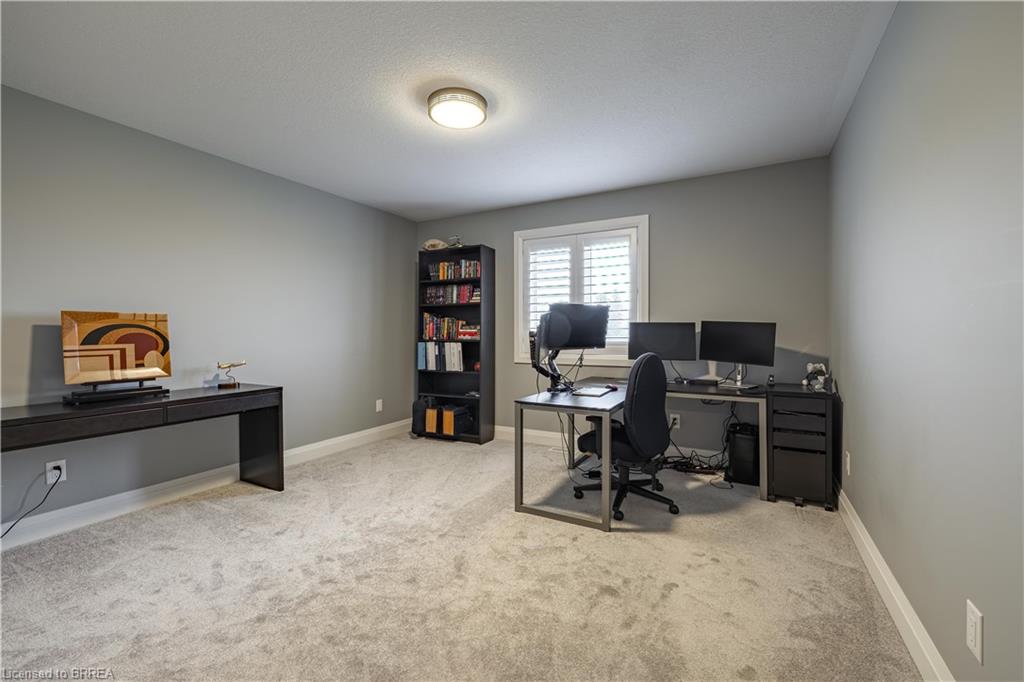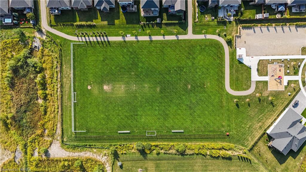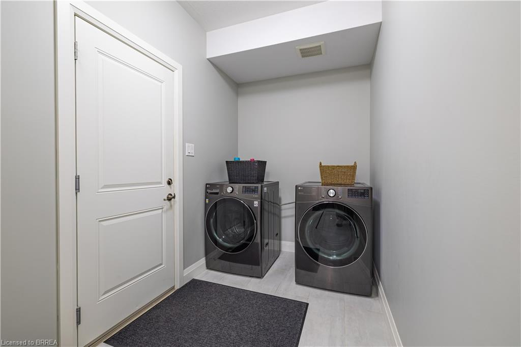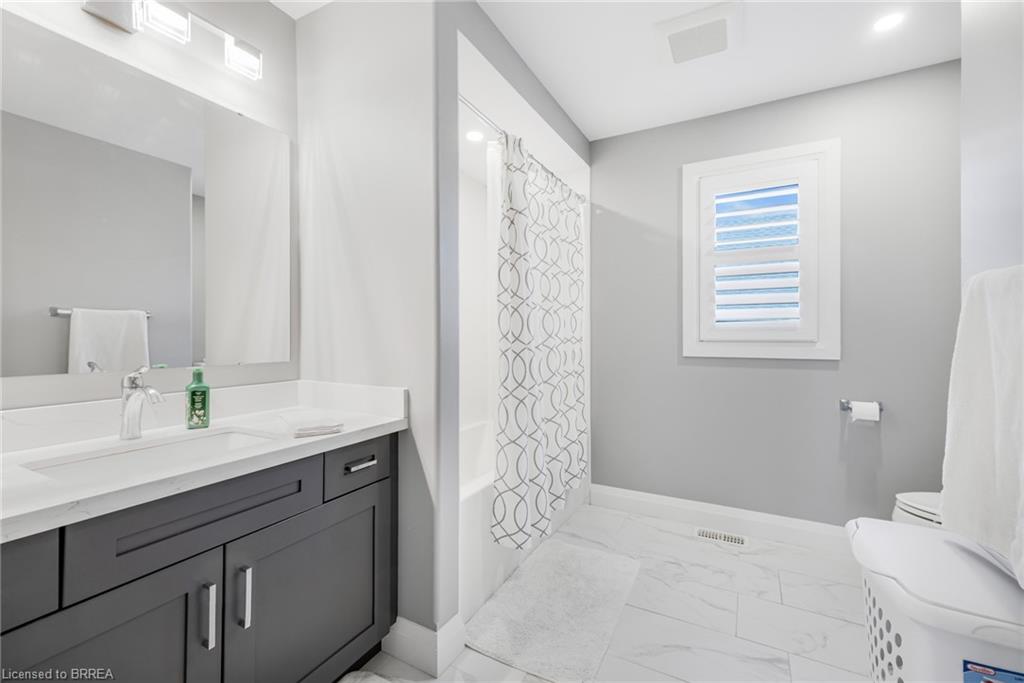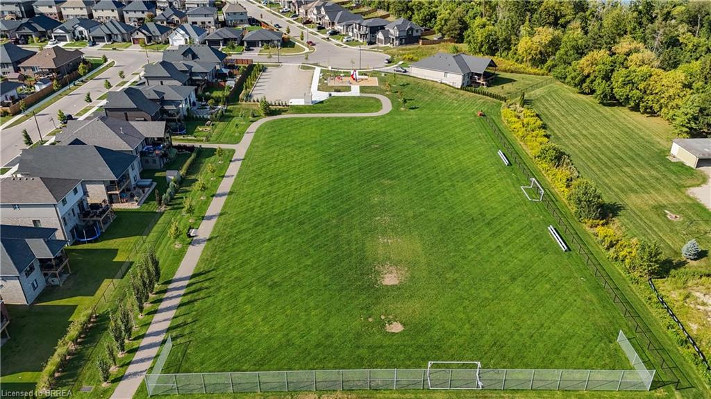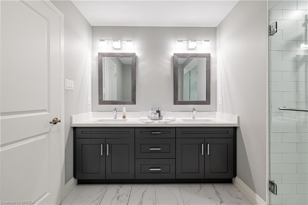 This exquisite custom-built 2-storey home backs onto a vibrant walking trail and park in the charming town of Paris, Ontario! Immerse yourself in a sophisticated neighbourhood designed for upscale family living. This meticulously crafted home seamlessly blends contemporary design with opulent comfort. From the moment you enter, you’ll notice the thoughtful details—gleaming hardwood floors, soaring 9-foot ceilings, elegant pot lights, and upgraded light fixtures that enhance the home’s bright and inviting atmosphere. The open-concept main floor creates a seamless flow between the kitchen, dining area, and living room, making it the ideal space for both everyday living and memorable entertaining. The chef-inspired kitchen is a true showstopper, boasting a large center island, sleek quartz countertops, premium stainless steel appliances including a BOSCH cooktop and built-in dual oven/microwave, a stylish tile backsplash, and under-mount lighting. The adjoining living room features a stunning stone-surround gas fireplace, while the dining area offers sliding doors that open to a raised deck complete with BBQ gas hook up, where you can enjoy tranquil sunrises, shaded afternoons, and family BBQs. The luxurious primary suite provides a private retreat with a generous walk-in closet and a spa-like ensuite complete with dual vanities and a glass shower with body jets. Downstairs, the unfinished walkout basement with a separate entrance is fully framed and includes a rough-in for a bathroom—presenting endless possibilities for an in-law suite, rental unit, or additional living space tailored to your needs. Perfectly situated just minutes from Hwy 403, the Brant Sports Complex, shopping, schools, and parks, this home offers both serenity and convenience. With meticulous craftsmanship, luxurious finishes, and an impeccable location, this property is a true sanctuary that combines elegance with everyday practicality. Don’t miss your chance to make this exceptional home yours!