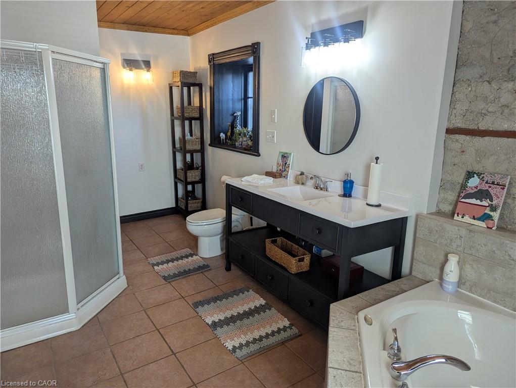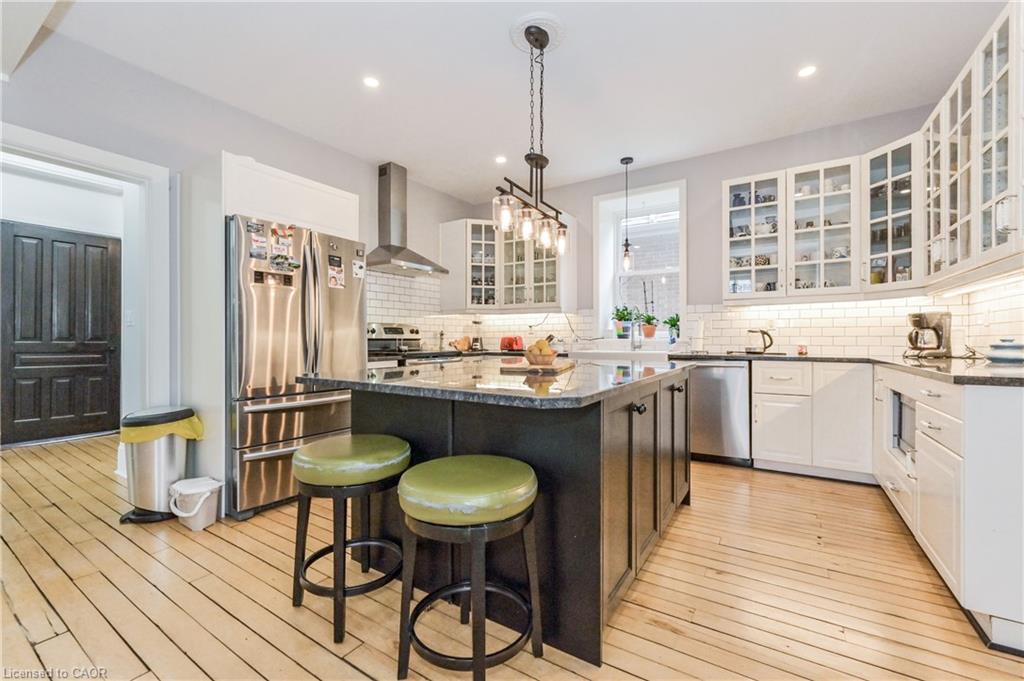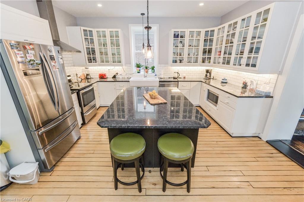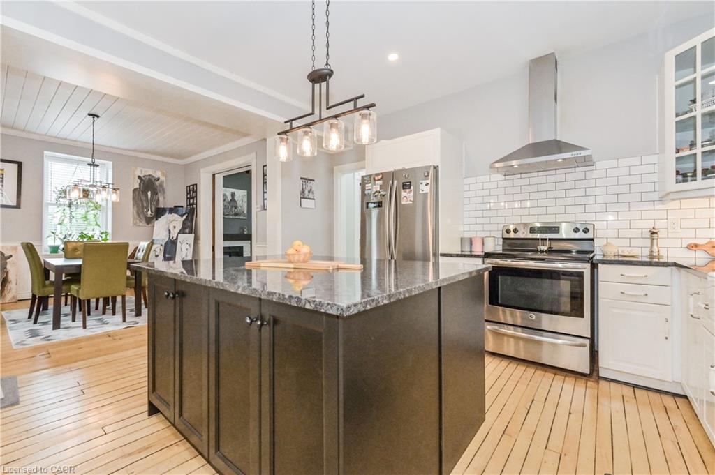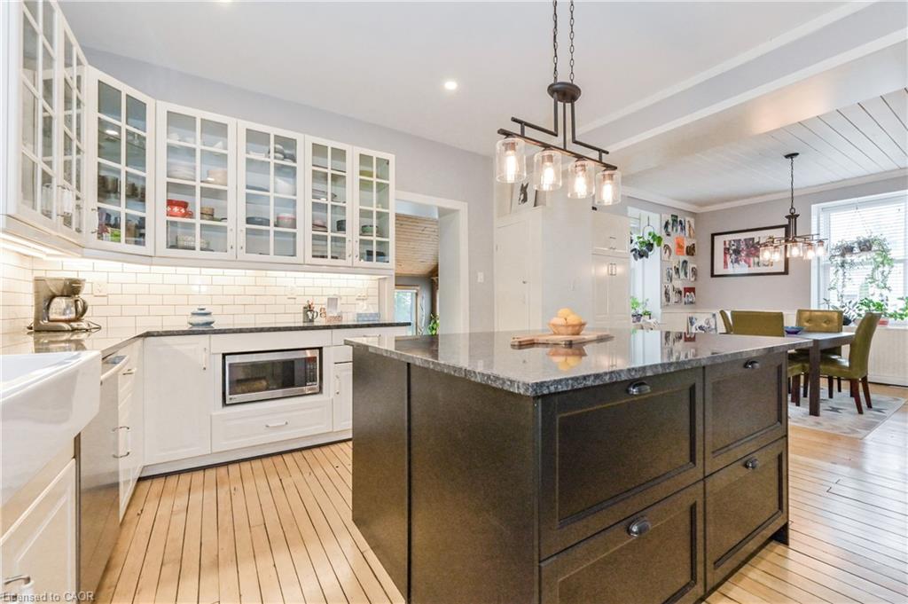 Gorgeous century stone home with heated in-ground pool! Features like Soaring ceilings, gleaming refinished hardwood floors throughout boast top quality craftsmanship not seen in the newer subdivisions. Absolutely stunning professionally designed gourmet style kitchen with granite tops throughout plus a massive full function island picture frames the glass front cabinets. Friends and family entertaining is fun with the formal dining room for that perfect evening. This amazing layout presents the open concept that includes the parlour that will fit that 12 ft Christmas tree. The primary bedroom features ensuite, walk in closet stone accent wall. Second bedroom boasts a fully exposed stone wall and sized perfect for the king size cozy bed plus a sun filled third bedroom/office just keeps adding more to this beautiful home. The newly renovated spa like second bath also features exposed stone walls and a cozy soaker tub. More exposed stone walls in the family room with gas fireplace over looking that beautiful, fully fenced private yard and natural gas heated pool. Finished basement for that family movie night after a day of fun at the pool. Pool house could be used as a guest house year round. Beautifully landscaped oasis finishes this picture perfect.