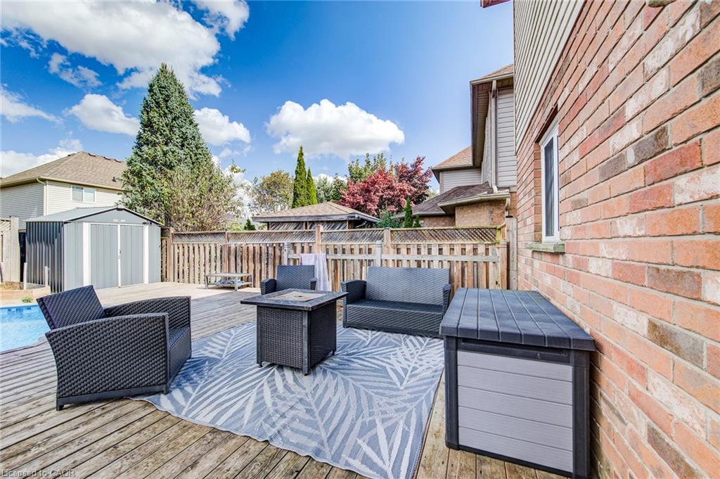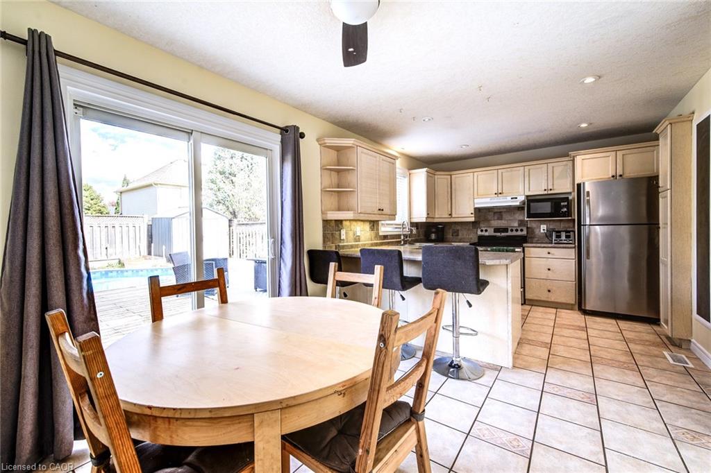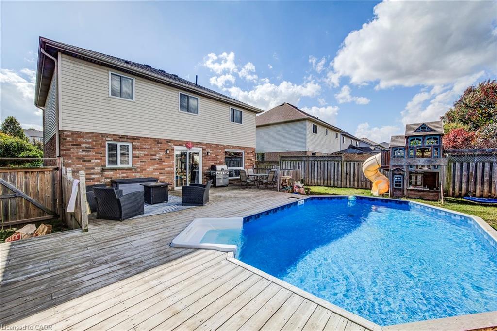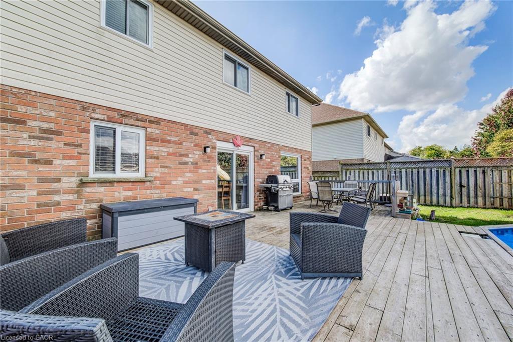 YOUR FOREVER HOME IN A MATURE NEIGHBOURHOOD. This family-friendly West Galt home sits on a quiet street in one of the area’s most sought-after mature neighbourhoods- a place where kids can ride bikes, neighbours wave hello, and everything you need is just minutes away. Step inside and be greeted by a large, welcoming front entrance — the perfect space for a busy family coming and going. From here, the main floor unfolds beautifully with a blend of comfort and function. A formal living and dining room with bright front windows sets the stage for entertaining, while the open-concept kitchen, complete with a breakfast bar and newer sliders to the backyard, becomes the heart of the home. The adjoining family room, featuring a cozy gas fireplace, ensures you’ll never miss a moment together. Practical touches are built in, too — a main floor powder room, laundry/mud room with garage access keeps life organized, and the double garage provides plenty of storage. Upstairs, the spacious primary suite offers a true retreat with oversized closet space, an additional fireplace for ambience, and a private ensuite. 3 more generously sized bedrooms and a full bathroom complete this level. The finished basement adds even more living space, with a large rec room, 2-pc bath (with rough-in for a 3-pc), and endless possibilities for games, movie nights, or a home gym. Out back, summer dreams come alive. The oversized, fully fenced yard offers an expansive deck — perfect for BBQs and lounging — and a heated saltwater pool with sand filter (3–5.5 ft depth). It’s the ultimate spot for family fun and relaxation. Only 10 minutes to the 401, surrounded by great schools, parks, and all amenities, this home checks every box for a growing family.