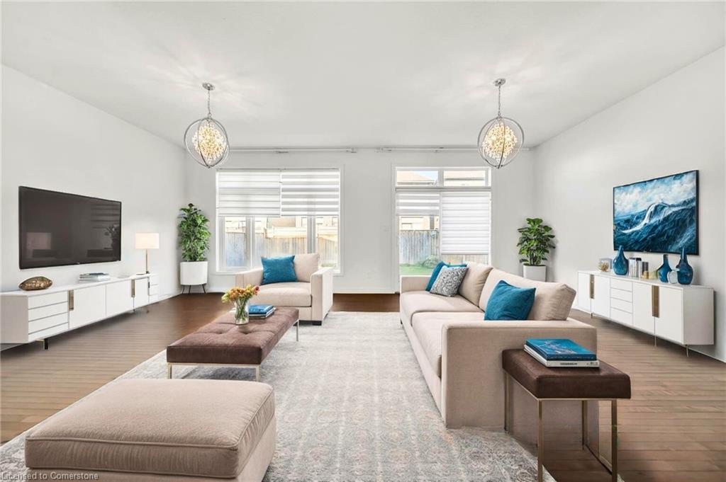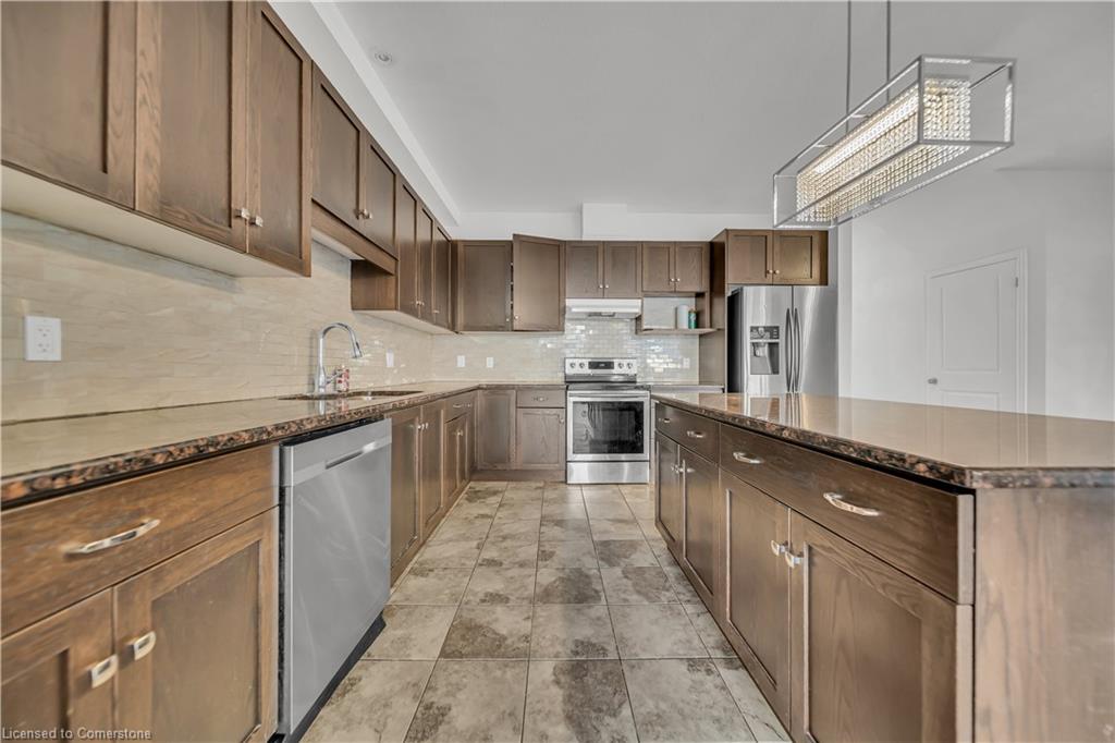 “Ridgewood” model by New Lifestyle Homes is more than just a house – it’s a lifestyle. Boasting 4 spacious bedrooms, 3.5 luxurious bathrooms, this home offers thoughtfully designed layout for modern family living. From the moment you arrive, the elegant exterior, wide front porch & parking for 3 vehicles (one in garage, 2 in driveway) set the tone for what’s inside. Step into a carpet-free main level enhanced with premium flooring (2023) and soaring 9-foot ceilings that create a bright and open feel. The chef-inspired kitchen, featuring ceiling-height cabinetry, an oversized island, stainless steel appliances & ample counter space – perfect for hosting, cooking, or family baking sessions. The upper level features a serene Primary Suite with a large walk-in closet & a spa-like ensuite bathroom. The additional 3 generously sized bedrooms are ideal for growing families, offering plenty of space for full-sized furniture and large closets for effortless organization. Downstairs, the fully finished basement, done in 2017, featuring a sprawling recreation room, ideal for movie nights, kids’ play area, or a future home gym. With a full 3-piece bathroom, the space also offers the flexibility for an in-law suite or guest retreat. Step outside to a backyard designed for enjoyment and privacy – complete with exposed aggregate concrete patio, a fully fenced yard & ample space for BBQs, entertaining & play. The Location is unbeatable. Just steps from top-rated schools, parks, trails & the scenic Grand River, this family-friendly neighbourhood offers the perfect balance between urban convenience and natural beauty. Enjoy nearby shopping, dining, public transit, and quick access to highways. A vibrant community with a stunning home, This is a place to grow, connect & create lasting memories. Book your showing today and make its your before its Gone!