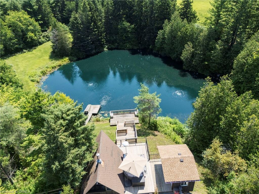 Tucked beyond the trees, where the air shifts and the light softens, you’ll find 182 Governor’s Rd E. A rare 15-acre estate where every corner has been crafted for connection, and built for legacy. At its centre stands a heritage home from 1865, storied and steadfast, the kind of place that holds laughter in its walls and history in its bones. Constructed with enduring triple-brick architecture featuring 4 Bed, 3 Bath this is a home that honours the past while embracing modern comfort. A few elevated touches include; quartz countertops, cafe appliances, solid wood beams, custom cabinetry adding warmth and timeless craftsmanship, a masonry built fireplace w/ regency wood insert (2022). Across the property, a second residence offers the perfect blend of comfort and independence, featuring 3 Bed, 4 Bath, a fully equipped kitchen, insuite laundry, and attached garage. Whether you’re welcoming extended family, hosting guests, or exploring rental income opportunities, this thoughtfully designed home allows for seamless multigenerational living without compromise. Anchoring the A-frame cabin is a wood stove (2022) equal parts function and art to bring warmth and beauty to the space. The patio hardscaping (2022) brings northern elegance and a touch of Muskoka to your very own backyard retreat. The new decking w/ glass railings extends your living space outdoors, inviting morning coffee with pond views or evenings under the stars. And then, there’s the land, walk the private trails beneath towering trees. Push off from the dock and cast a line in the pond, share stories around the glowing fire pit, cocktails in hand from your custom outdoor bar. It’s a setting that brings people together effortlessly. And for the dreamers, doers, and builders an 80×30 shop (2006) stands ready for business, hobbies, or bold new ventures. This isn’t just a property. It’s a sanctuary for the soul, a place to raise a family, build a legacy, and write your next chapter in nature’s quiet company.