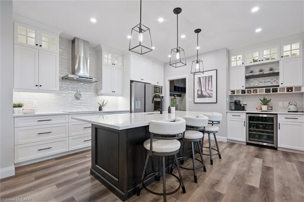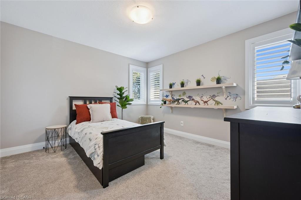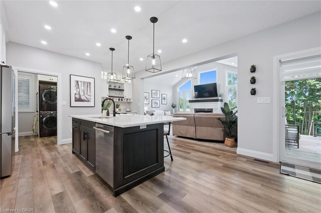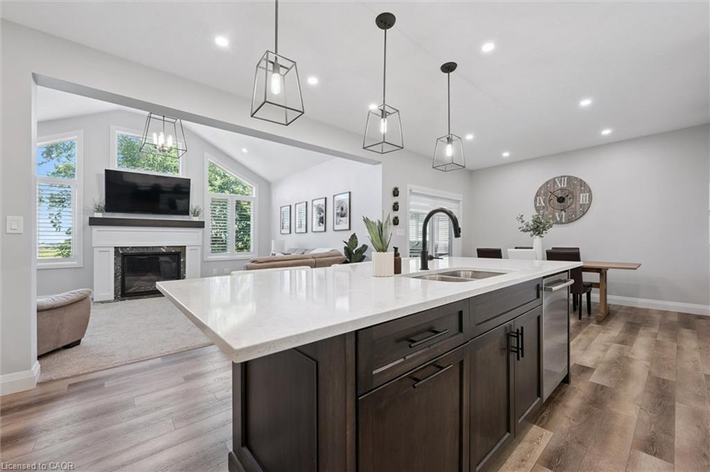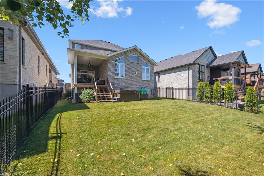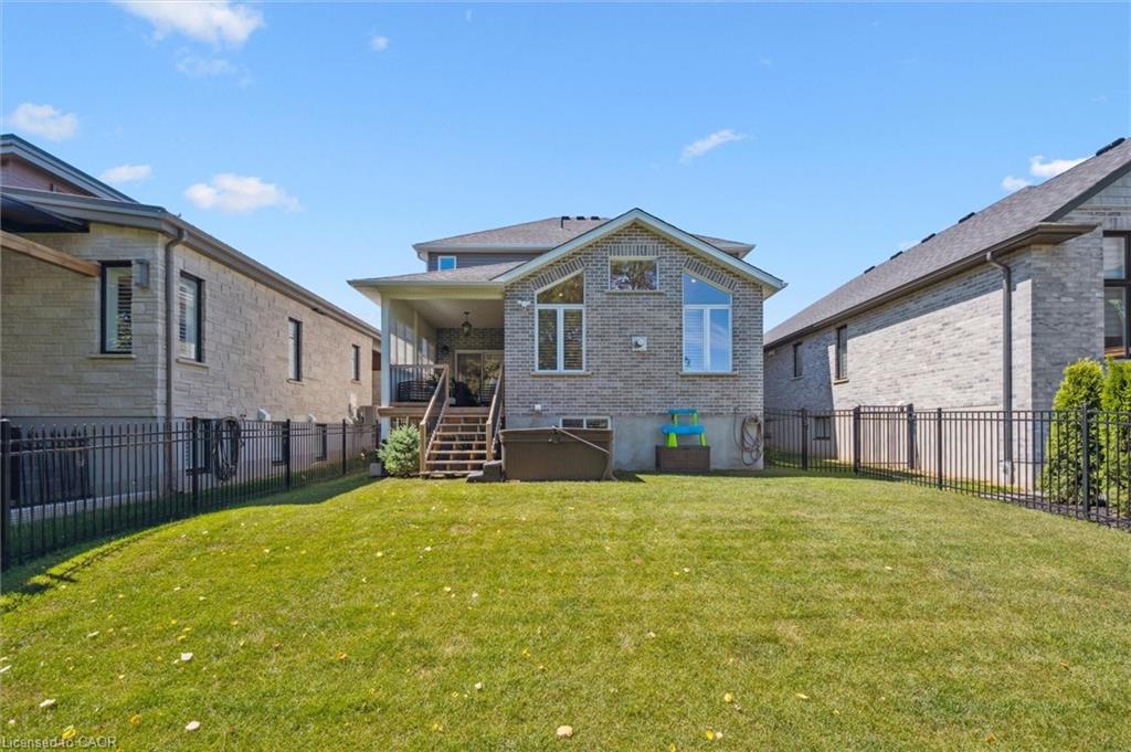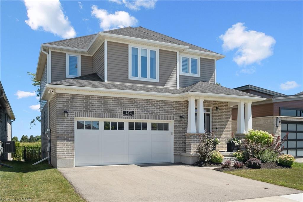 Welcome to your nearly new, stunning 2 story home located in Elmira! This 4 bedroom, 4 bathroom home enjoys many upgrades including a fully finished basement with custom kitchenette, California shutters throughout, higher ceilings, 2 car garage , custom child safety features and so much more. Located in the desirable South Parkwood community in Elmira, you’ll enjoy the small town feel with the convenience of all amenities in town and a 5 minute drive to Waterloo. Upon entering the home your attention is immediately grabbed by the view of the private and tranquil back yard and deck off of the large dining space. The custom kitchen features a great layout with plenty of storage, a large island for entertaining, stone countertops and a coffee/beverage bar, open onto the large great room with soaring cathedral ceilings and gas fireplace. This makes this space an entertainers dream. Just off the kitchen is the mudroom/laundry room with built in storage cubbies and a unique walk-in pantry with a custom designed cabinet for your baking needs. Upstairs you’ll find 3 large bedrooms and 2 bathrooms. The oversized primary bedroom features a reading nook, his and hers walk-in closets and a 5 piece luxurious ensuite. The finished basement features a large rec room with a 3 piece bathroom, a bedroom and a kitchenette with pantry making the possibilities of how you use the space endless. You’ll fall in love with the private covered deck off the main floor leading to a large fully fenced in yard with hot tub backing onto a farmers field and mature trees. You don’t want to miss this opportunity to own the perfect family home which is move in ready and located in a great area of Elmira.