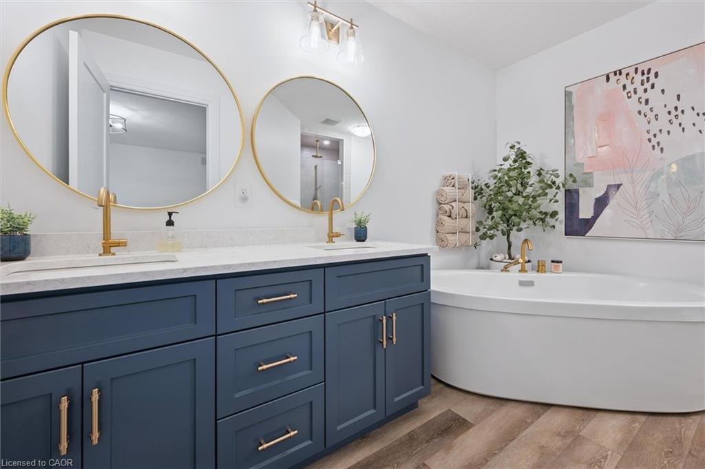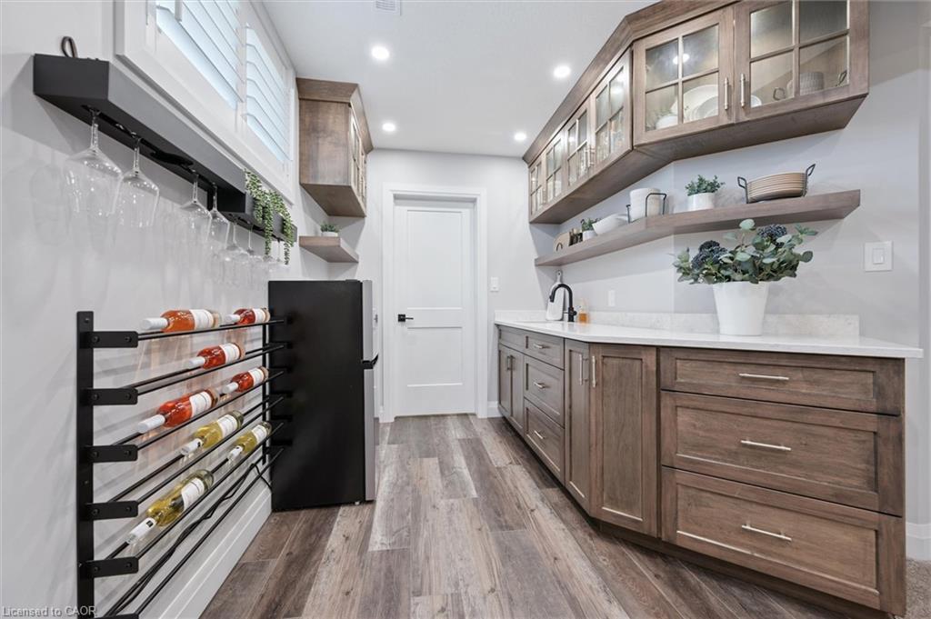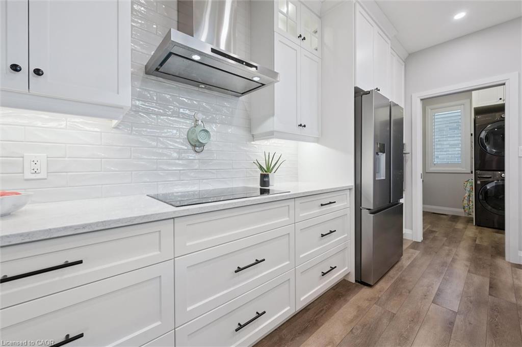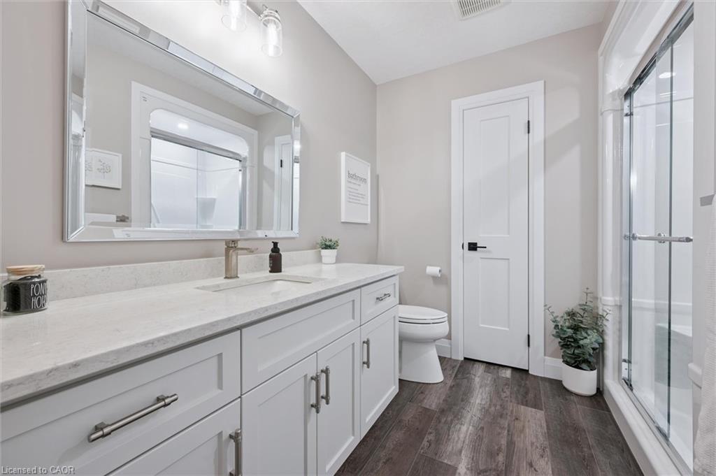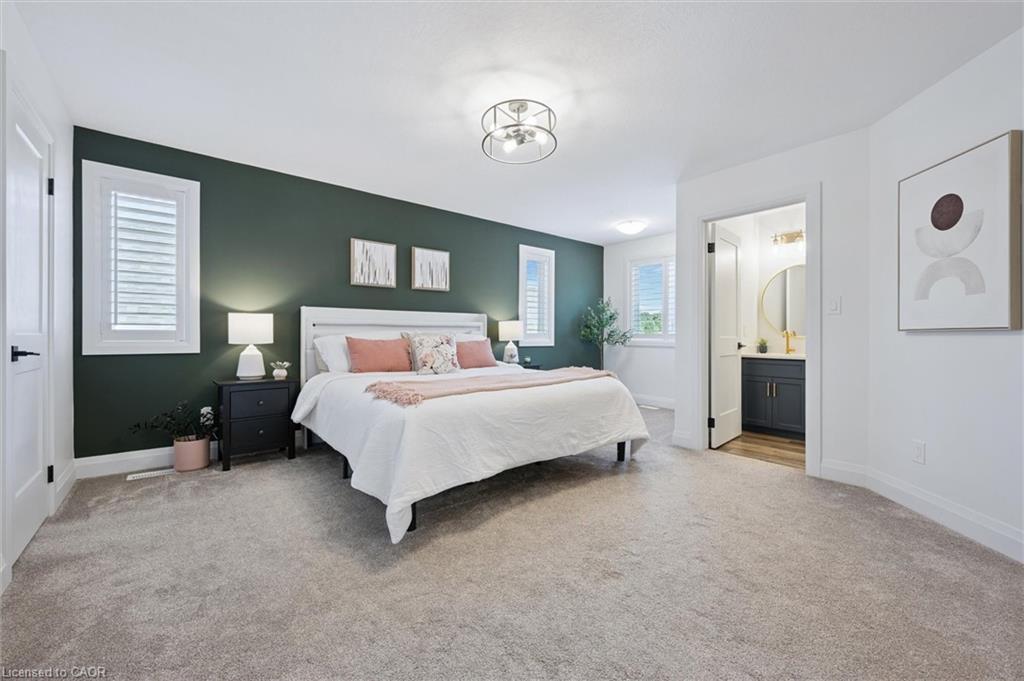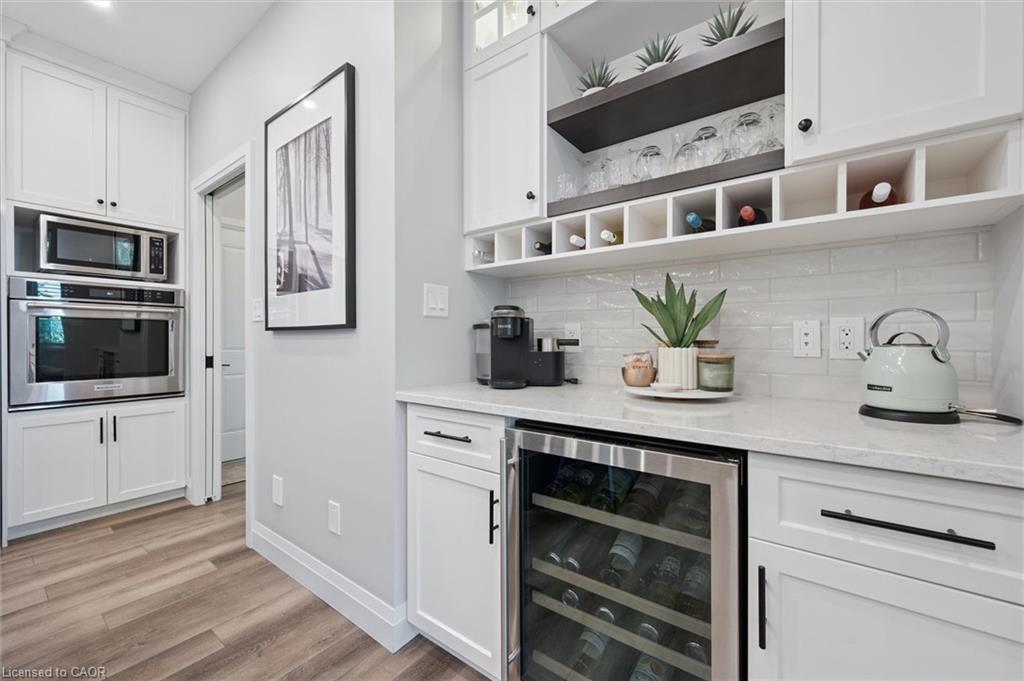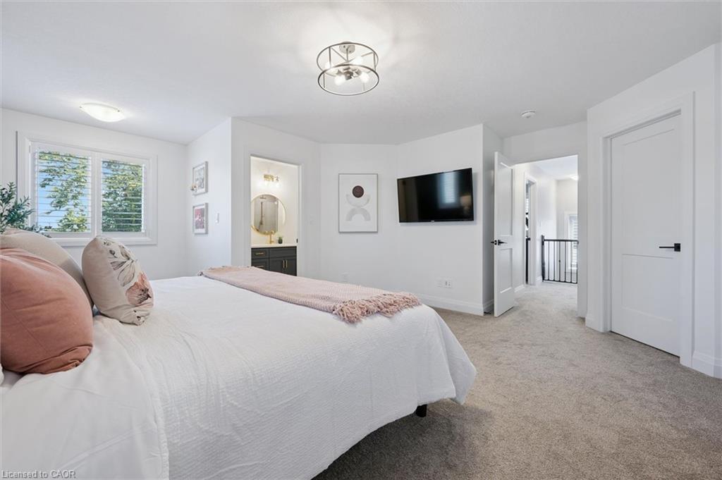 Welcome to your nearly new, stunning 2 story home located in Elmira! This 4 bedroom, 4 bathroom home enjoys many upgrades including a fully finished basement with custom kitchenette, California shutters throughout, higher ceilings, 2 car garage , custom child safety features and so much more. Located in the desirable South Parkwood community in Elmira, you’ll enjoy the small town feel with the convenience of all amenities in town and a 5 minute drive to Waterloo. Upon entering the home your attention is immediately grabbed by the view of the private and tranquil back yard and deck off of the large dining space. The custom kitchen features a great layout with plenty of storage, a large island for entertaining, stone countertops and a coffee/beverage bar, open onto the large great room with soaring cathedral ceilings and gas fireplace. This makes this space an entertainers dream. Just off the kitchen is the mudroom/laundry room with built in storage cubbies and a unique walk-in pantry with a custom designed cabinet for your baking needs. Upstairs you’ll find 3 large bedrooms and 2 bathrooms. The oversized primary bedroom features a reading nook, his and hers walk-in closets and a 5 piece luxurious ensuite. The finished basement features a large rec room with a 3 piece bathroom, a bedroom and a kitchenette with pantry making the possibilities of how you use the space endless. You’ll fall in love with the private covered deck off the main floor leading to a large fully fenced in yard with hot tub backing onto a farmers field and mature trees. You don’t want to miss this opportunity to own the perfect family home which is move in ready and located in a great area of Elmira.