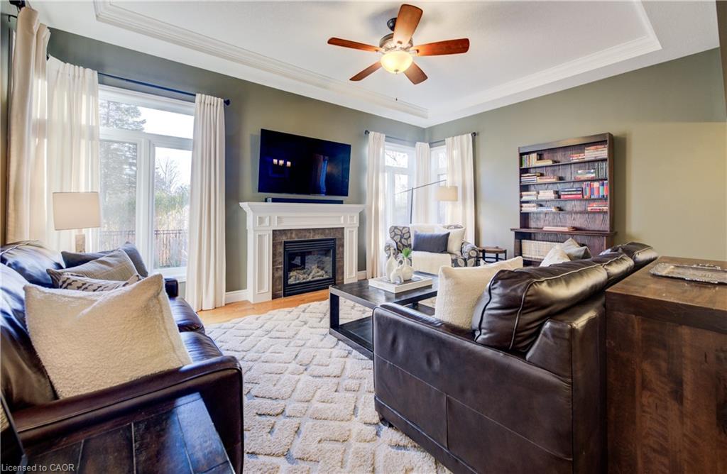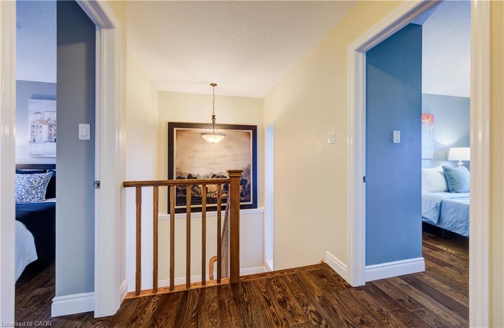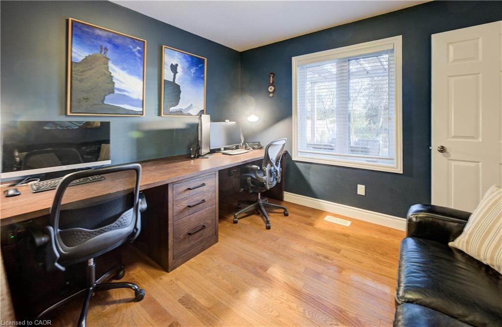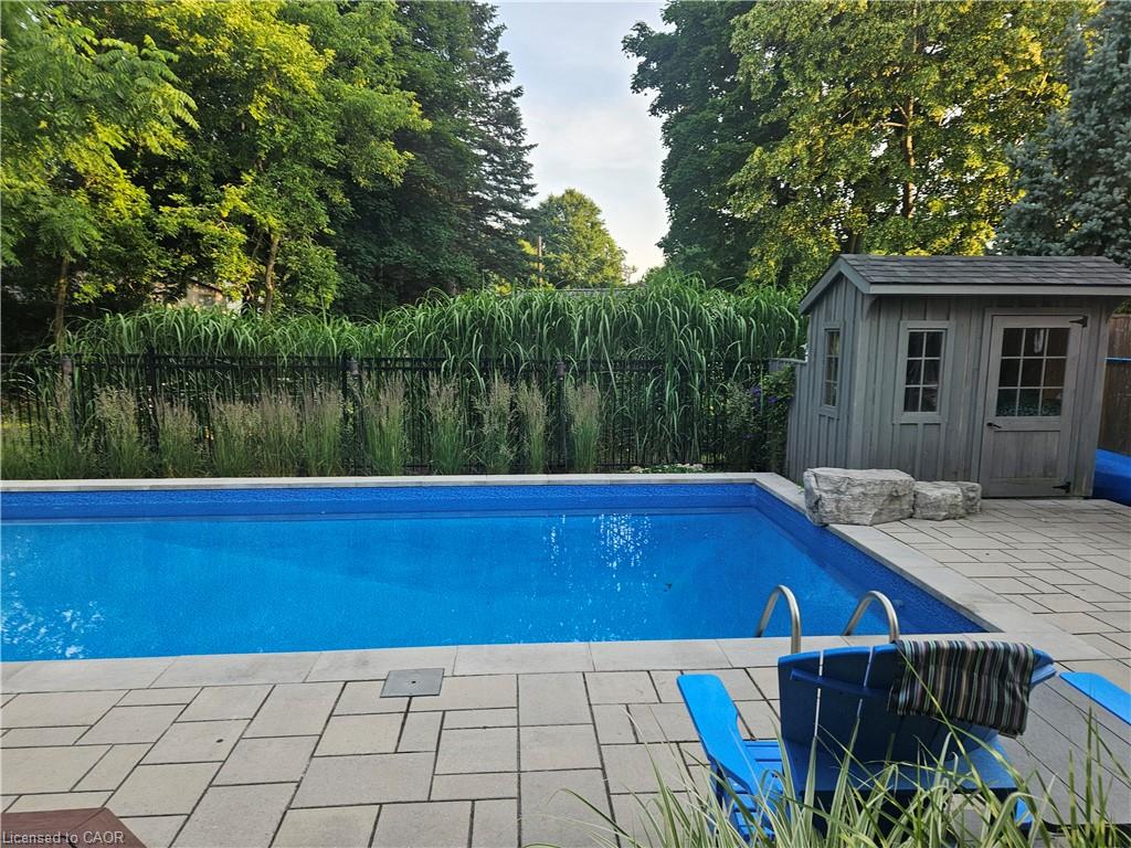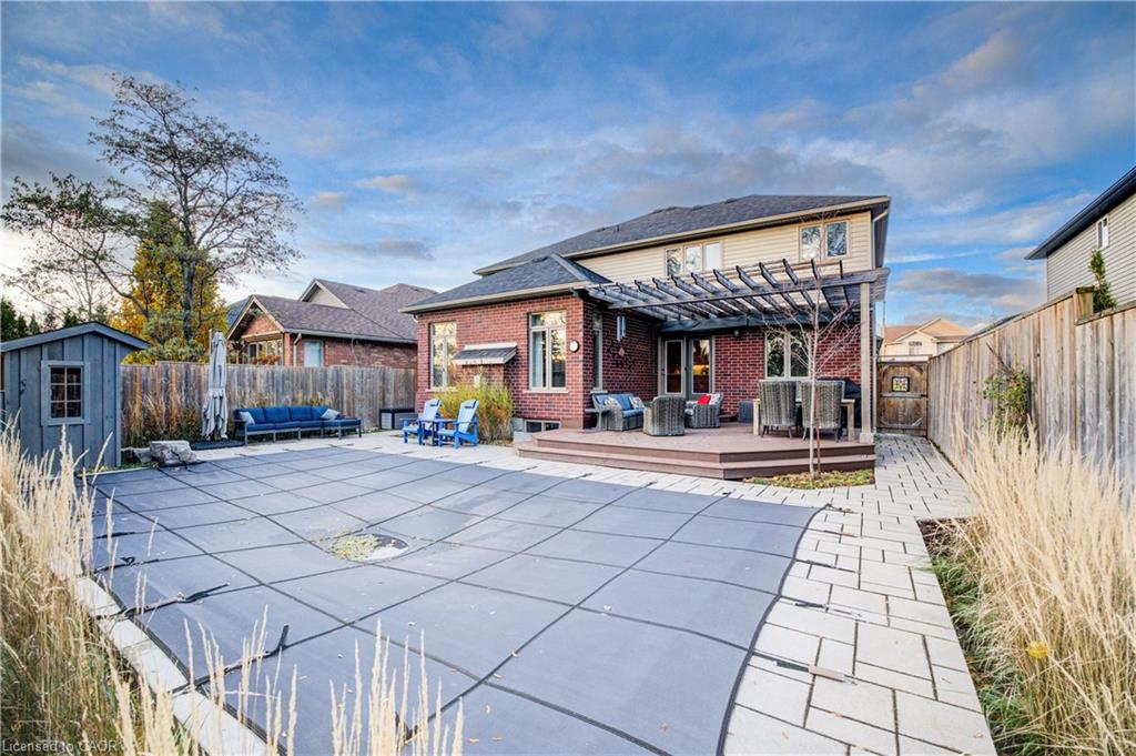 Welcome to this stunning 2-storey home that seamlessly blends modern comfort, thoughtful design, and an incredible backyard oasis. With 4 spacious bedrooms and 4 bathrooms, including a luxurious 5-piece primary ensuite, this home provides ample room for both family living and hosting guests. The bright, open-concept kitchen is a chef’s dream, showcasing a large 10’ island, stylish backsplash, and patio doors that open directly to your private outdoor retreat. Step outside to enjoy an impressive inground saltwater pool (2020), complete with a pool shed and backed by serene greenspace for exceptional privacy. The main floor features a cozy family room with a gas fireplace, a welcoming dining area perfect for gatherings, and a dedicated office with built-in desk and cabinetry, an ideal spot for work or study. Upstairs, beautiful hardwood flooring adds warmth and elegance throughout. The finished basement expands your living space even further, offering a comfortable theatre room with step-up seating, perfect for movie nights or entertaining guests. Additional highlights include central vacuum, a low-maintenance composite deck, and quality finishes throughout that elevate the home’s appeal. This home is just a short walk to the Woolwich Memorial Centre, parks, and downtown. Energy star certified and built by Emerald Homes. With its ideal blend of privacy, comfort, and location, this home is the perfect place to create lasting memories for years to come.