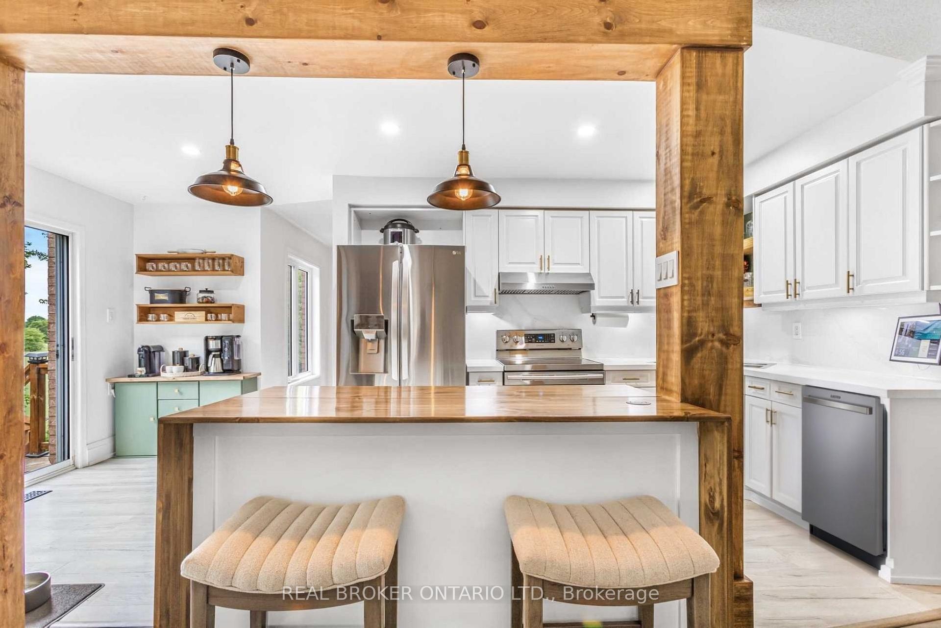 **Watch Virtual Tour** Nestled in one of Orangeville’s most desirable family neighbourhoods, this beautifully upgraded 4-bedroom, 4-bath detached home backs onto a serene park – offering privacy and tranquility with no rear neighbours. Just steps to Island Lake School and the hospital, and moments from Hwys 9 & 10, its a commuter’s dream! The open-concept main floor features a spacious eat-in kitchen with quartz countertops, custom cabinetry, and a walkout to a covered deck. The cozy family room offers a gas fireplace and custom maple beam accents. Convenient main floor laundry and inside access to the garage add to the homes functionality. Upstairs, find generously sized bedrooms, including a primary suite with a renovated ensuite and custom-built closets. The fully finished walk-out basement includes a kitchenette, entertainment wall, and custom Murphy bed – perfect for guests or extended family. Extensive updates throughout: new flooring, lighting, custom carpentry, wainscoting, and more. Move-in ready with impeccable attention to detail inside and out! Extensive exterior upgrades include front and rear landscaping, a custom firepit area with clubhouse, interlock with a front seating area, and outdoor lighting. The deck was fully rebuilt with new railings, stairs, foundation, lighting, and TV wiring. Inside, enjoy a redesigned kitchen with added cabinetry, a coffee bar, and stainless steel appliances. A wall was removed to improve flow, and a kitchen island added. Additional main-floor updates include upgraded powder room, custom storage bench, stair railings, and accent walls.