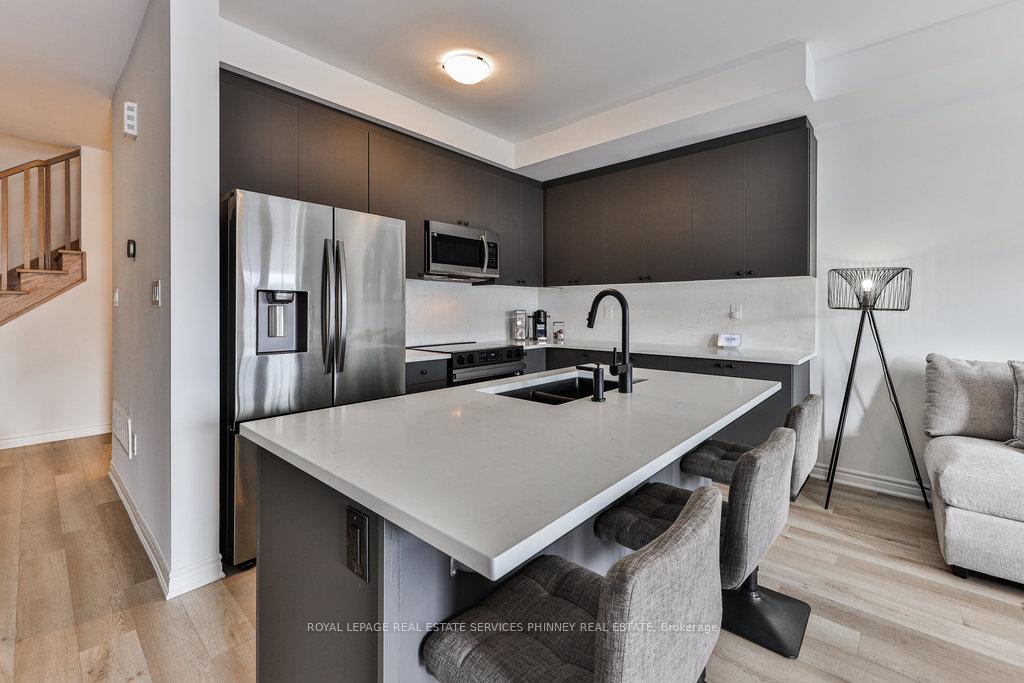 Modern 3-Bedroom Townhome in a Sought-After Community by Mattamy Homes Welcome to this one-year-old townhome, beautifully crafted by award-winning builder Mattamy Homes. Located in a growing new community, this home offers the perfect blend of style, comfort, and convenience. A thoughtfully designed 3-bedroom, 3-bathroom layout with an open concept second floor thats ideal for everyday living and perfect for entertaining friends and family. The upgraded kitchen boasts stainless steel appliances, quartz countertops, a large center island, and generous pantry. With luxurious laminate flooring throughout, the main living area features a bright and airy living room with a walkout to a spacious covered deck and a dining area with an accent wall and abundant natural light. A convenient powder room and laundry space complete this level. Upstairs, retreat to the generous primary suite with a large closet, a modern 3-pieceensuite, and a private balcony. Two additional bedrooms, both with closets, share a stylish4-piece bath. A linen closet provides added storage. Plenty of parking with a single garage and two additional driveway spaces. Situated in a prime location, this home is close to major highways, shopping, schools, and everyday amenities, making it perfect for families and professionals alike. Don’t miss your chance to own this stunning, move-in ready home in a growing community