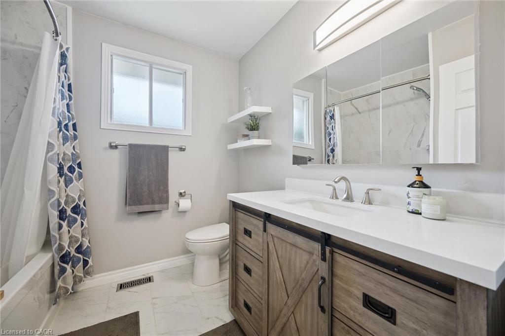 This versatile and modern home offers a fully finished lower level with a private IN-LAW SUITE – complete with a kitchen, bedroom, full bathroom and living area, making it ideal for multi-generational living, extended family, or rental income potential. Located in a family-friendly neighbourhood with many excellent schools nearby, this home blends functionality and comfort with peace of mind. The main floor is bright and welcoming, featuring oversized windows, modern pot lights, newer flooring, and tastefully updated kitchen cabinets and bathrooms. Recent updates include a new furnace (2021), sump pump (2024), and brand-new washer and dryer. Enjoy a spacious, fully fenced yard with a private enclosed patio, a one-car garage with great storage, and an extended gravel driveway with fresh sealing (2025) offering plenty of parking. Stylish, practical, and move-in ready – this home has it all.