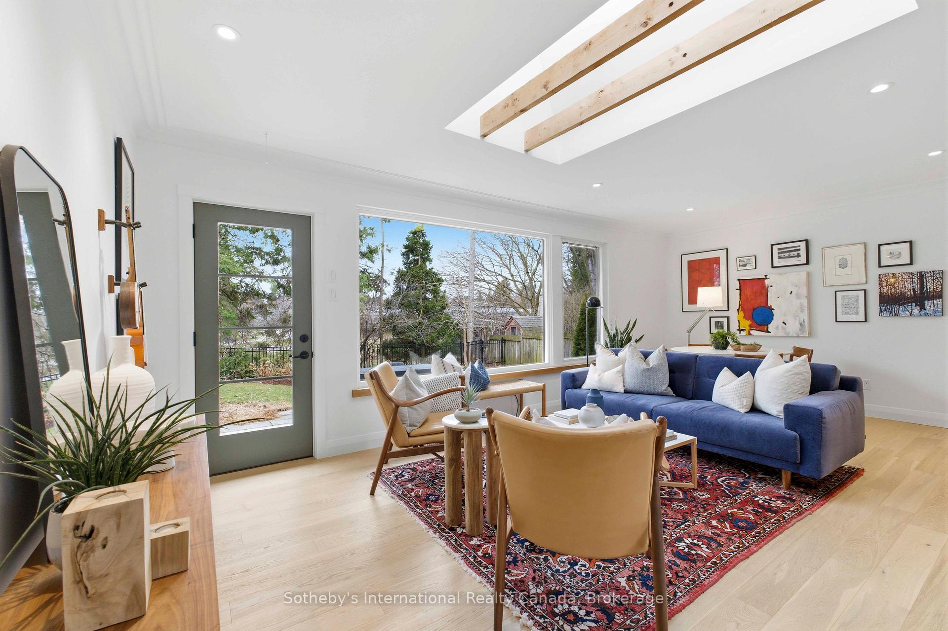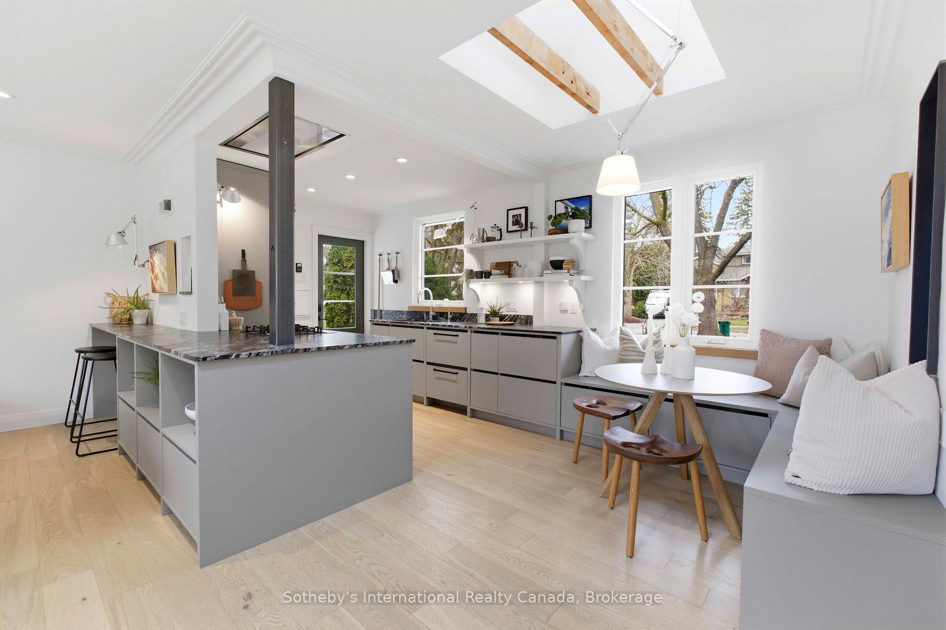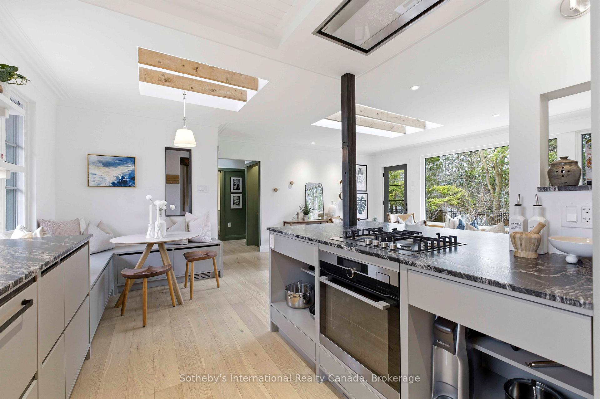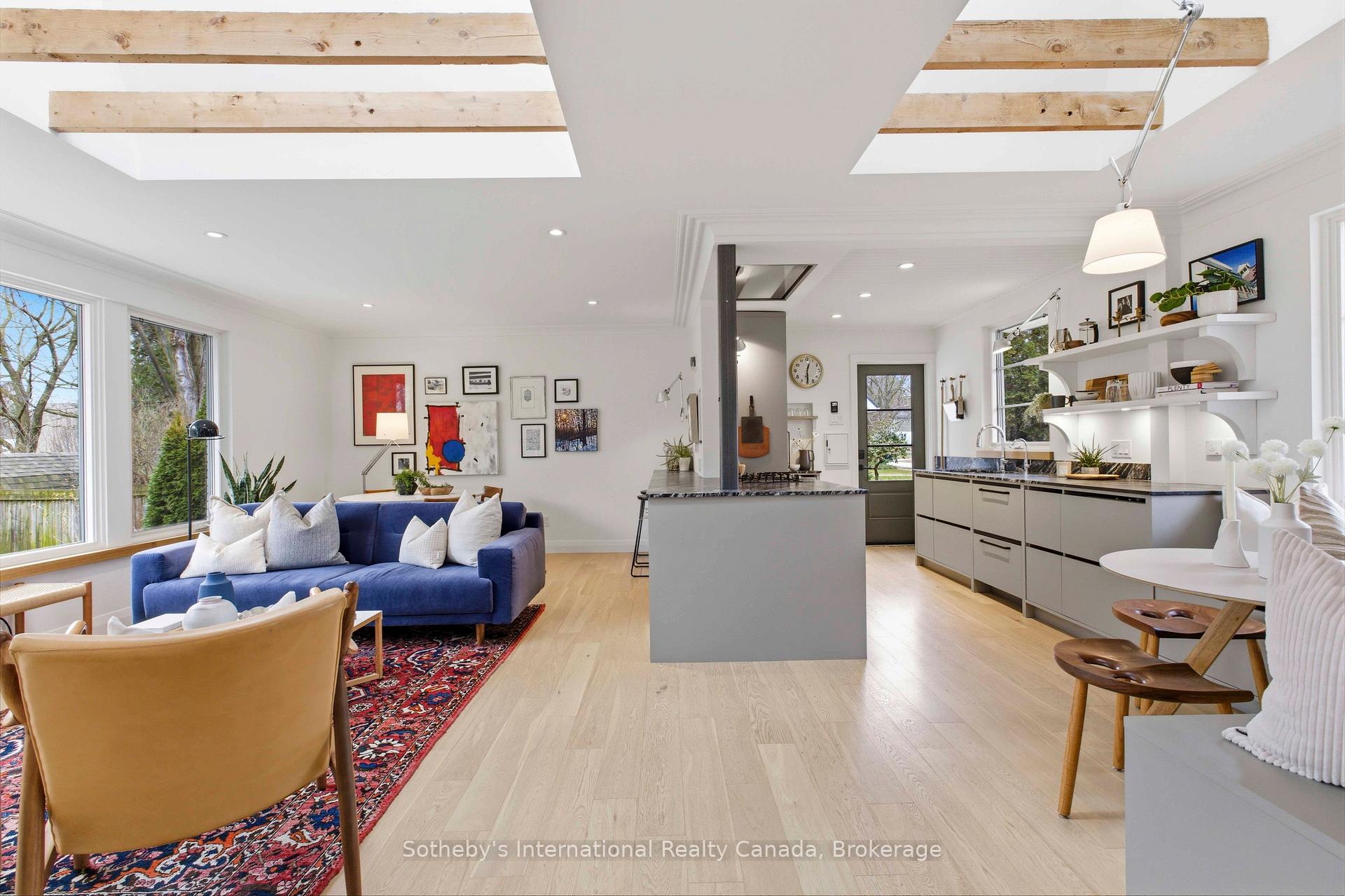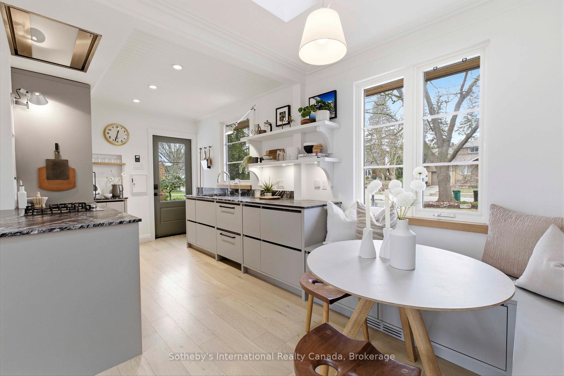 Nestled in the heart of Old Westmount, this beautifully updated bungalow offers a rare opportunity to own in one of the city’s most established and sought-after neighbourhoods-renowned for its mature tree-lined streets, generous lot, and timeless character. Thoughtfully redesigned by an architectural designer (2019-2020), 189 Forsyth Drive blends classic charm with refined, modern finishes. From the moment you arrive, the curb appeal stands out-lush landscaping and a distinctive arched front entry create an inviting first impression. Inside, natural light fills the home through well-placed skylights, enhancing the open-concept living space. Clean lines and curated details are carried throughout, including engineered white oak flooring and Italian Artemide lighting. The custom European kitchen is both functional and beautifully executed, featuring premium appliances and leathered granite countertops, with seamless access to the private backyard through large windows and a patio door. The main floor offers two bedrooms and a well-appointed 3-piece bathroom with integrated laundry. The lower level continues the home’s architectural feel, highlighted by exposed joists and a thoughtfully designed layout. A centrally located 3-piece bathroom-finished with Italian tile-sits between two rooms, each with direct access, offering flexibility for a variety of uses. Additional storage and convenient access to the garage complete the space. The backyard is a private retreat, surrounded by mature trees and professionally landscaped-ideal for relaxing or entertaining, featuring a built-in sunken trampoline-an unexpected, resort-style touch that adds both fun and functionality to the outdoor space. Located steps from the Westmount Golf & Country Club,Belmont Village, and Uptown Waterloo, this home offers a premium lifestyle in a truly coveted location. An ideal fit for single professionals, young couples, or downsizers seeking a refined home with privacy and low-maintenance living.