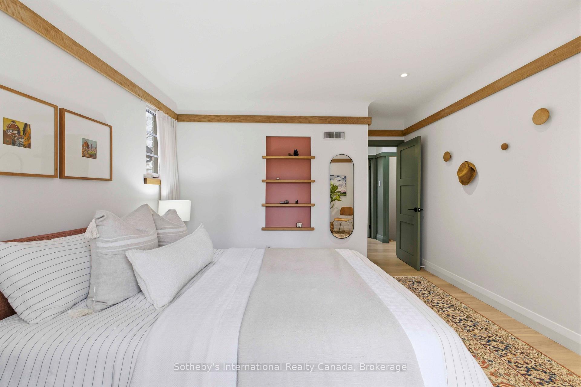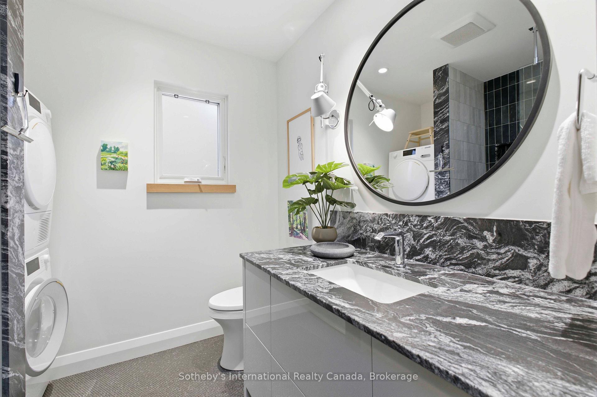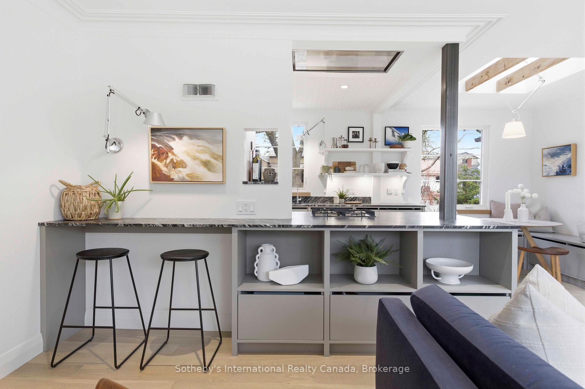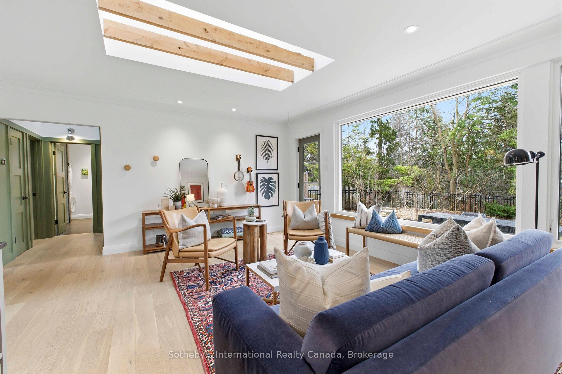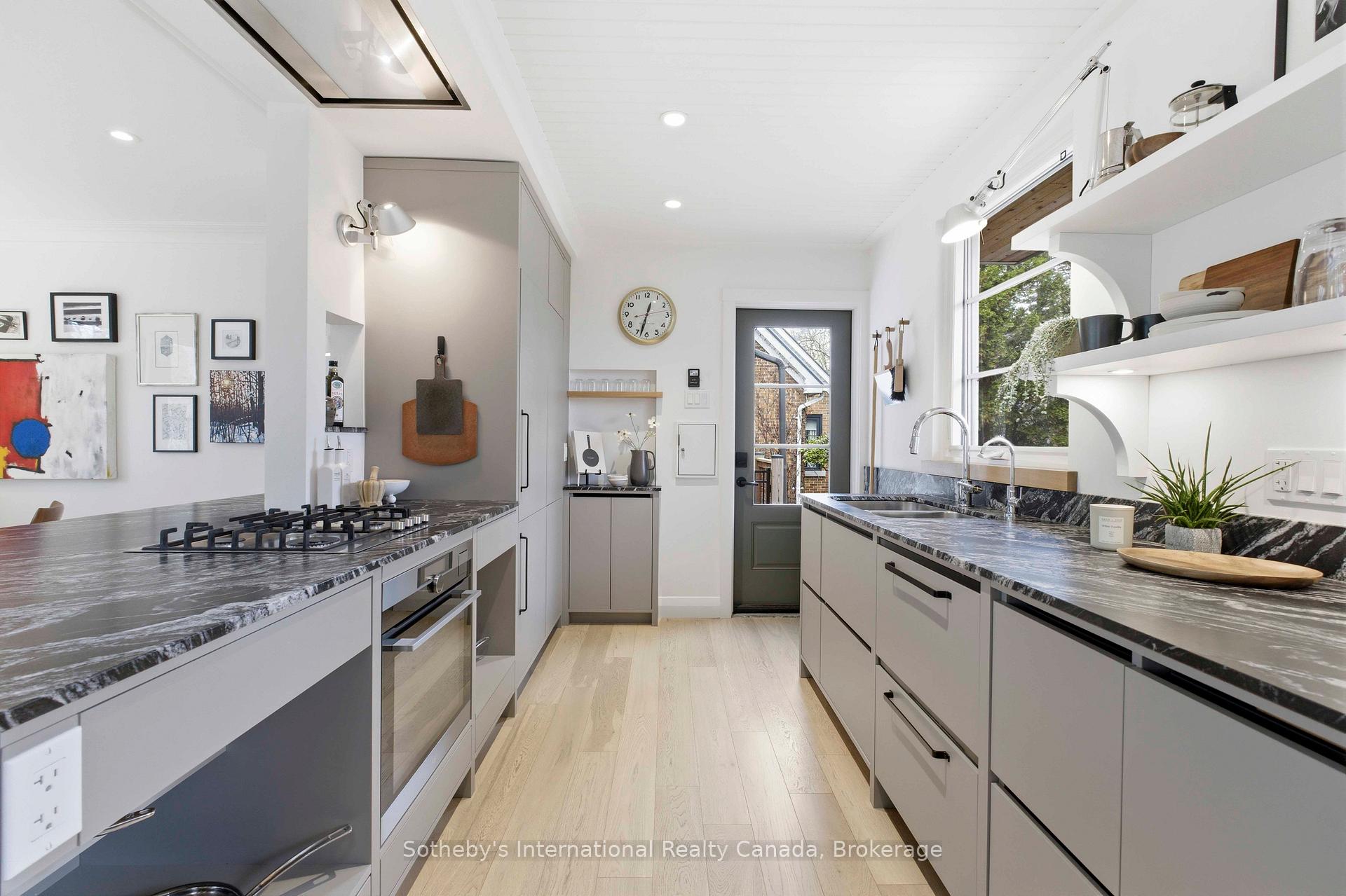 Nestled in the heart of Old Westmount, this beautifully updated bungalow offers a rare opportunity to own in one of the city’s most established and sought-after neighbourhoods-renowned for its mature tree-lined streets, generous lot, and timeless character. Thoughtfully redesigned by an architectural designer (2019-2020), 189 Forsyth Drive blends classic charm with refined, modern finishes. From the moment you arrive, the curb appeal stands out-lush landscaping and a distinctive arched front entry create an inviting first impression. Inside, natural light fills the home through well-placed skylights, enhancing the open-concept living space. Clean lines and curated details are carried throughout, including engineered white oak flooring and Italian Artemide lighting. The custom European kitchen is both functional and beautifully executed, featuring premium appliances and leathered granite countertops, with seamless access to the private backyard through large windows and a patio door. The main floor offers two bedrooms and a well-appointed 3-piece bathroom with integrated laundry. The lower level continues the home’s architectural feel, highlighted by exposed joists and a thoughtfully designed layout. A centrally located 3-piece bathroom-finished with Italian tile-sits between two rooms, each with direct access, offering flexibility for a variety of uses. Additional storage and convenient access to the garage complete the space. The backyard is a private retreat, surrounded by mature trees and professionally landscaped-ideal for relaxing or entertaining, featuring a built-in sunken trampoline-an unexpected, resort-style touch that adds both fun and functionality to the outdoor space. Located steps from the Westmount Golf & Country Club,Belmont Village, and Uptown Waterloo, this home offers a premium lifestyle in a truly coveted location. An ideal fit for single professionals, young couples, or downsizers seeking a refined home with privacy and low-maintenance living.